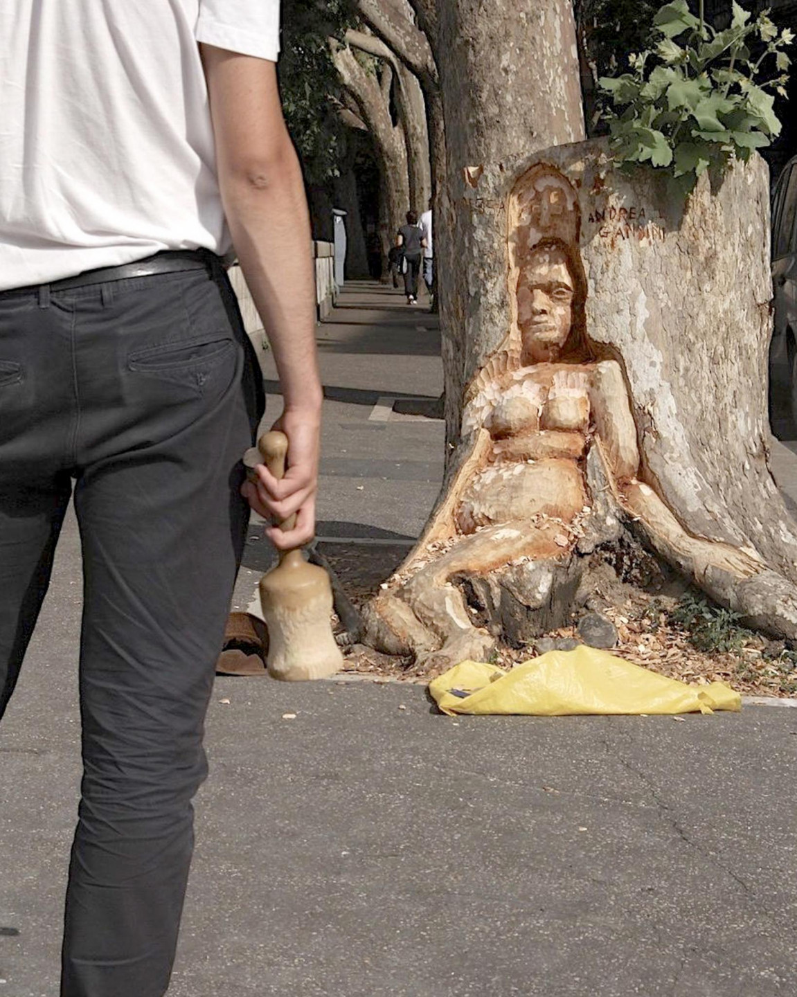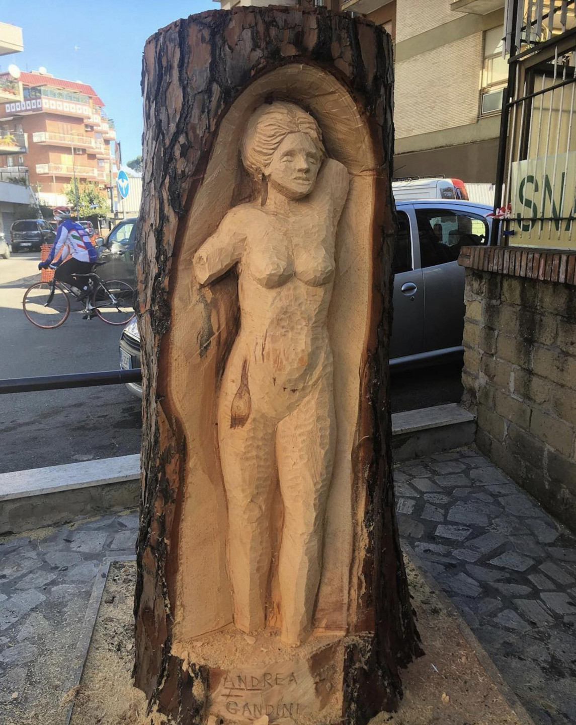 Tēlnieks Adrea Gandini Itālijā, Romas pilsētas ielās veido skaistus kokgriezumus. Mākslinieks Romas ielās uz nokaltušiem kokiem attēlo dažādus tēlus. Ar šo nodarbi tēlnieks sāka aizrauties 2013. gadā, kad atrodot nokaltušu koku pilsētas ielā, izlēma to pārveidot par skulptūru. Kopš tā laika tēlnieks Romā jau ir izveidojis 65 koka skulptūras. Neskatoties uz viņa projektu "Troncomorto", kas ir iemantojis daudzu cilvēku atzinību un laba vārdus, reizēm mākslinieciskās nodarbes viņam sagādā problēmas ar policiju.