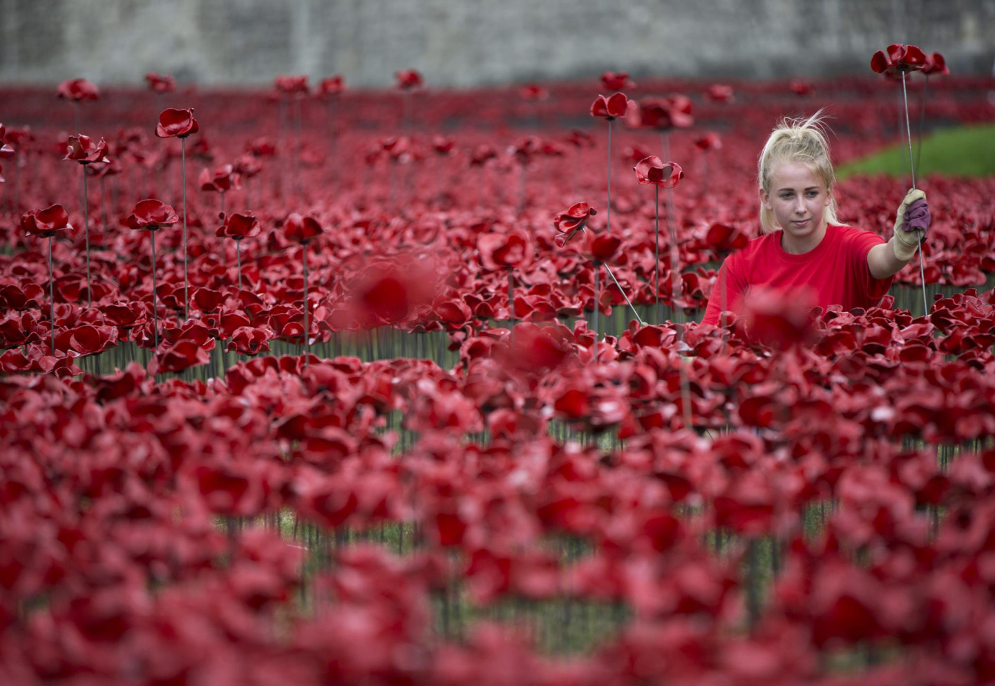 28.jūlijā pie Londonas Tauera mākslinieks Pauls Kummins, pieminot Pirmo pasaules karu un tā upurus, radījis milzu mākslas instalāciju ar nosaukumu "Blood Swept Lands and Seas of Red" jeb "Asins slacīta zeme un sarkanas jūras". Kopumā mākslinieks ar brivprātīgo palīdzību pie Tauera uzstādījis vairāk kā 888 tūkstošus keramisko magoņu.