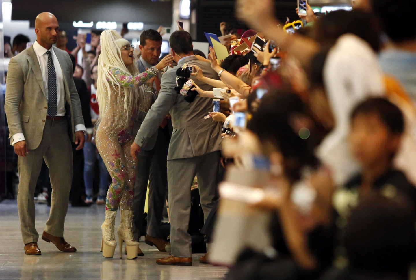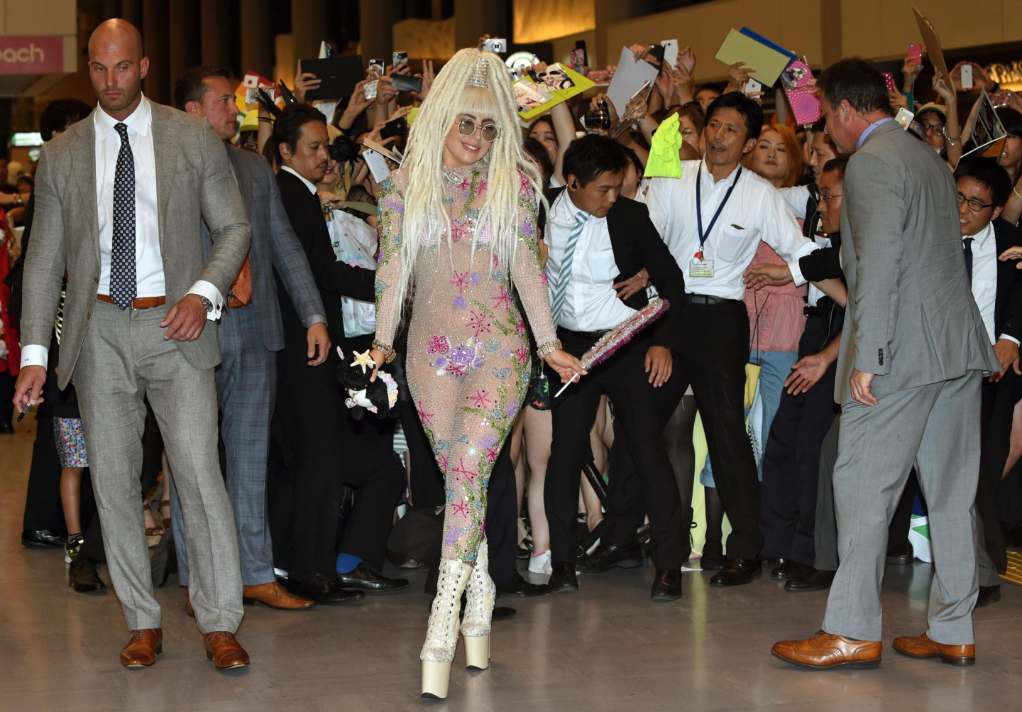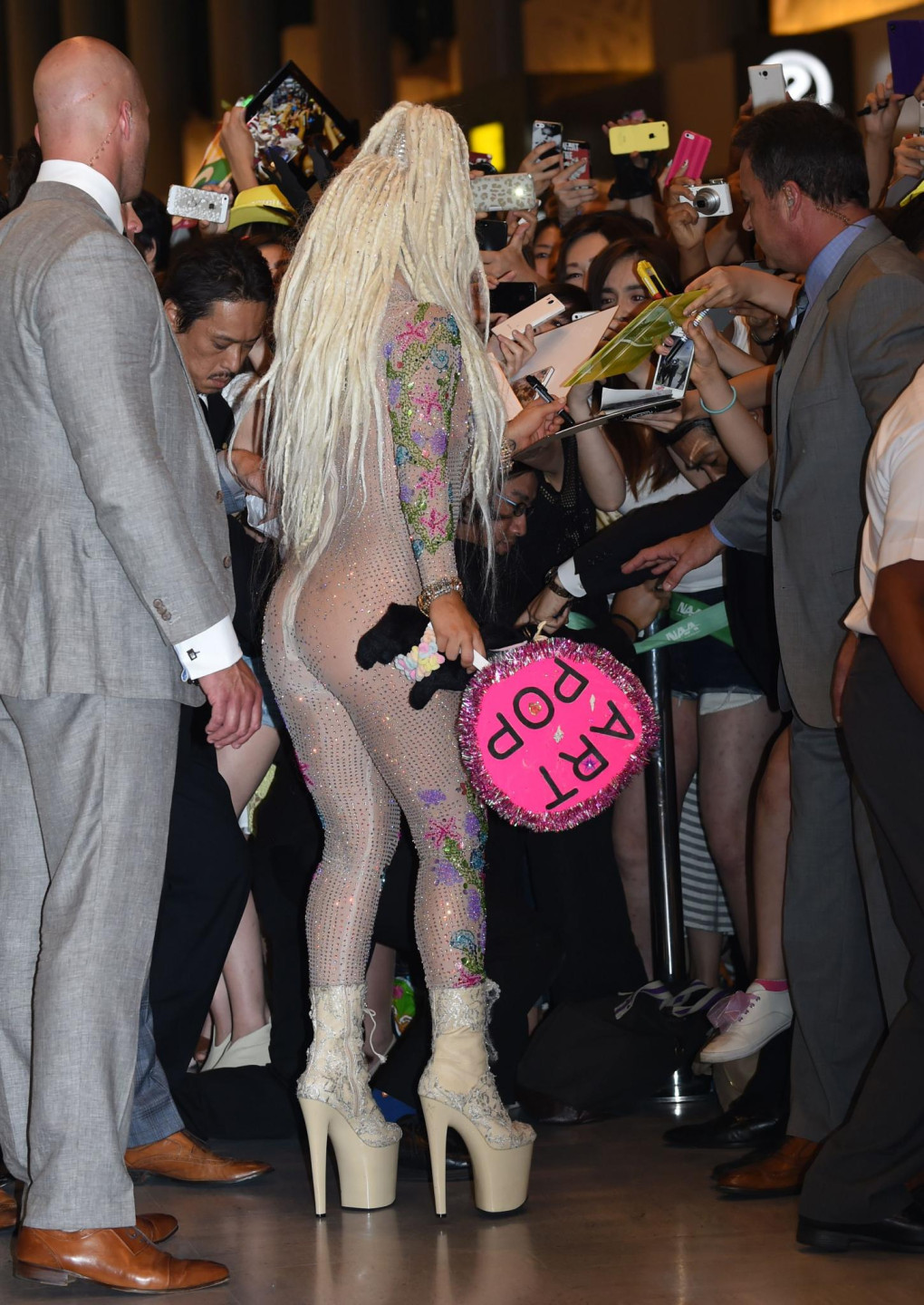 Otrdien, 12.augustā, satriecošā un ekscentriskā Lēdija Gāga ieradās Tokijā, kur viņu Naritas internacionālajā lidostā sagaidīja desmitiem spiedzošu fanu. Protams, dziedātāja kā parasti pārsteidza ar īpaši ekstravagantu tērpu, kas neatstāj daudz vietas iztēlei.