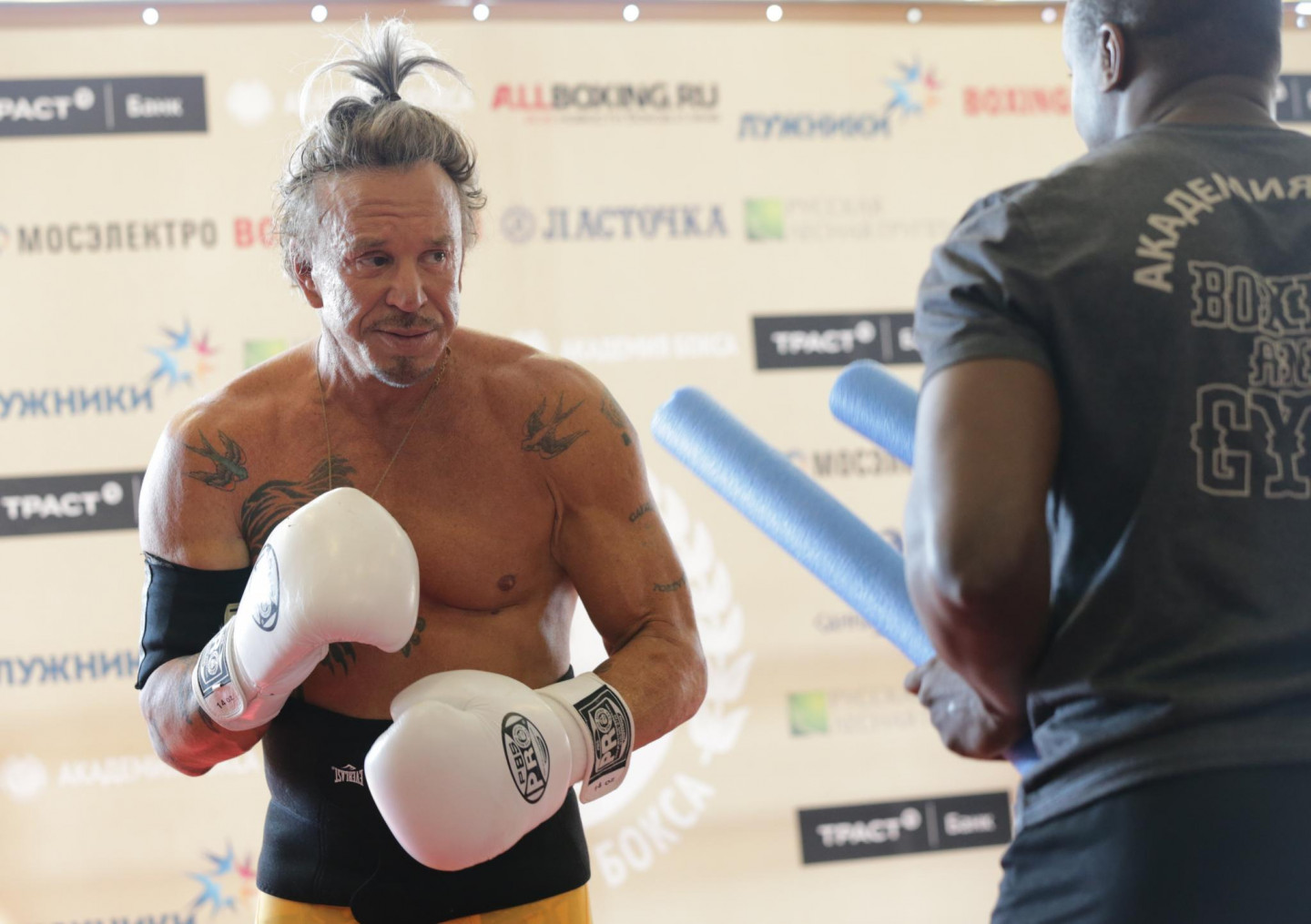 Leģendārais 61 gadu vecais amerikāņu izcelsmes aktieris, bokseris un kinoscenāriju autors Mikijs Rurks apciemojis Maskavu, turklāt nav atbraucis tikai atpūsties. Rurks arī demonstrējis savas spējas atklātā boksa treniņā "Boksa akadēmijā".