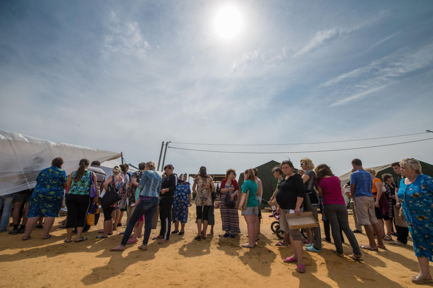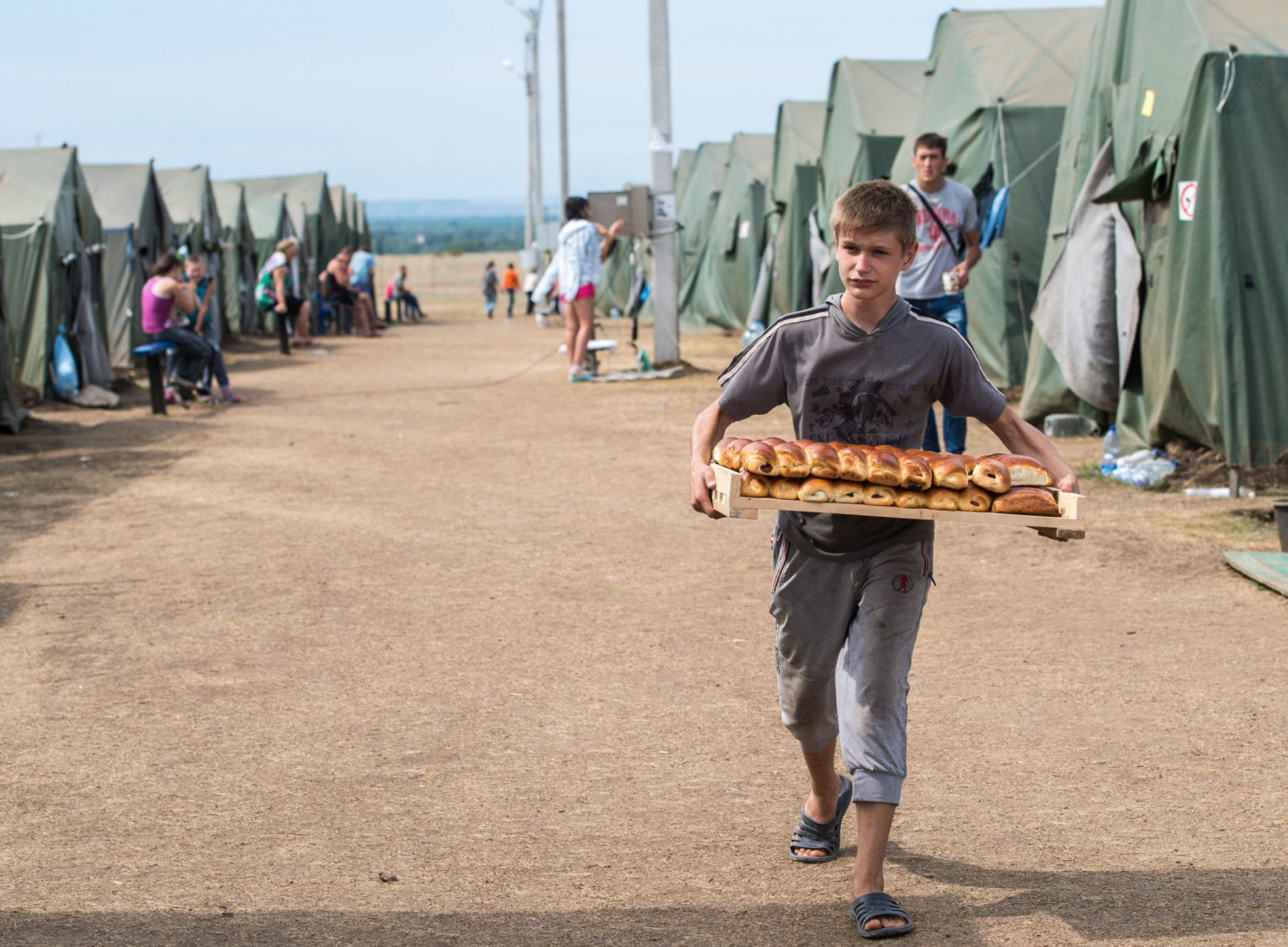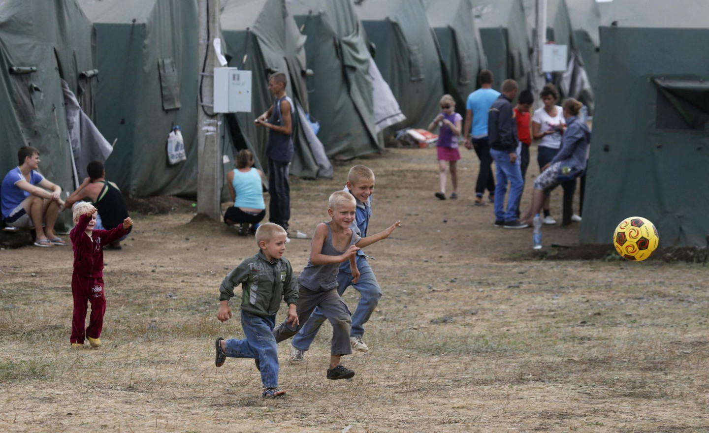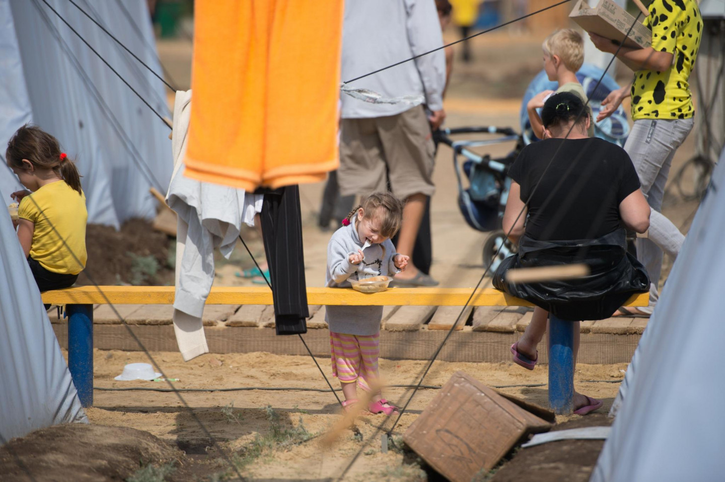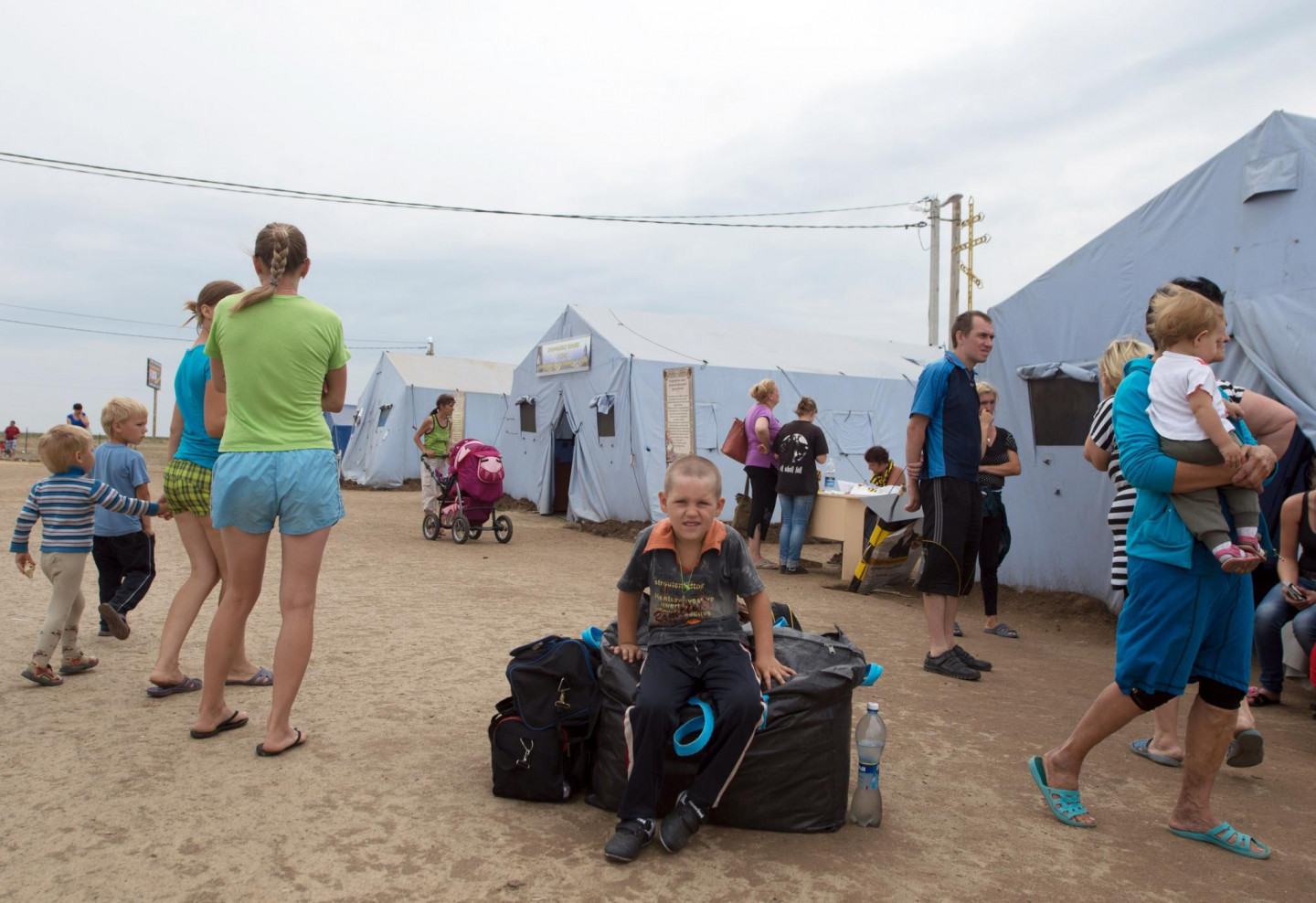 No Doņeckas un citām Ukrainas pilsētām aizbēgušie ukraiņi mitinās bēgļu nometnēs, kuras atrodas Krievijā, Rostovas reģionā 15 km no Ukrainas - Krievijas robežas.