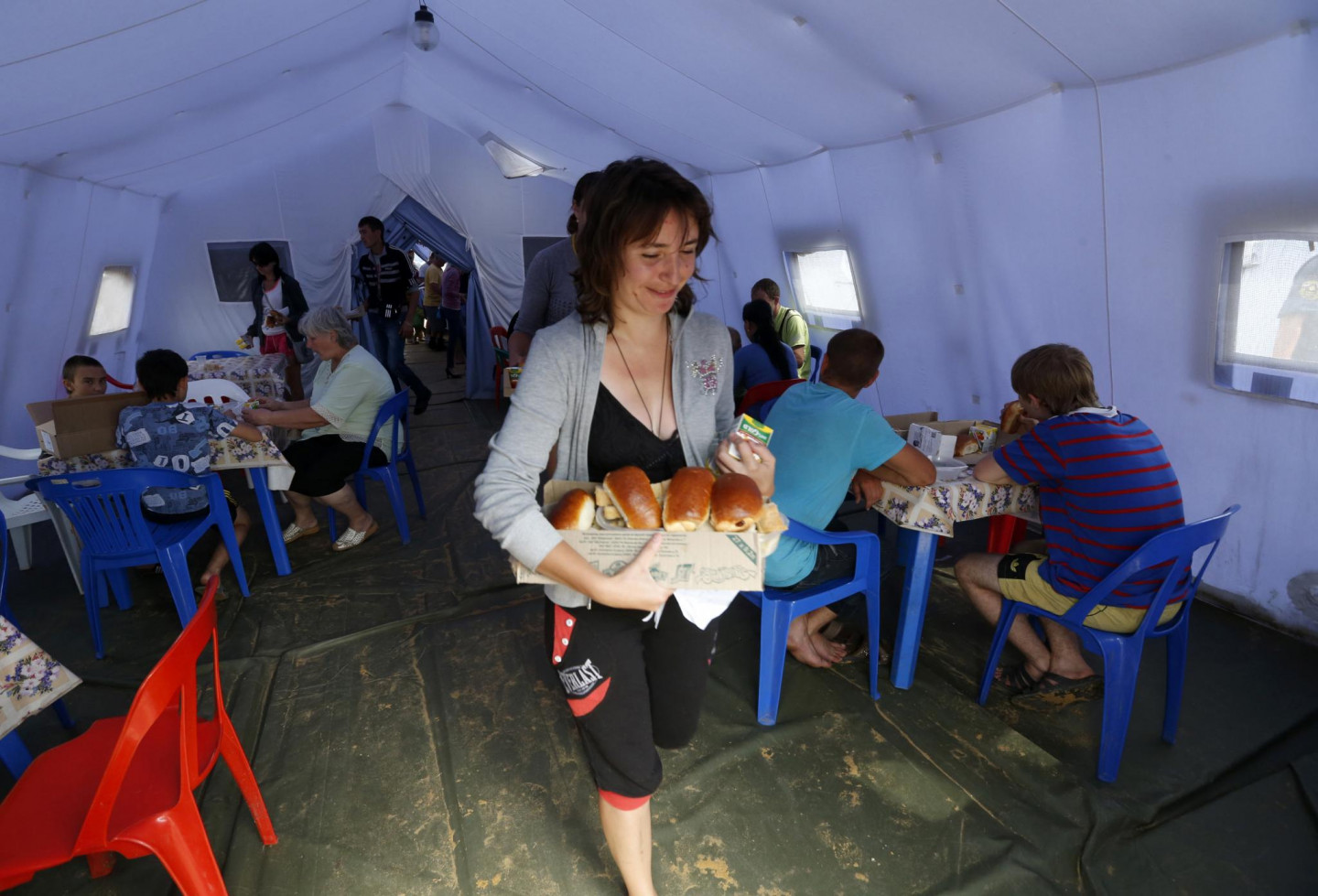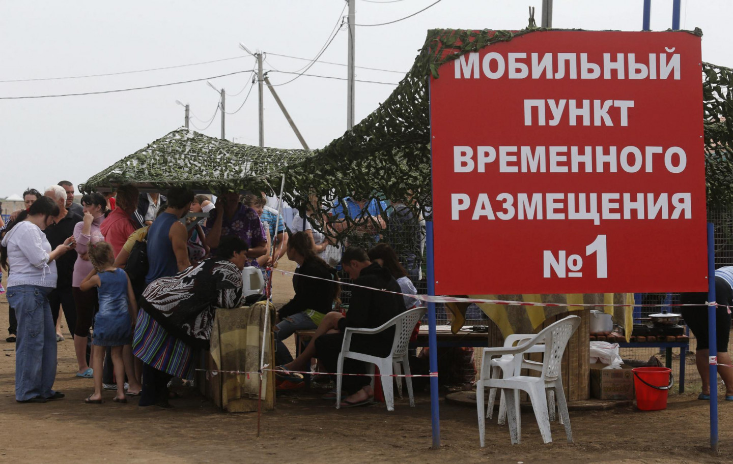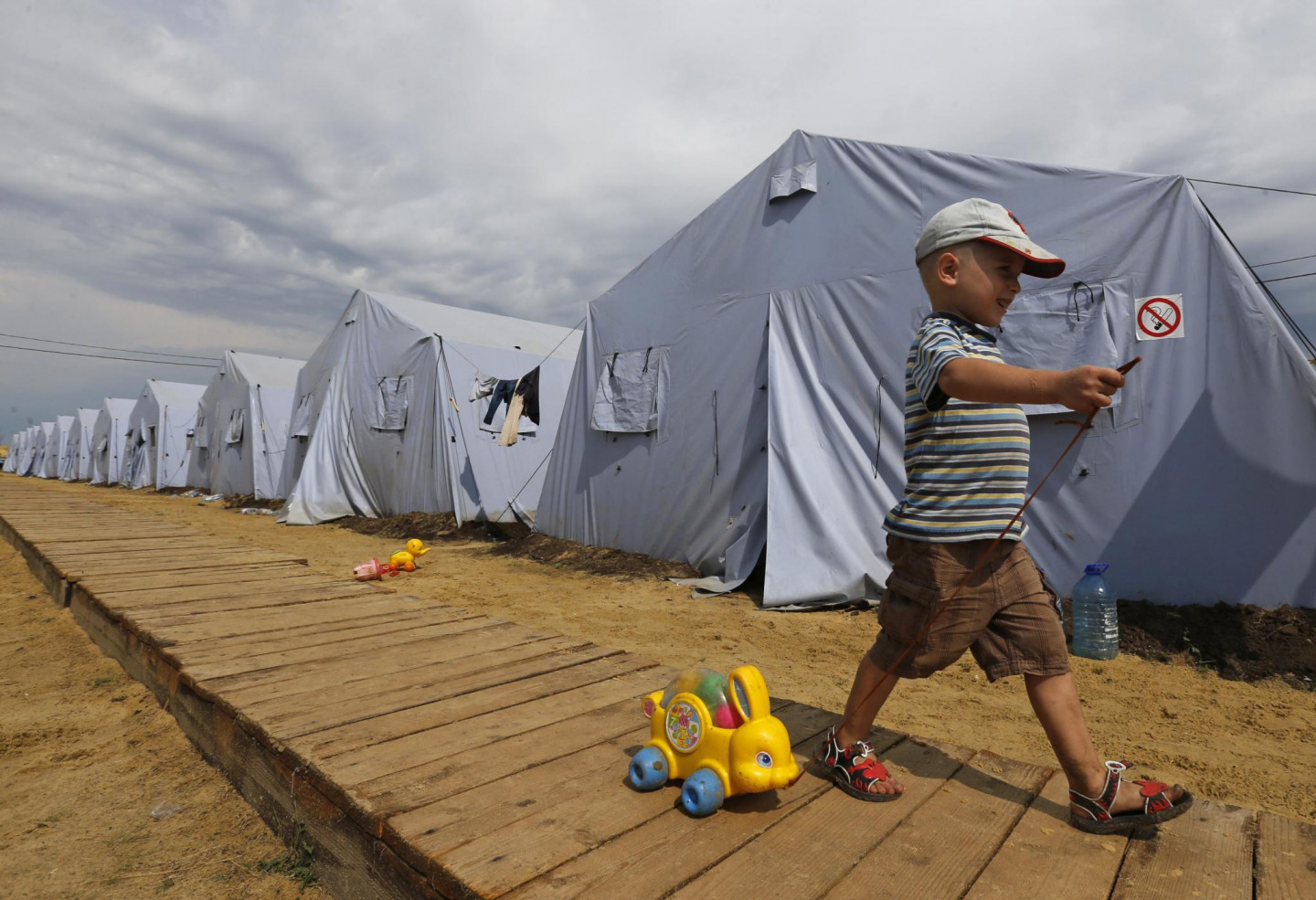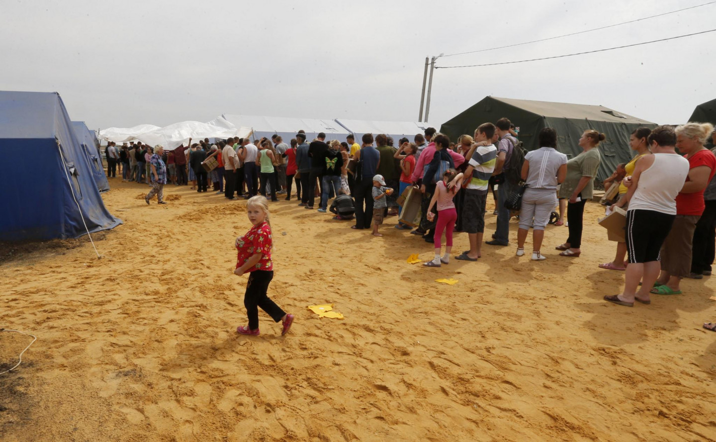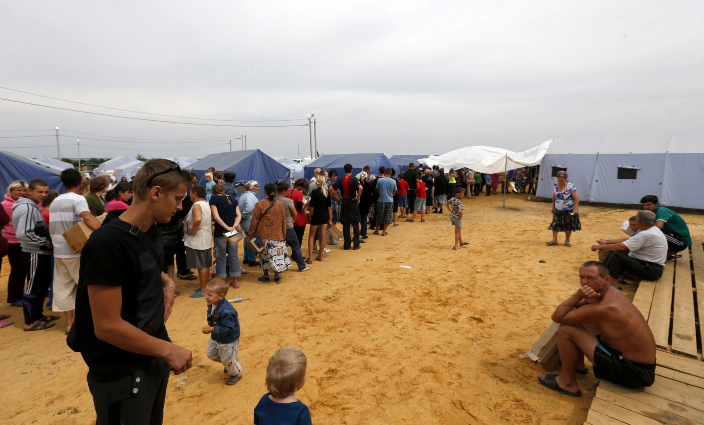 No Doņeckas un citām Ukrainas pilsētām aizbēgušie ukraiņi mitinās bēgļu nometnēs, kuras atrodas Krievijā, Rostovas reģionā 15 km no Ukrainas - Krievijas robežas.
