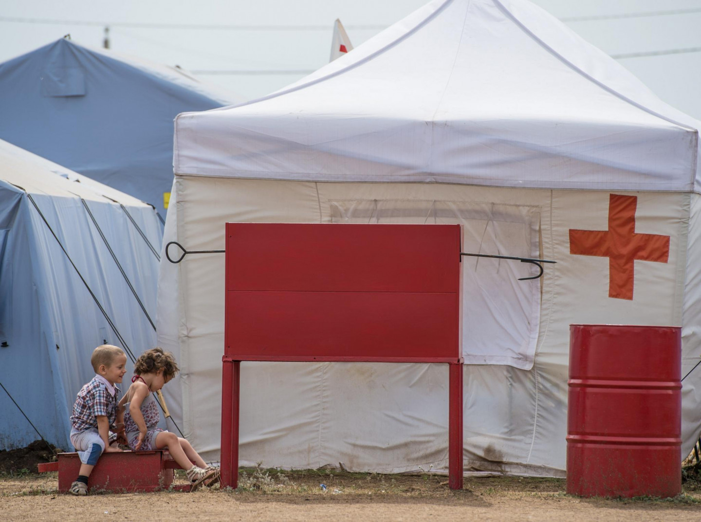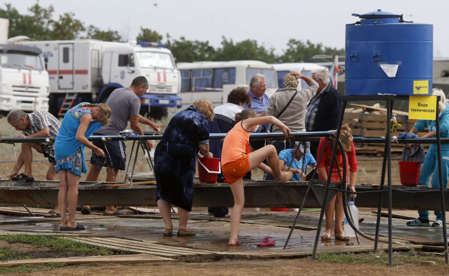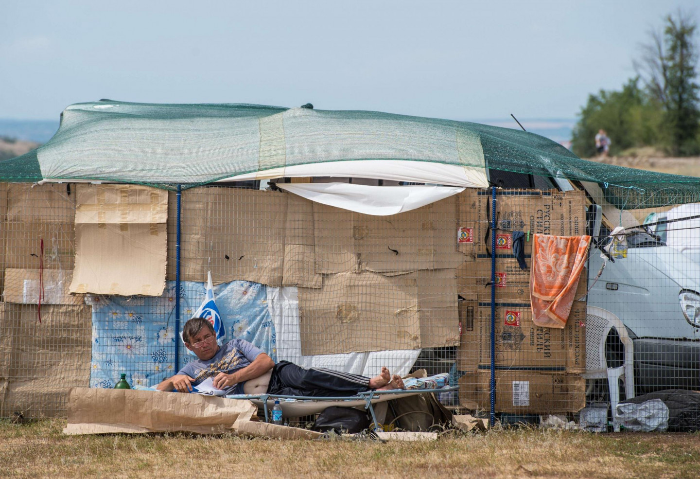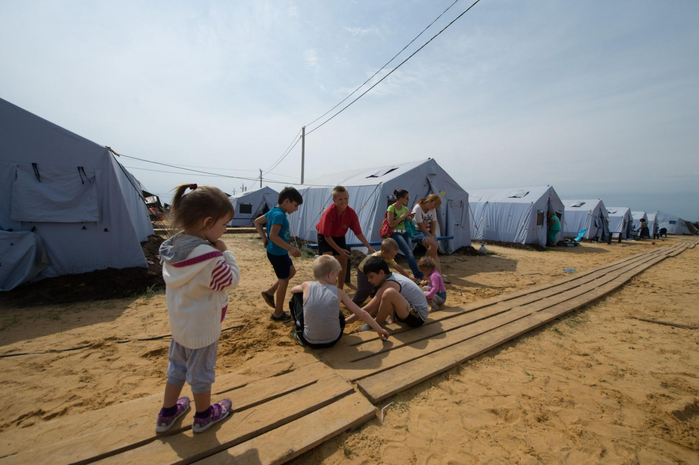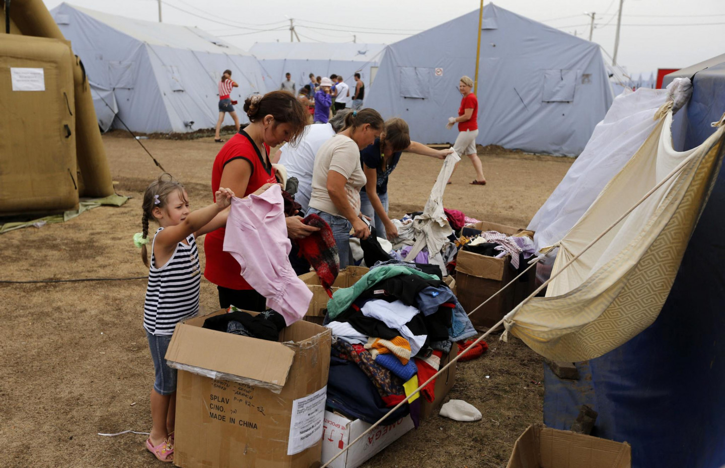 No Doņeckas un citām Ukrainas pilsētām aizbēgušie ukraiņi mitinās bēgļu nometnēs, kuras atrodas Krievijā, Rostovas reģionā 15 km no Ukrainas - Krievijas robežas.