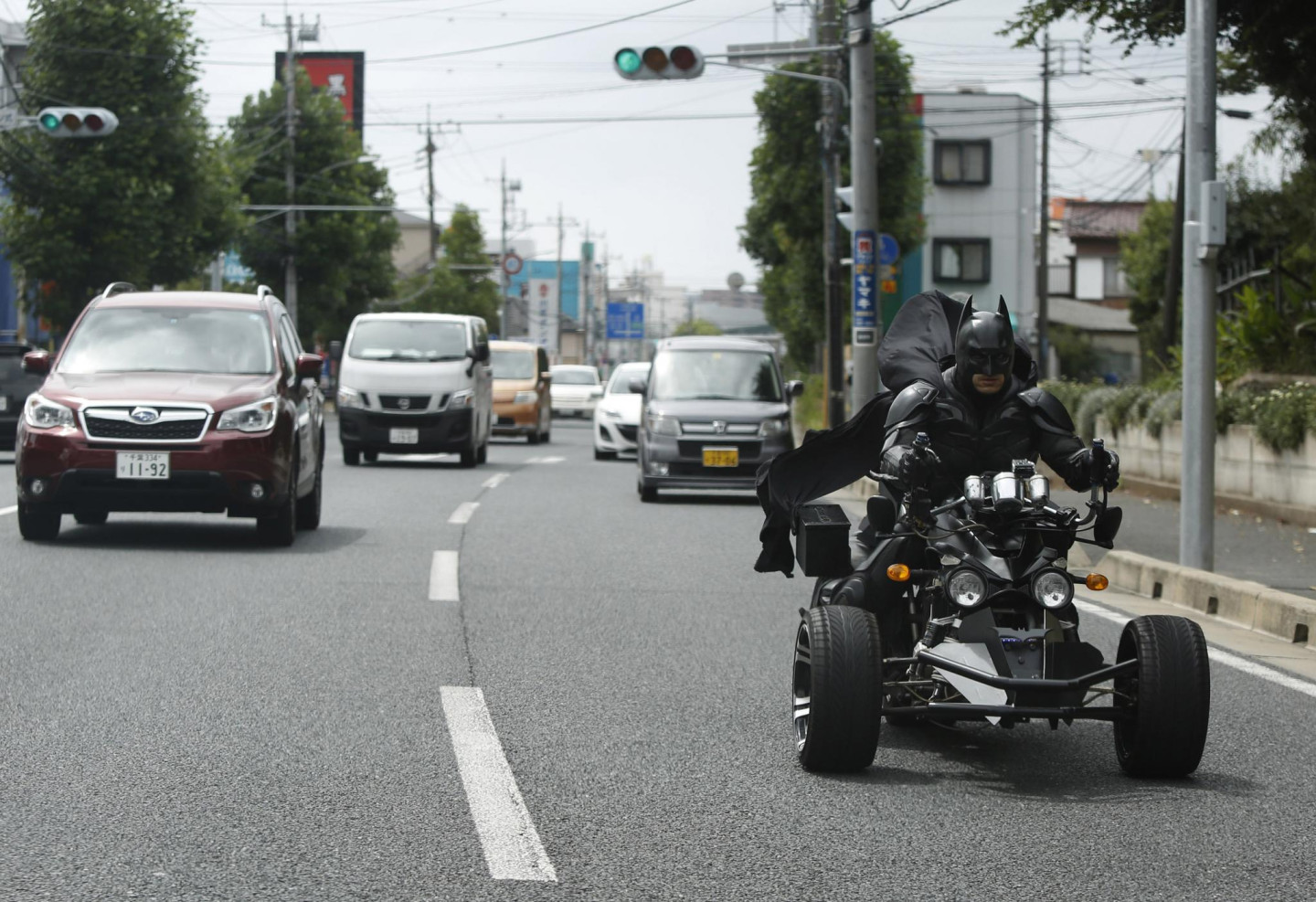 Kāds 41 gadus vecs vīrietis no Čibas mazpilsētas traucas pa pilsētas ielām ar savu trīsriteņu motociklu un iepriecina iedzīvotājus, tērpies populārā komiksu varoņa Betmena tērpā.