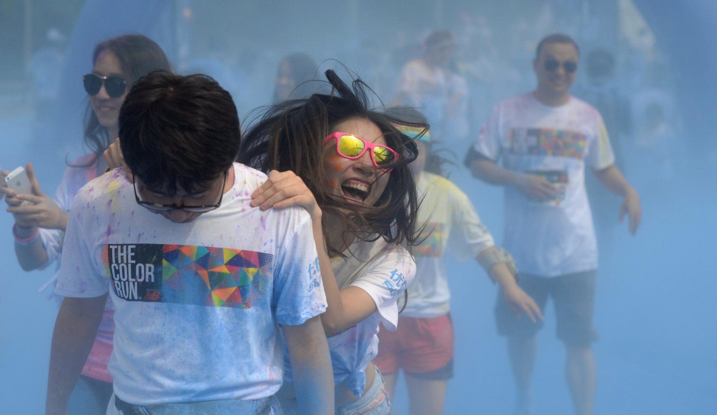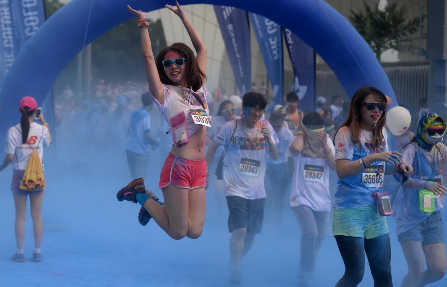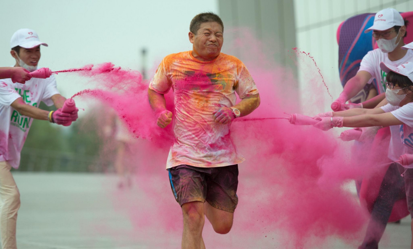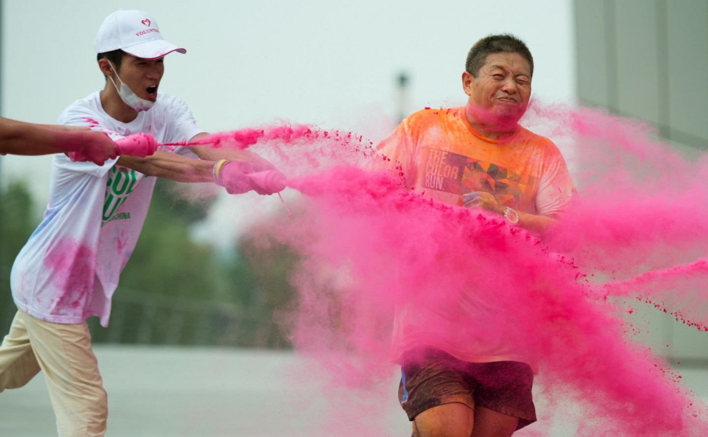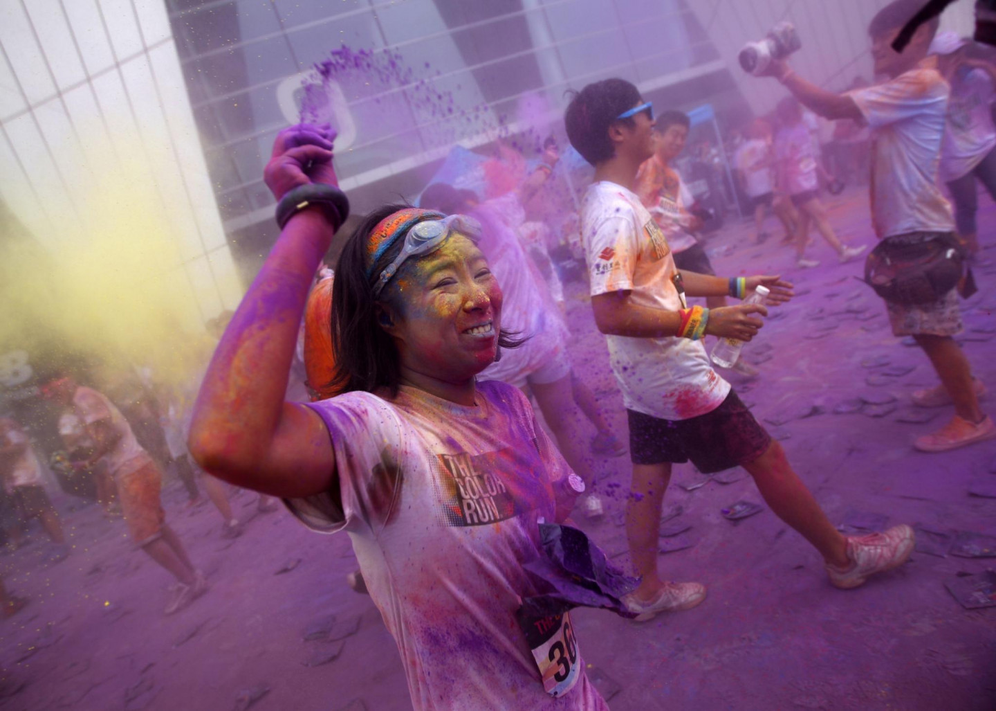 Šanhajā notiek, nu jau daudzviet pasaulē populārais "Krāsu skrējiens", kura 5 kilometru garajā distancē ik pēc kilometra tā dalībnieki tiek apbērti ar krāsainu pūderi.