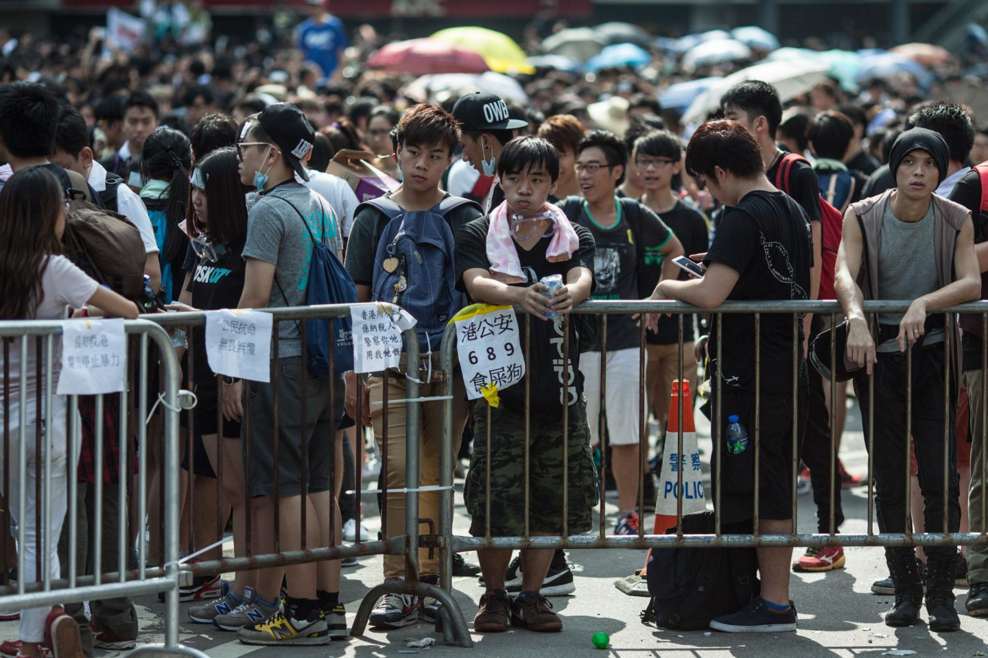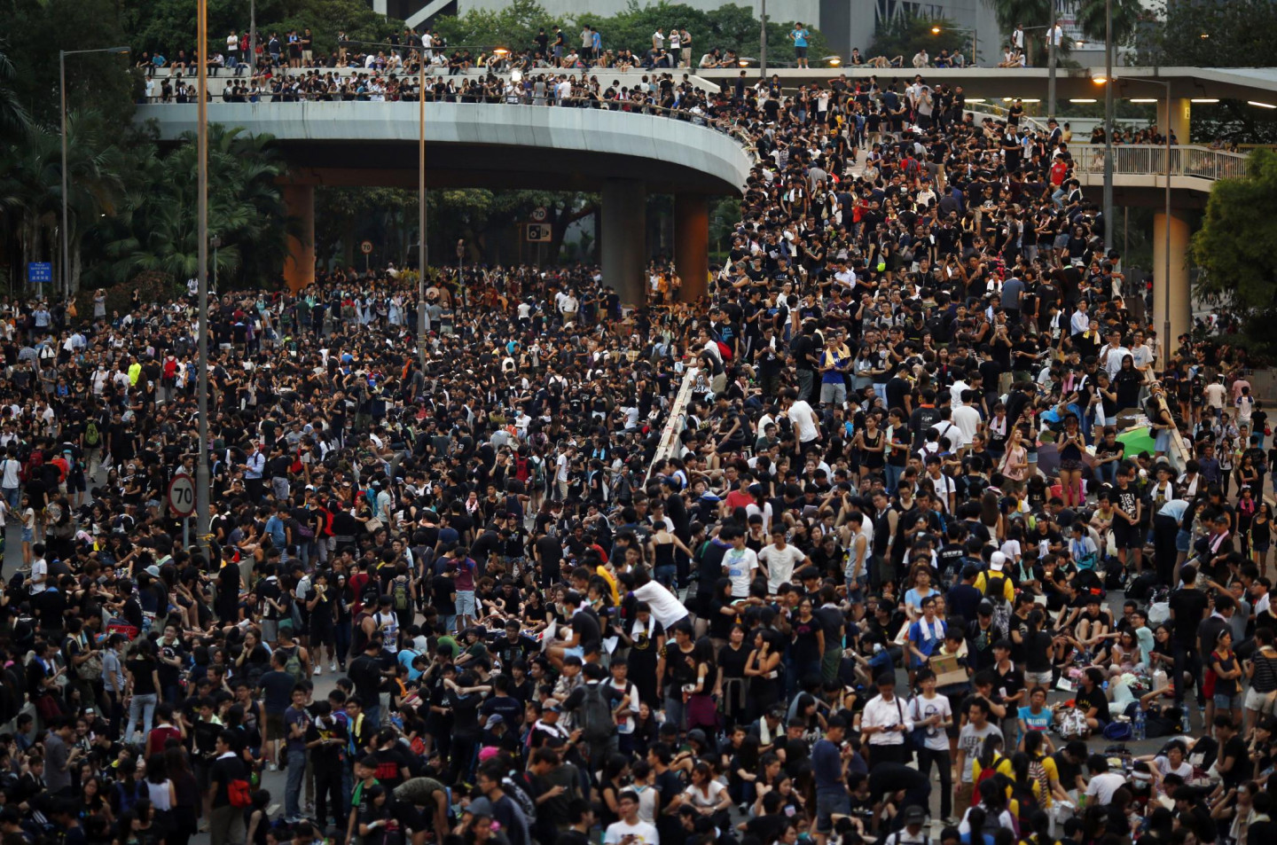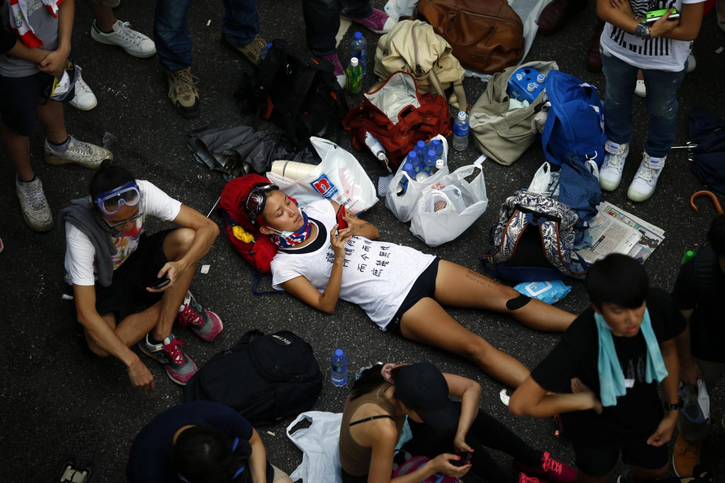 Honkongā turpinās demokrātisko aktīvistu protesti, kas paralizējuši pilsētas biznesa centru un nopietni apgrūtinājuši satiksmi. Policija aizvadītajā naktī pielietoja pret protestētājiem asaru un piparu gāzi un stekus, bet likumsargiem neizdevās pūli izklīdināt. Tūkstošiem studentu pievienojoties demokrātisko aktīvistu kustībai "Okupē centru", svētdien protestētāju skaits sasniedza 100 000.
