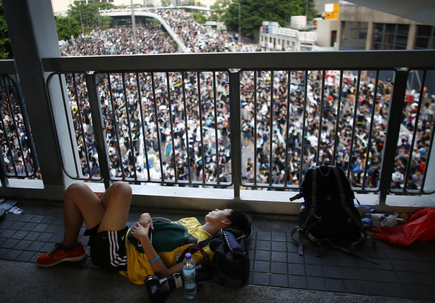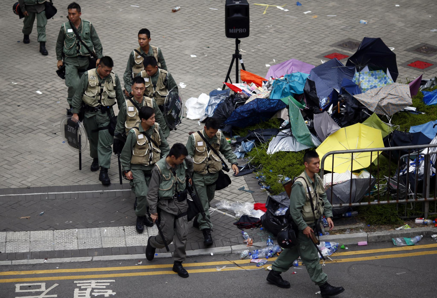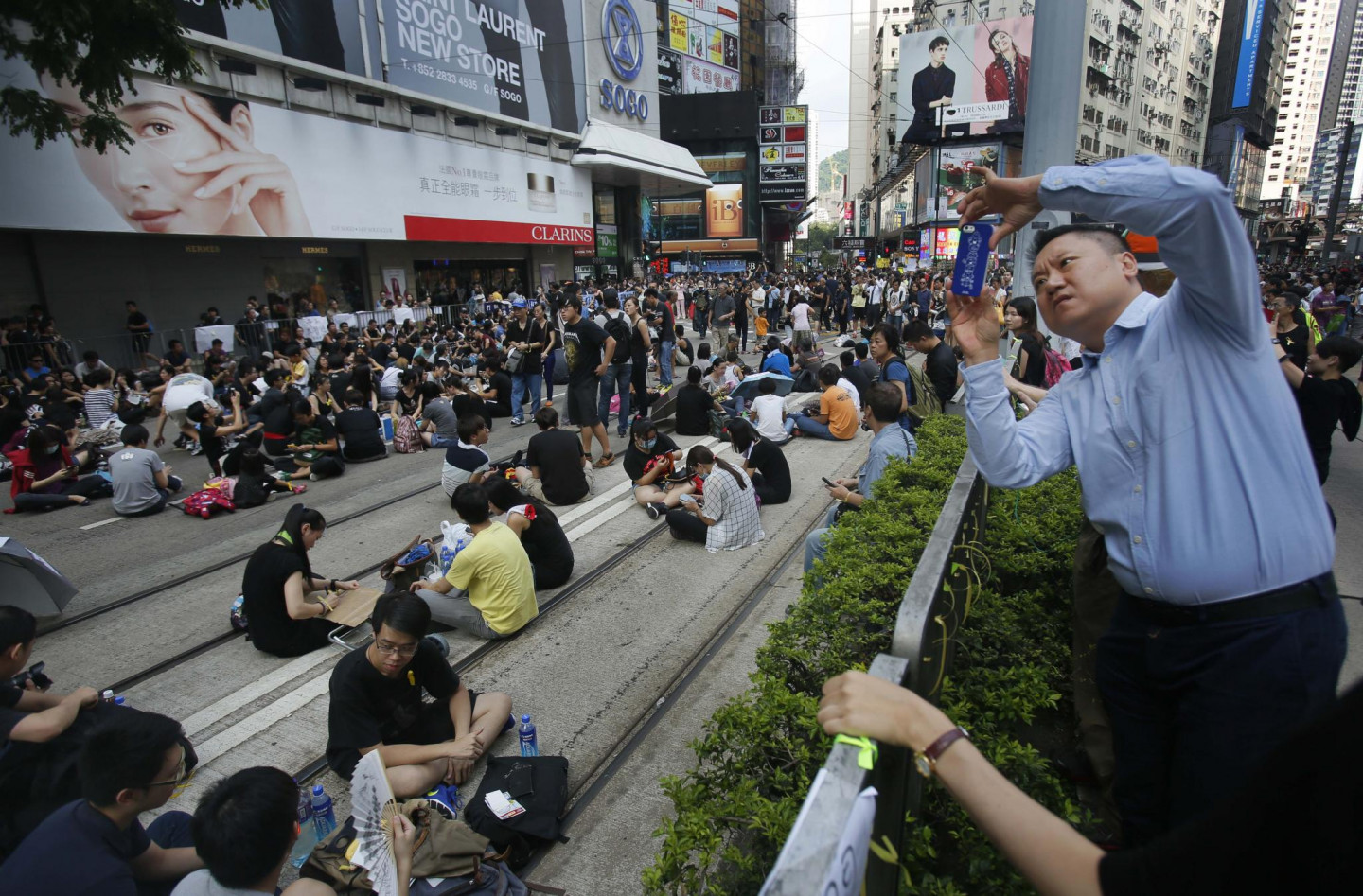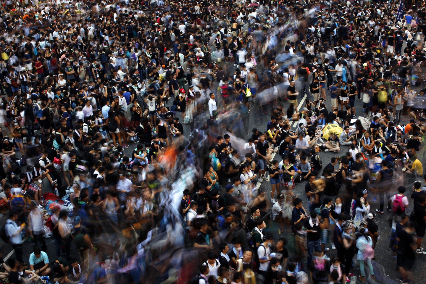 Honkongā turpinās demokrātisko aktīvistu protesti, kas paralizējuši pilsētas biznesa centru un nopietni apgrūtinājuši satiksmi. Policija aizvadītajā naktī pielietoja pret protestētājiem asaru un piparu gāzi un stekus, bet likumsargiem neizdevās pūli izklīdināt. Tūkstošiem studentu pievienojoties demokrātisko aktīvistu kustībai "Okupē centru", svētdien protestētāju skaits sasniedza 100 000.