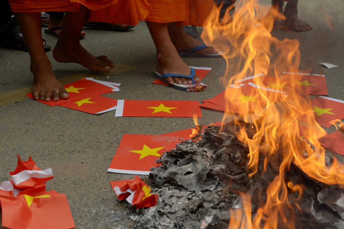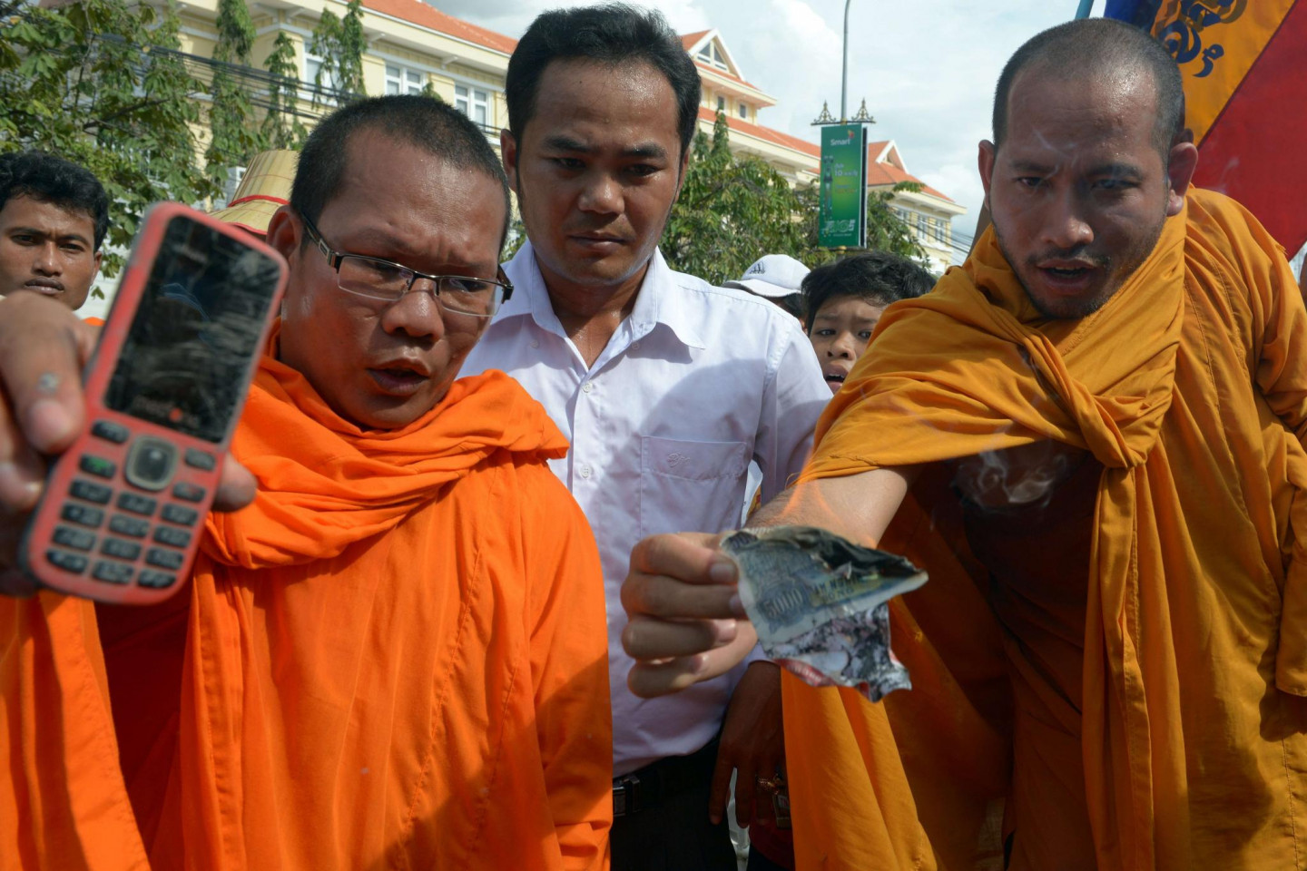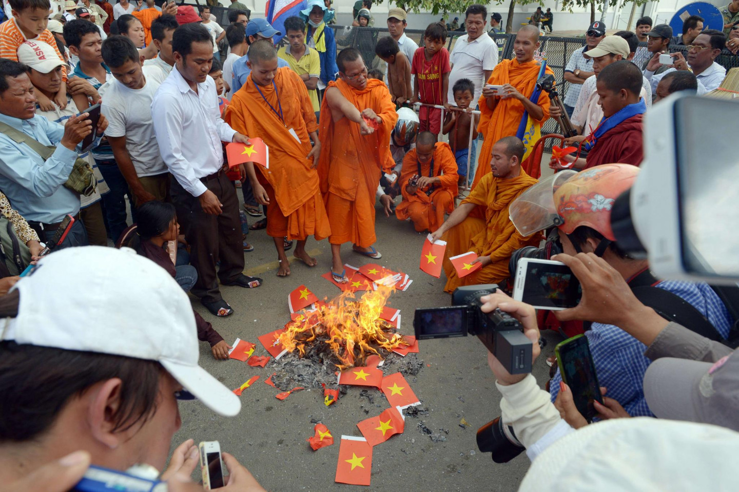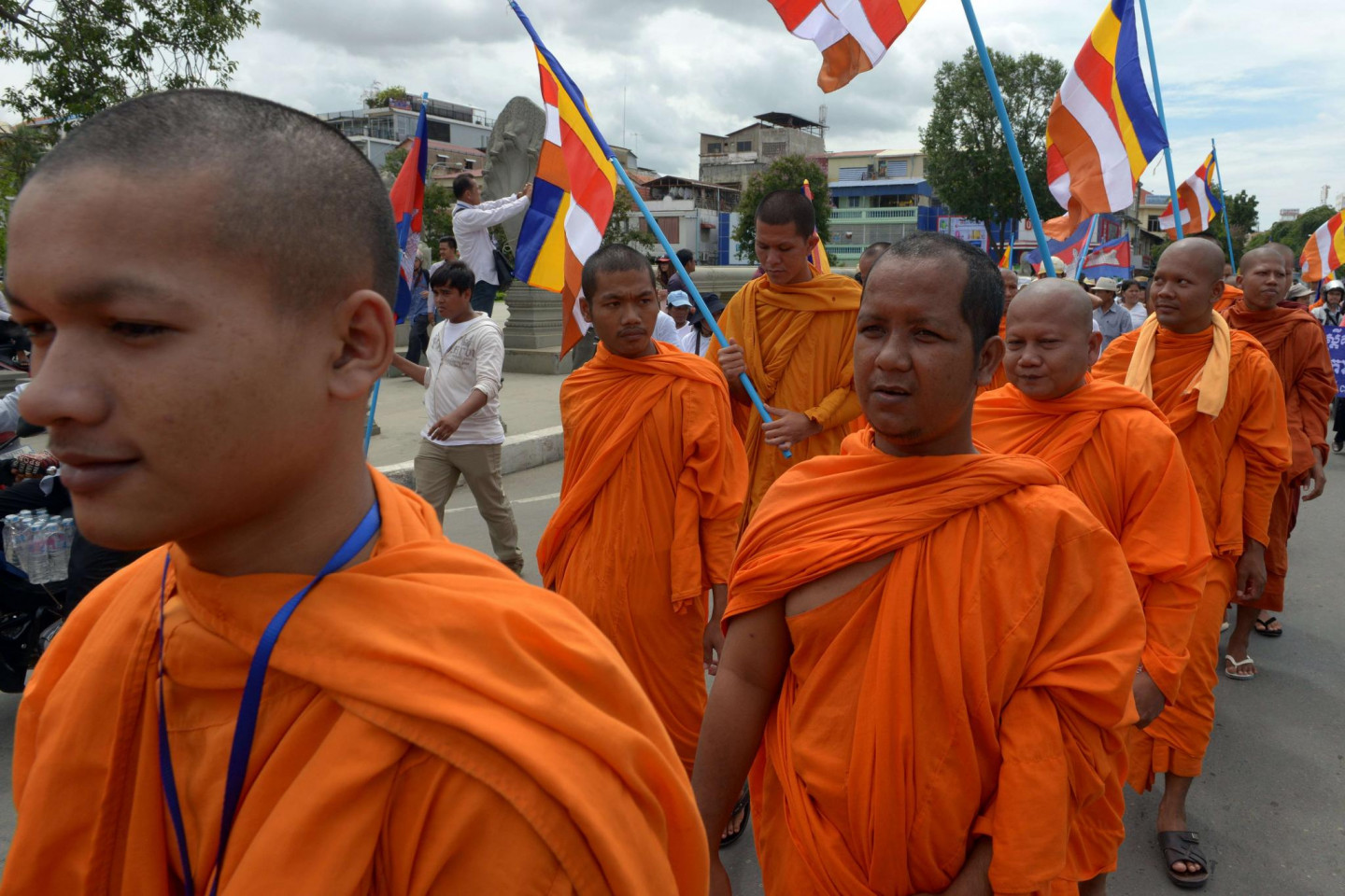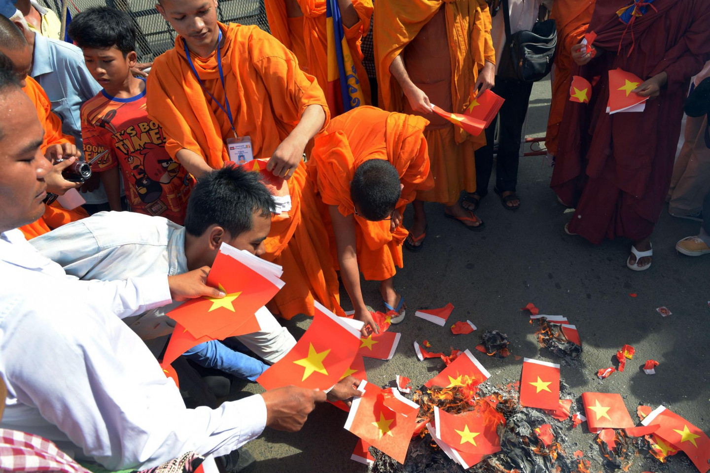 Kambodžas mūki protestē pret "Kampuchea Krom" apgabala pievienošanu Vjetnamai.