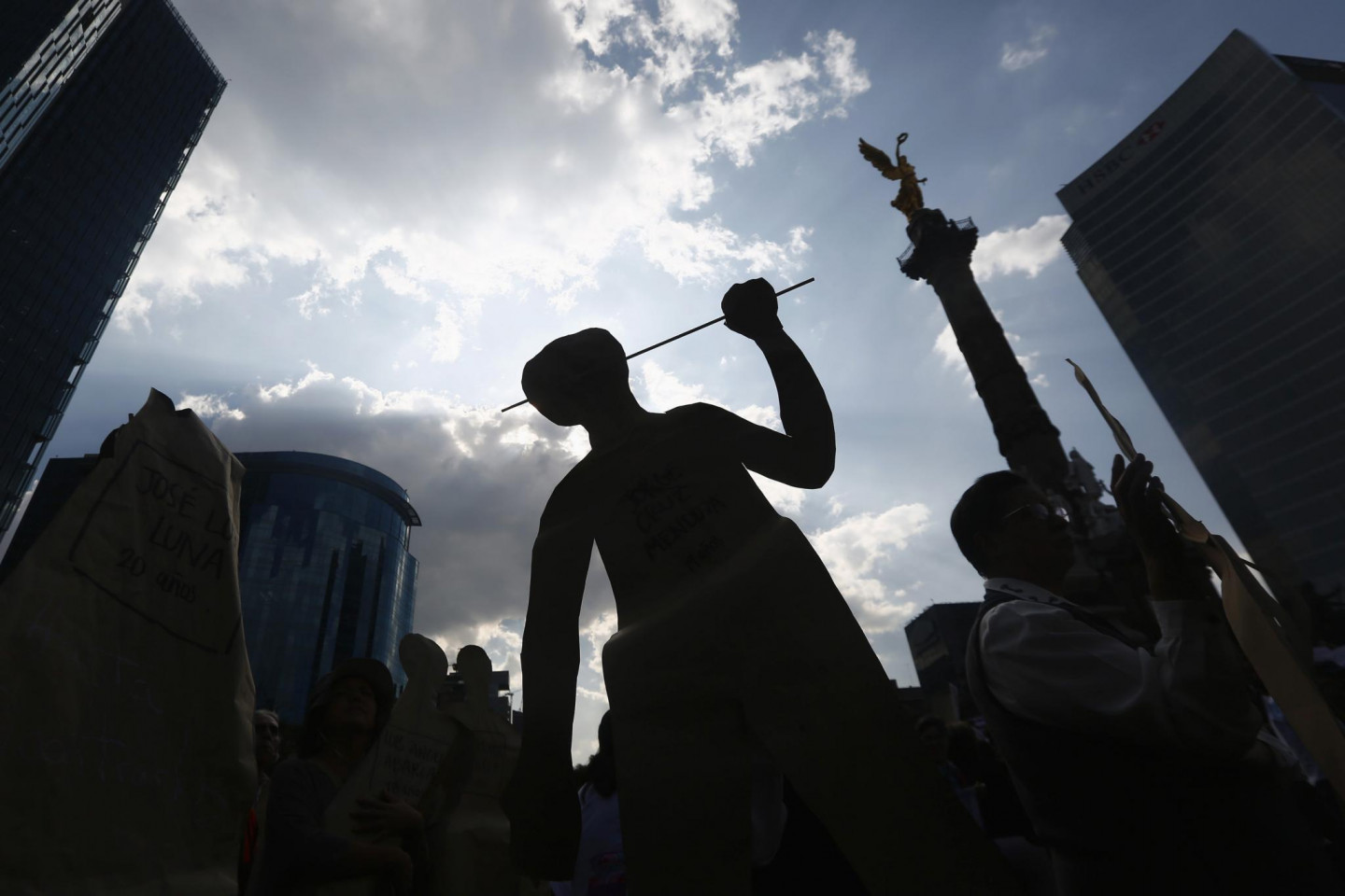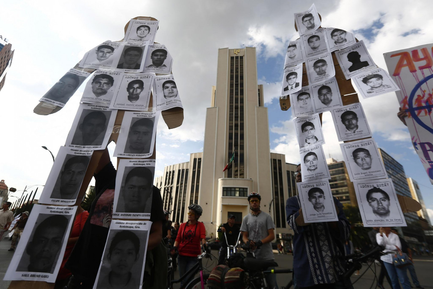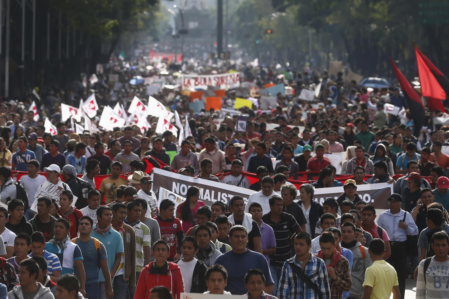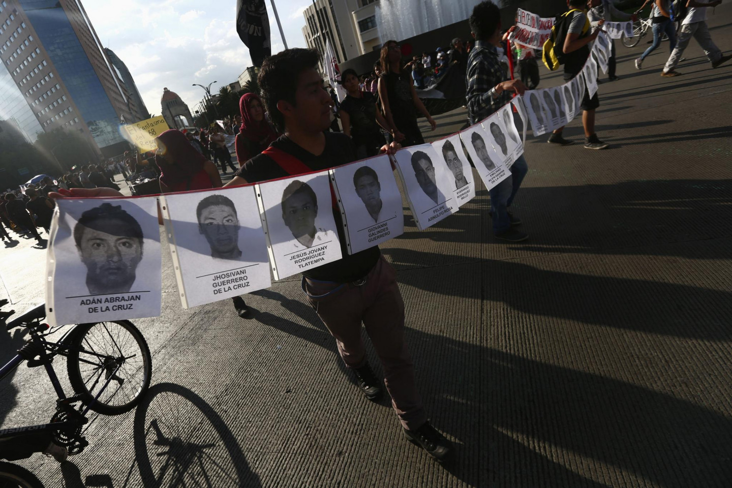 Meksikā tūkstošiem cilvēku izgājuši ielās, lai pieminētu 57 bezvēsts pazudušos studentus, kurus joprojām nav izdevies atrast.