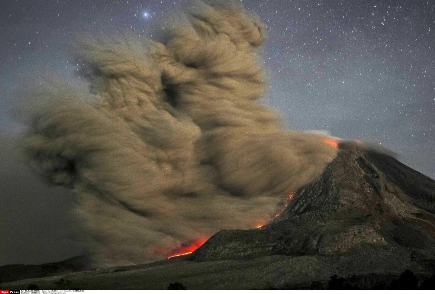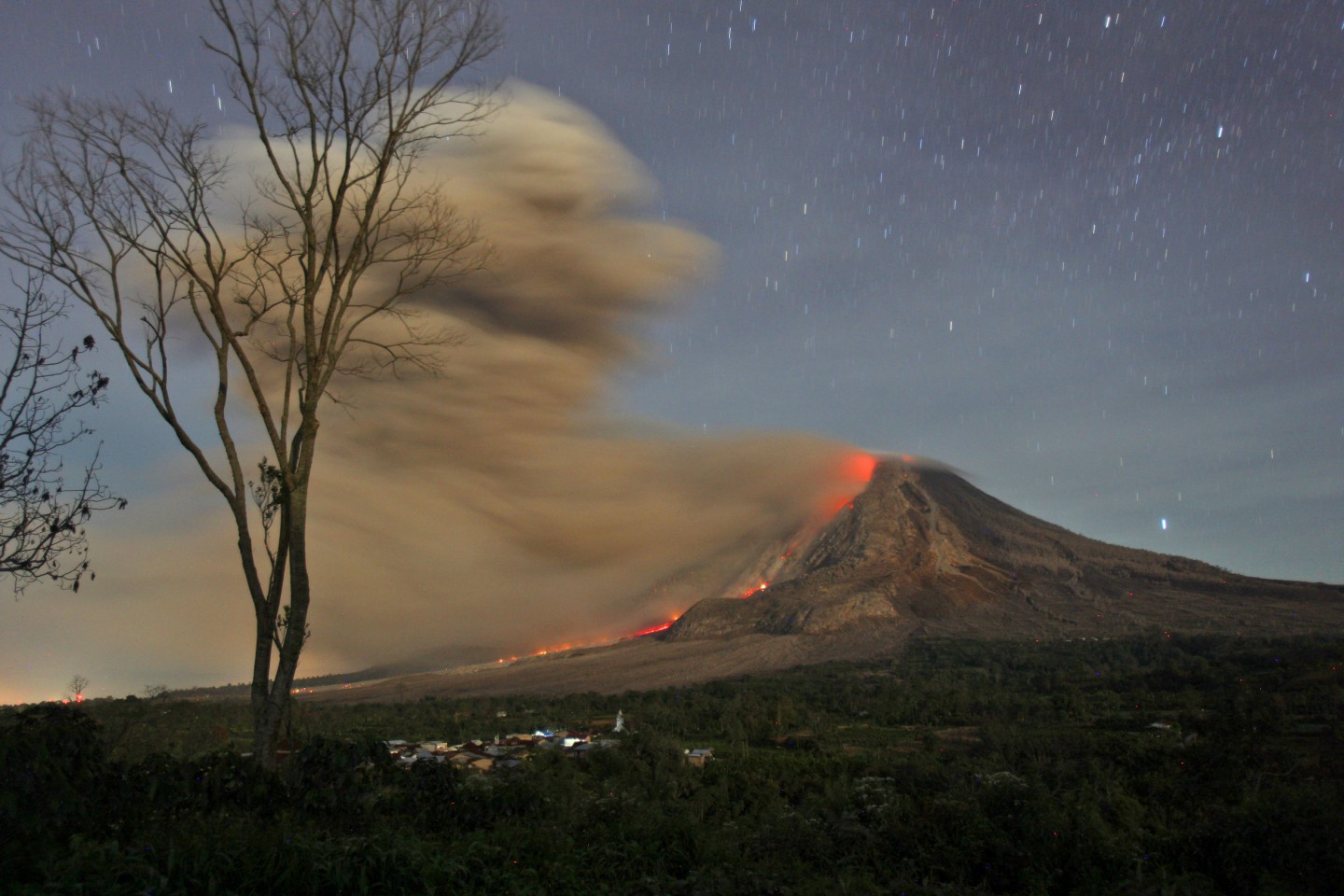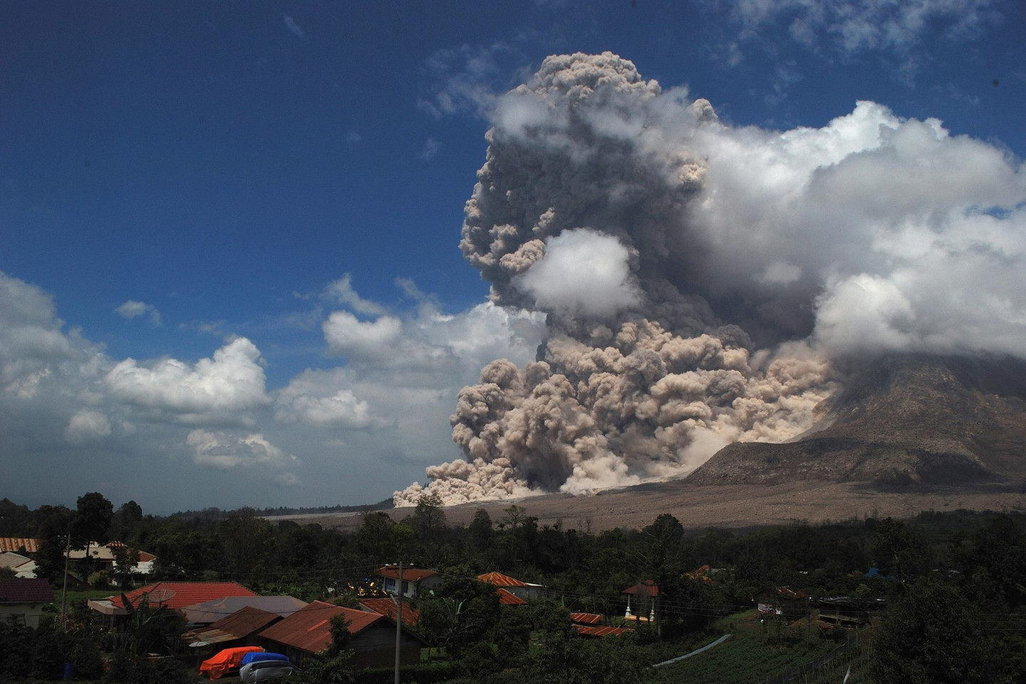 Pirmo reizi 400 gados noticis Indonēzijas vulkāna Sinabungas izvirdums