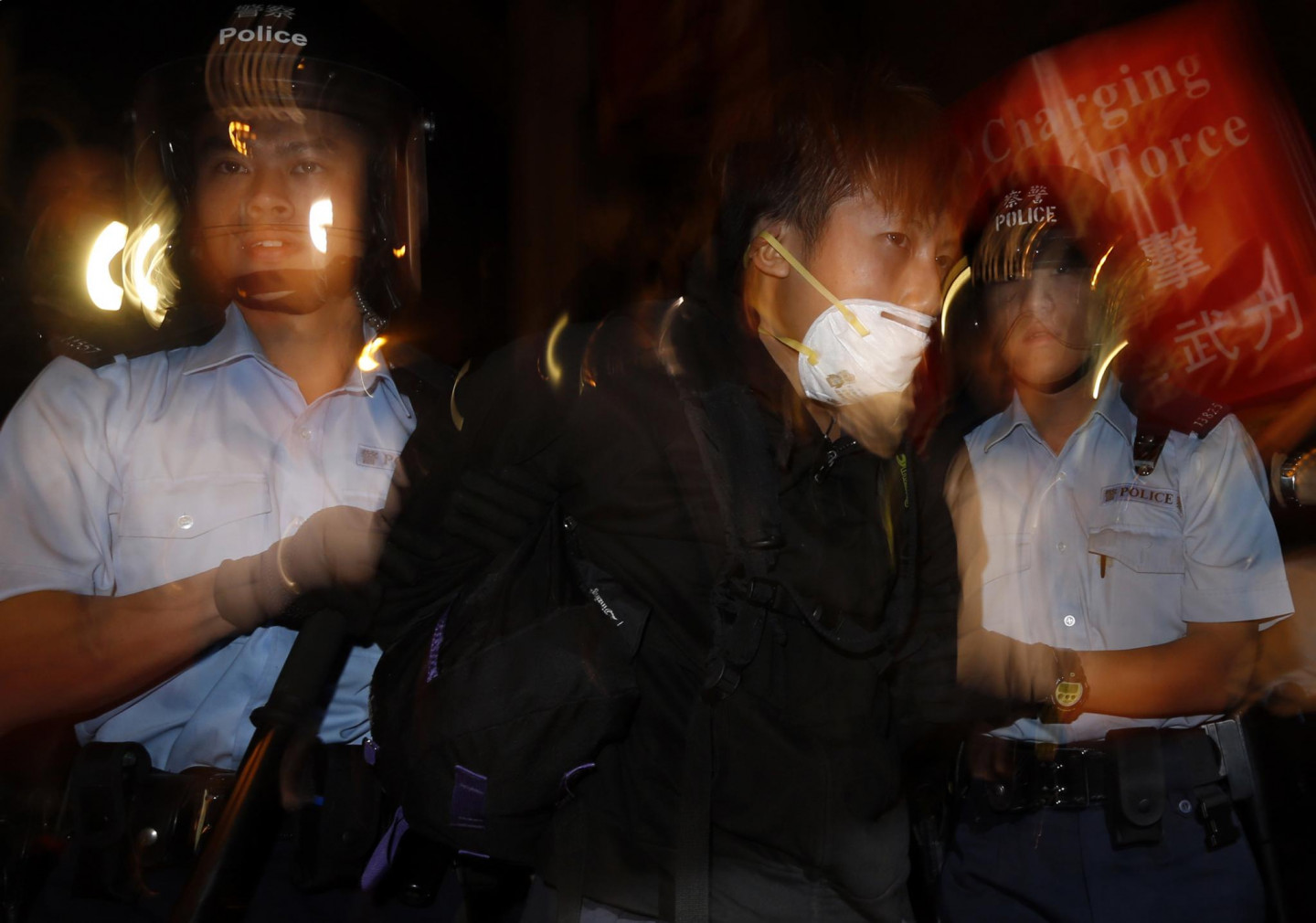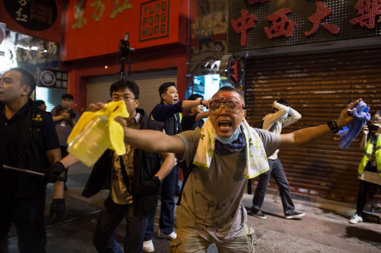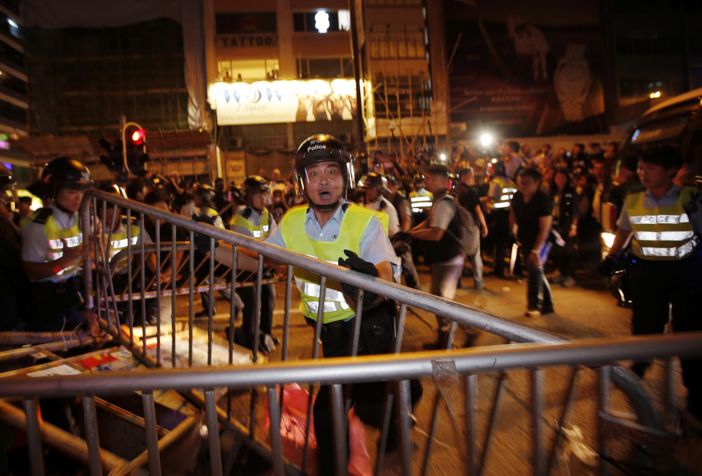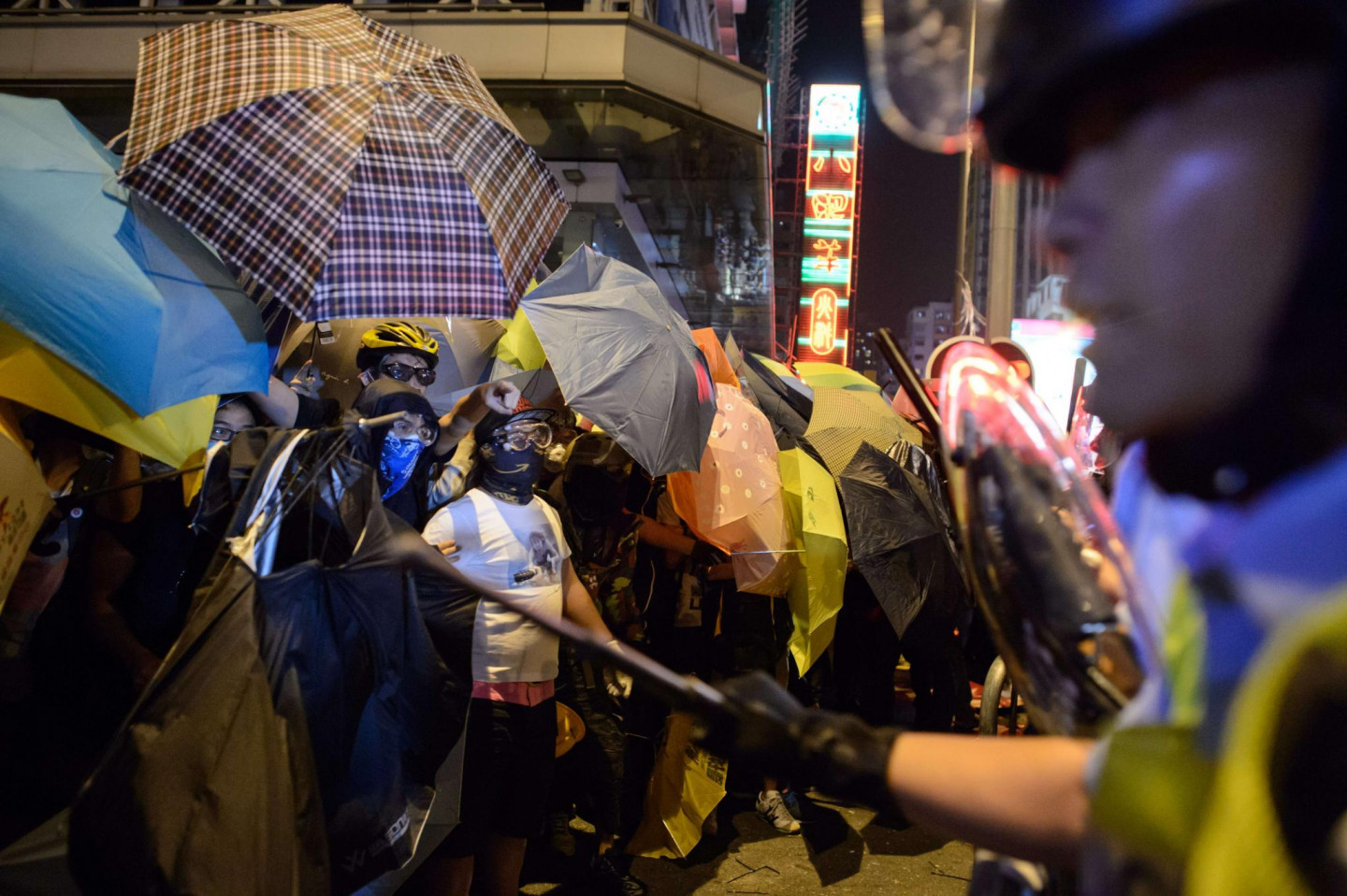 Honkongā sestdien turpinājās policijas sadursmes ar demonstrantiem, kuri no jauna ieņēma iepriekšējā dienā likvidēto protestētāju nometni. Policija pret protestētājiem pielietoja stekus un piparu gāzi. Demonstranti aizsargājās ar lietussargiem, taču pret rītausmu, viņiem nācās atkāpties.Šī bija jau trešā nakts pēc kārtas, kad starp protestētājiem un policistiem izceļas vardarbīgas sadursmes, kas apdraud iespējamās sarunas starp Honkongas varasiestādēm un studentu līderiem, kuri pieprasa demokrātisku vēlēšanu sarīkošanu 2017.gadā.