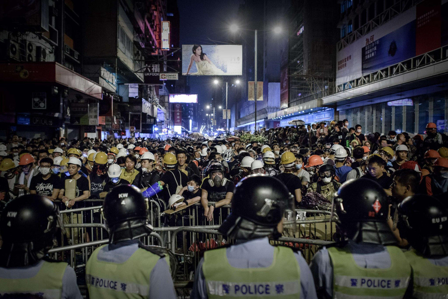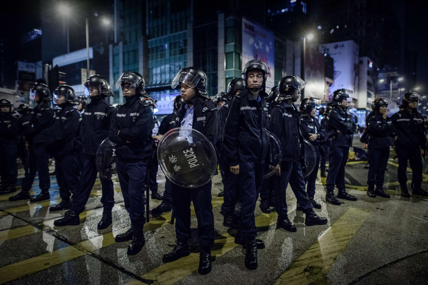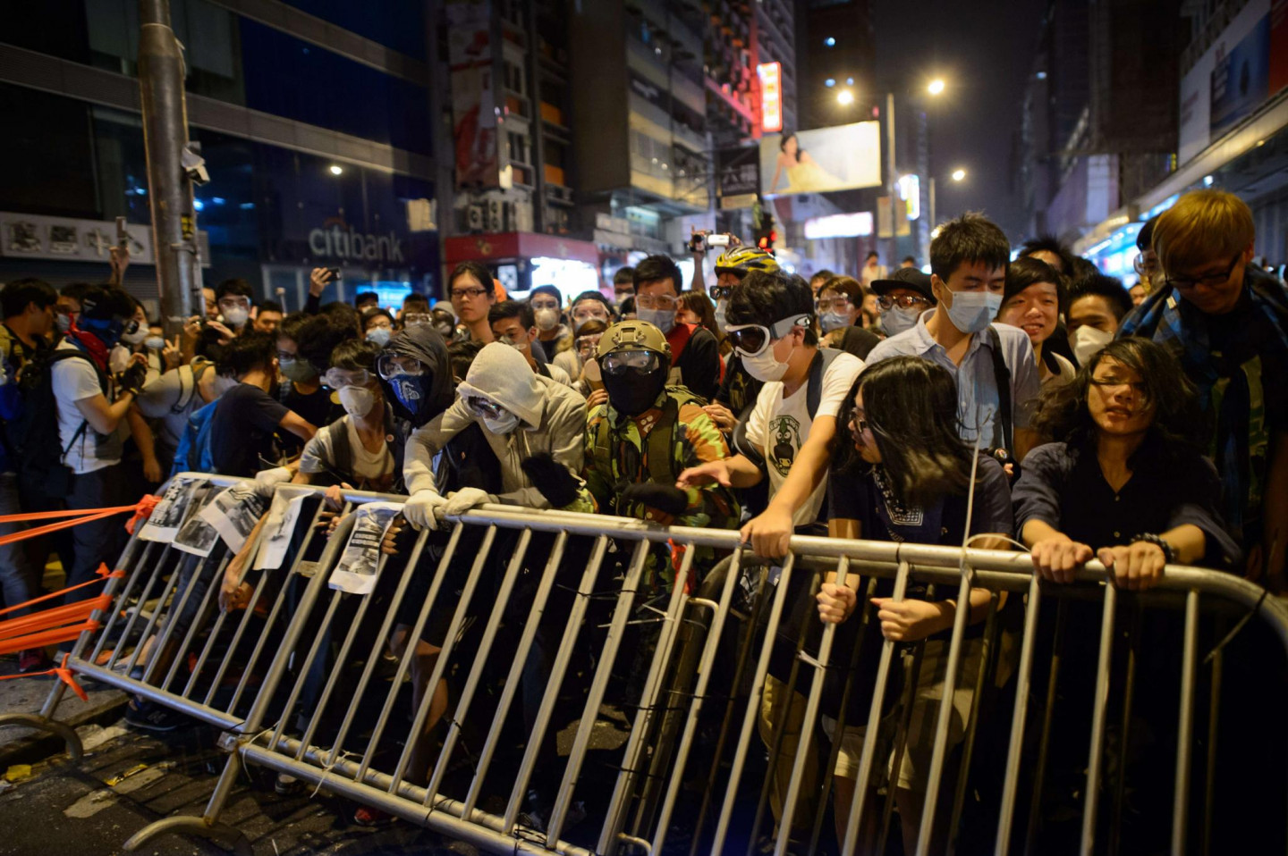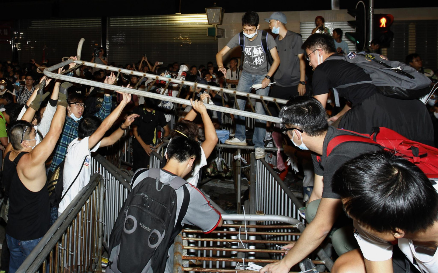 Honkongā sestdien turpinājās policijas sadursmes ar demonstrantiem, kuri no jauna ieņēma iepriekšējā dienā likvidēto protestētāju nometni. Policija pret protestētājiem pielietoja stekus un piparu gāzi. Demonstranti aizsargājās ar lietussargiem, taču pret rītausmu, viņiem nācās atkāpties.Šī bija jau trešā nakts pēc kārtas, kad starp protestētājiem un policistiem izceļas vardarbīgas sadursmes, kas apdraud iespējamās sarunas starp Honkongas varasiestādēm un studentu līderiem, kuri pieprasa demokrātisku vēlēšanu sarīkošanu 2017.gadā.