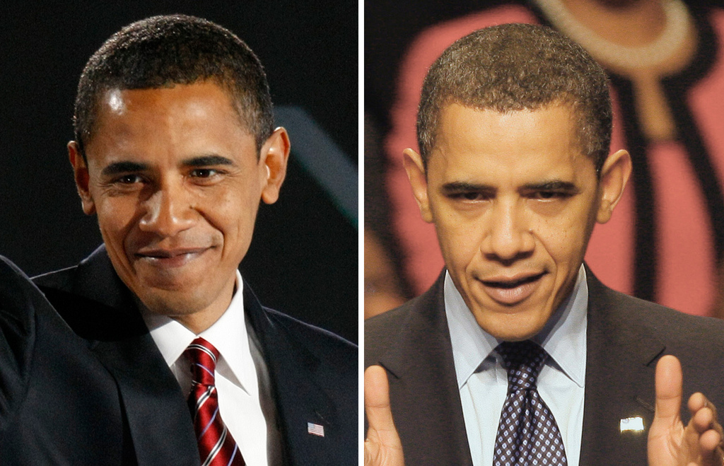 Baraks Obama ieņēma ASV prezidenta amatu vien 2009.gadā- jau šogad redzams kā prezidents pāris gadu laikā pamatīgi nosirmojis un novecojis.