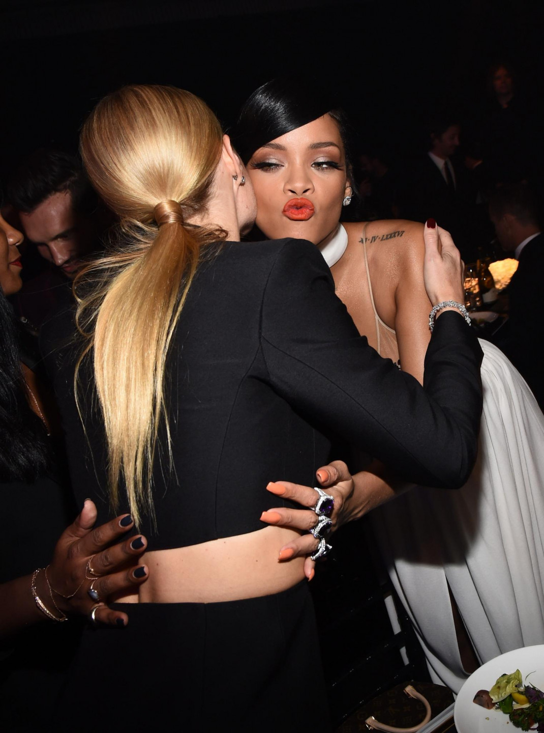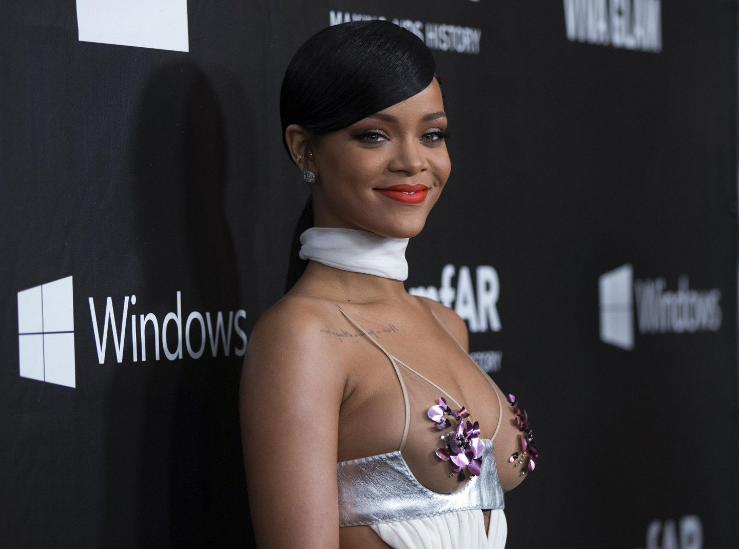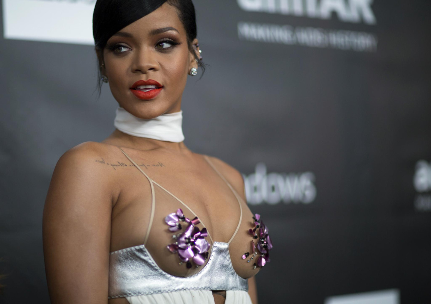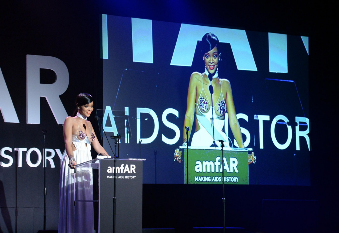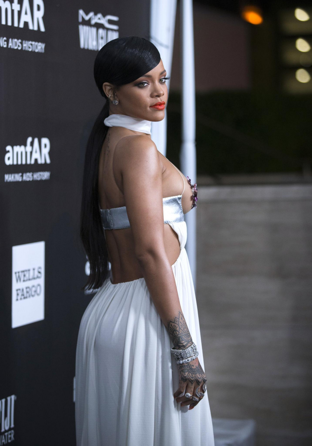 Losandželosā norisinājās "amfAR s Fifth Annual Inspiration Gala", kas pulcēja desmitiem "spožāko zvaigžņu", tajā skaitā arī dziedātāju Riannu, kas izcēlās ar īpaši neparastu un visnotaļ atklātu ietērpu, piesedzot savas krūtis tikai ar dažiem rozā fliteriem.