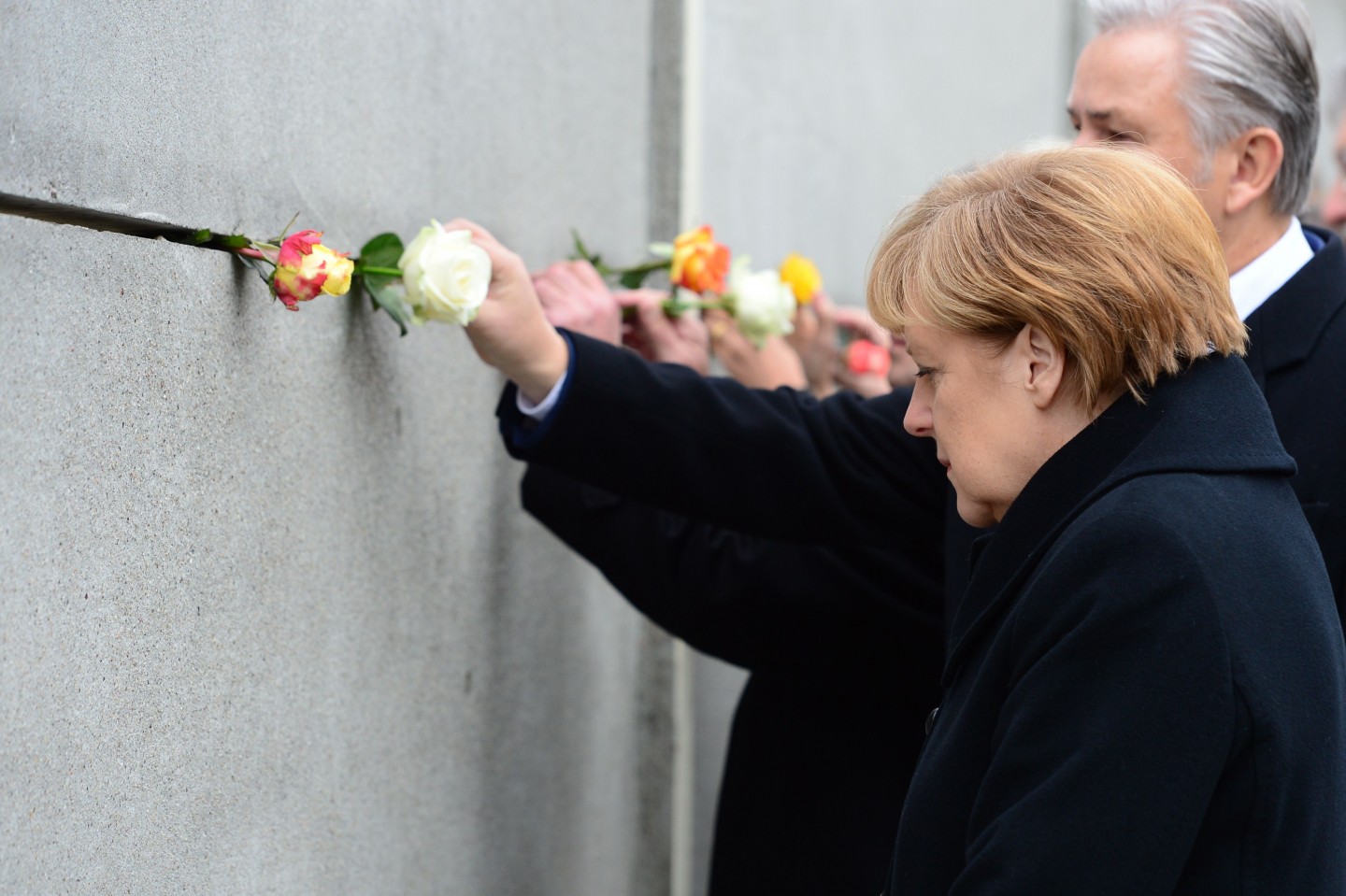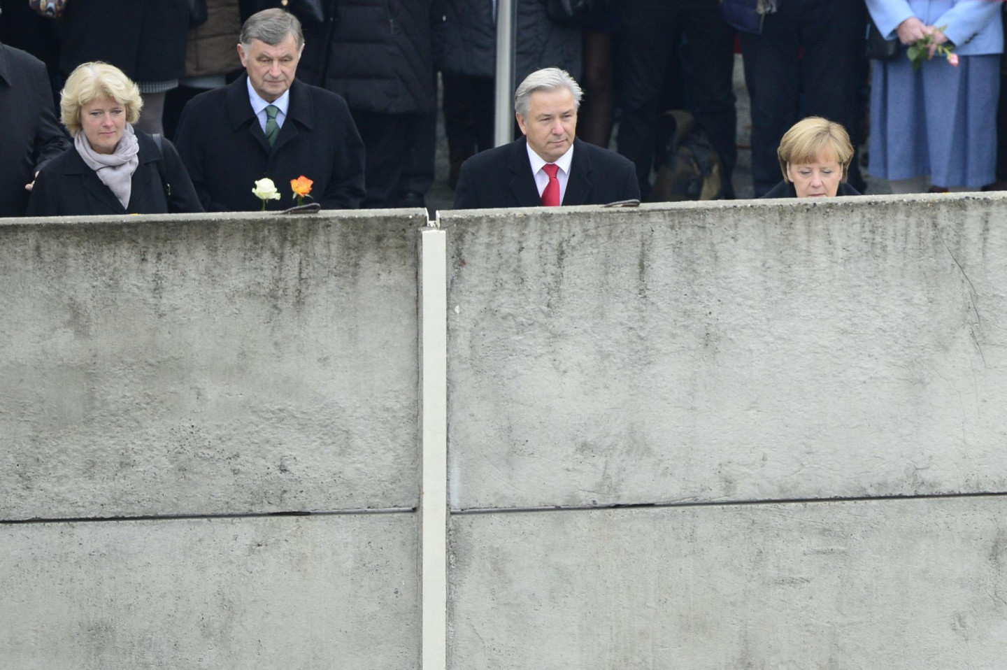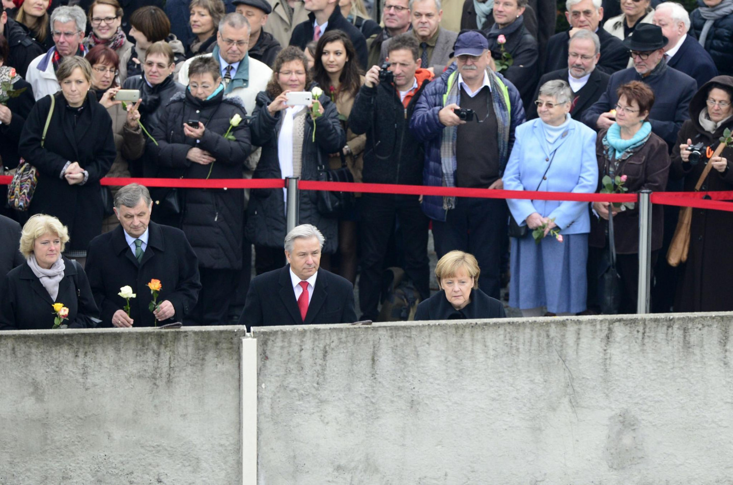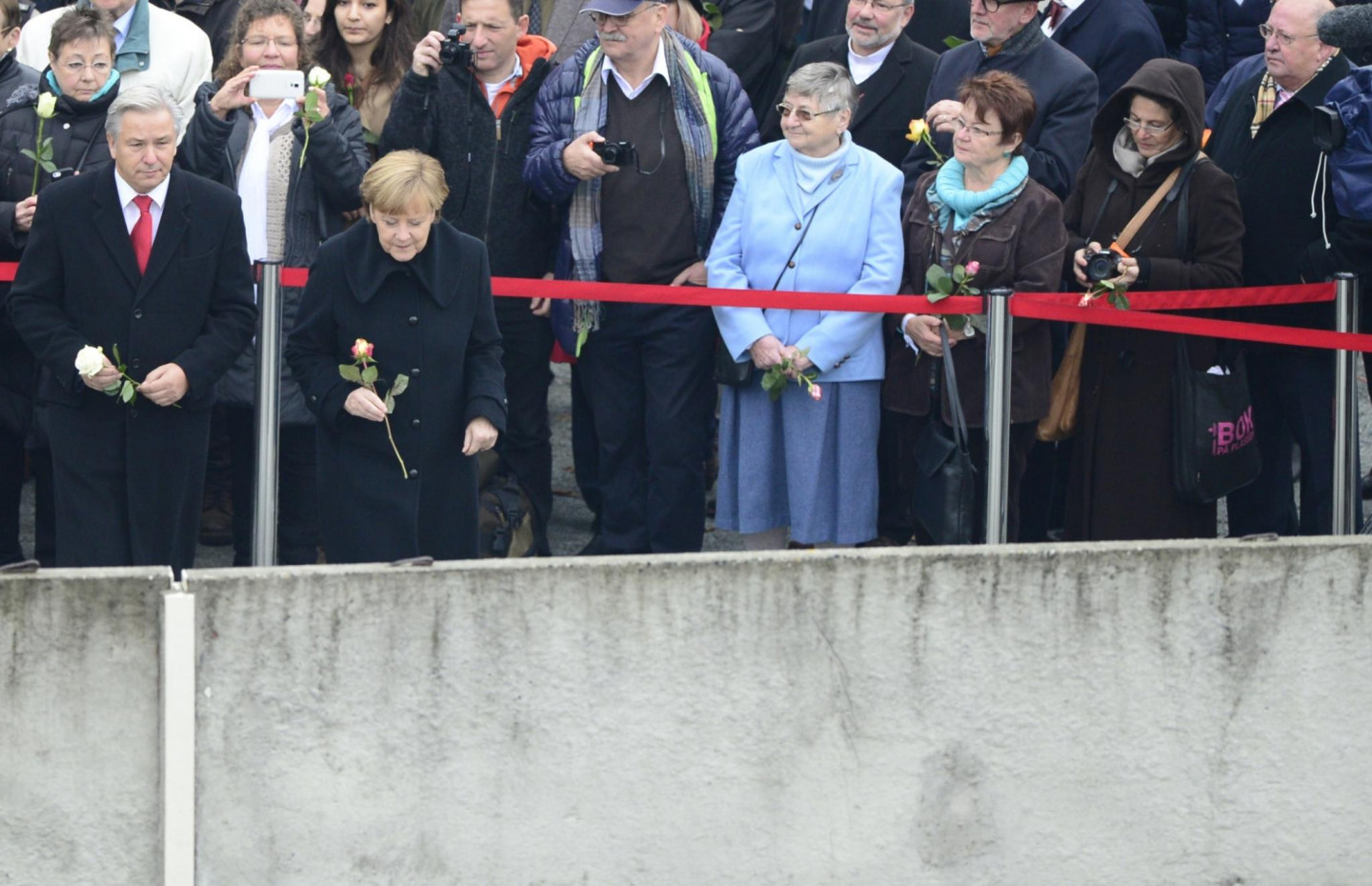Ziedu nolikšanas ceremonijā pie Berlīnes mūra piedalījās Vācijas kanclere Angela Merkele, Vācijas kultūras ministre Monika Gruetters, bijušais Ungārijas premjerministrs Miklos Nemets un Berlīnes mērs Klaus Voveraits. Aprit 25 gadi kopš Berlīnes mūra krišanas.