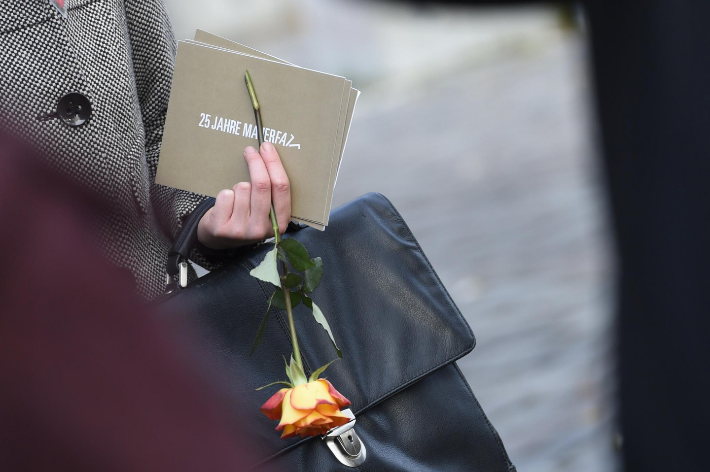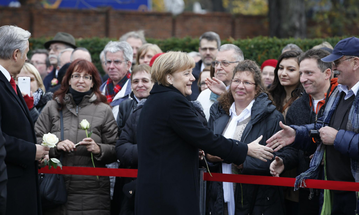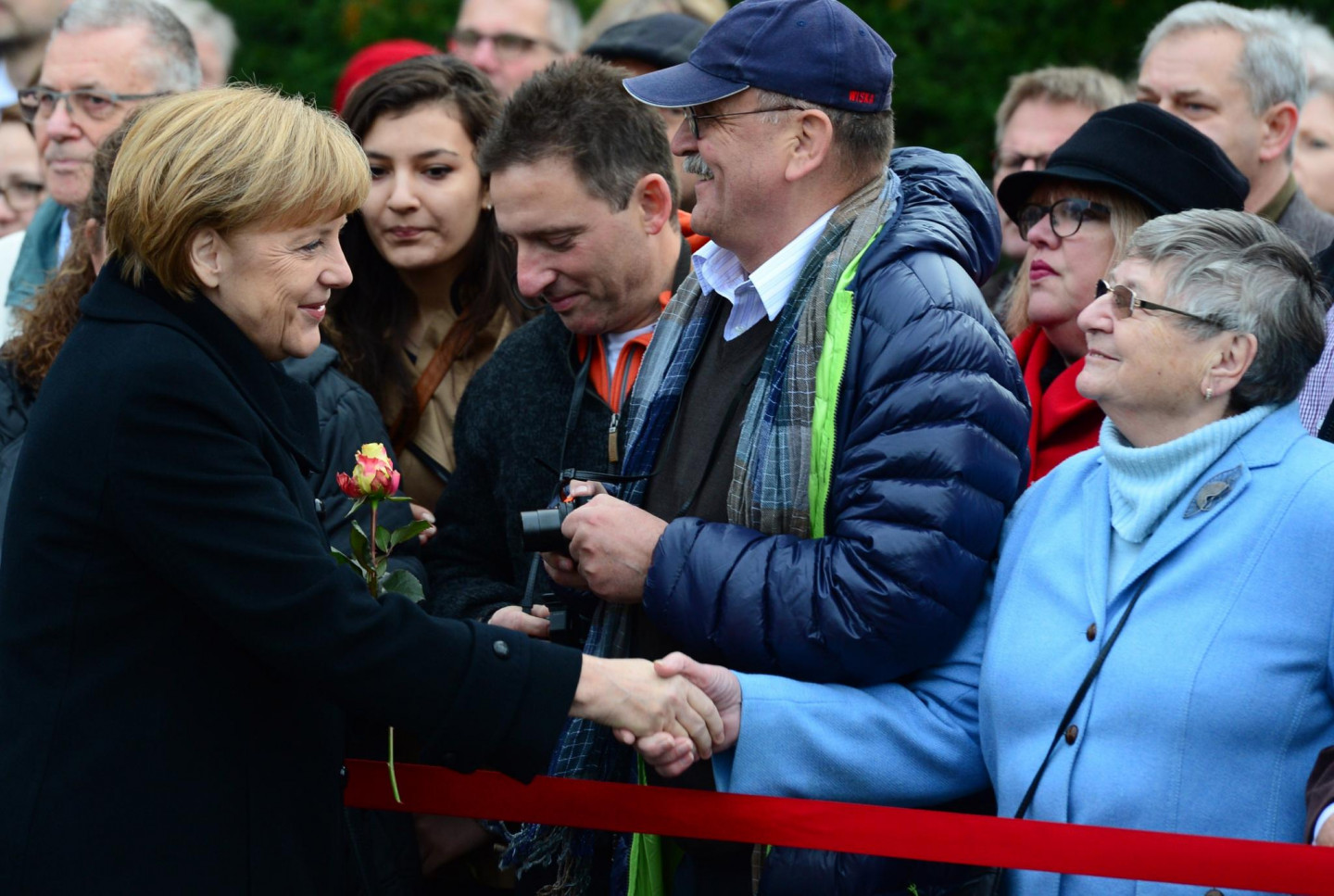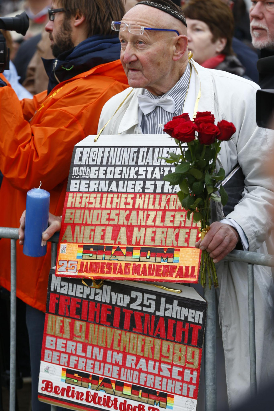 Ziedu nolikšanas ceremonijā pie Berlīnes mūra piedalījās Vācijas kanclere Angela Merkele, Vācijas kultūras ministre Monika Gruetters, bijušais Ungārijas premjerministrs Miklos Nemets un Berlīnes mērs Klaus Voveraits. Aprit 25 gadi kopš Berlīnes mūra krišanas.
