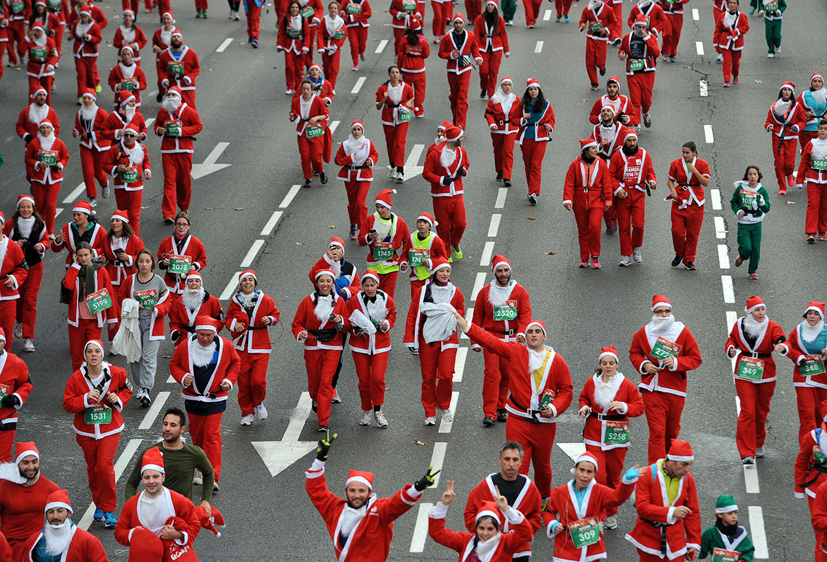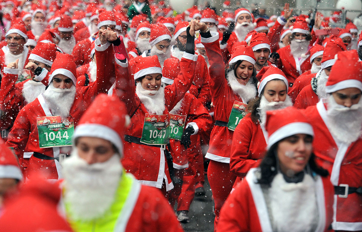 Ziemassvētku vecīšu skrējieni kļūst aizvien populārāki pasaulē, ne tikai Spānijā, Itālijā un ASV.
