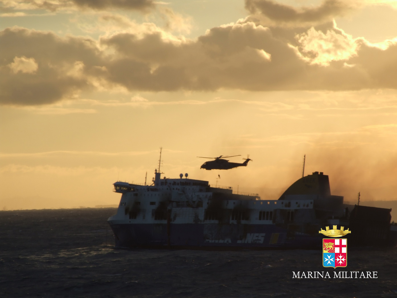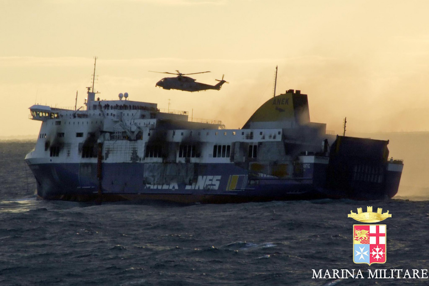 Turpina evakuēt cilvēkus no ugunsgrēka piemeklētā prāmja Adrijas jūrā