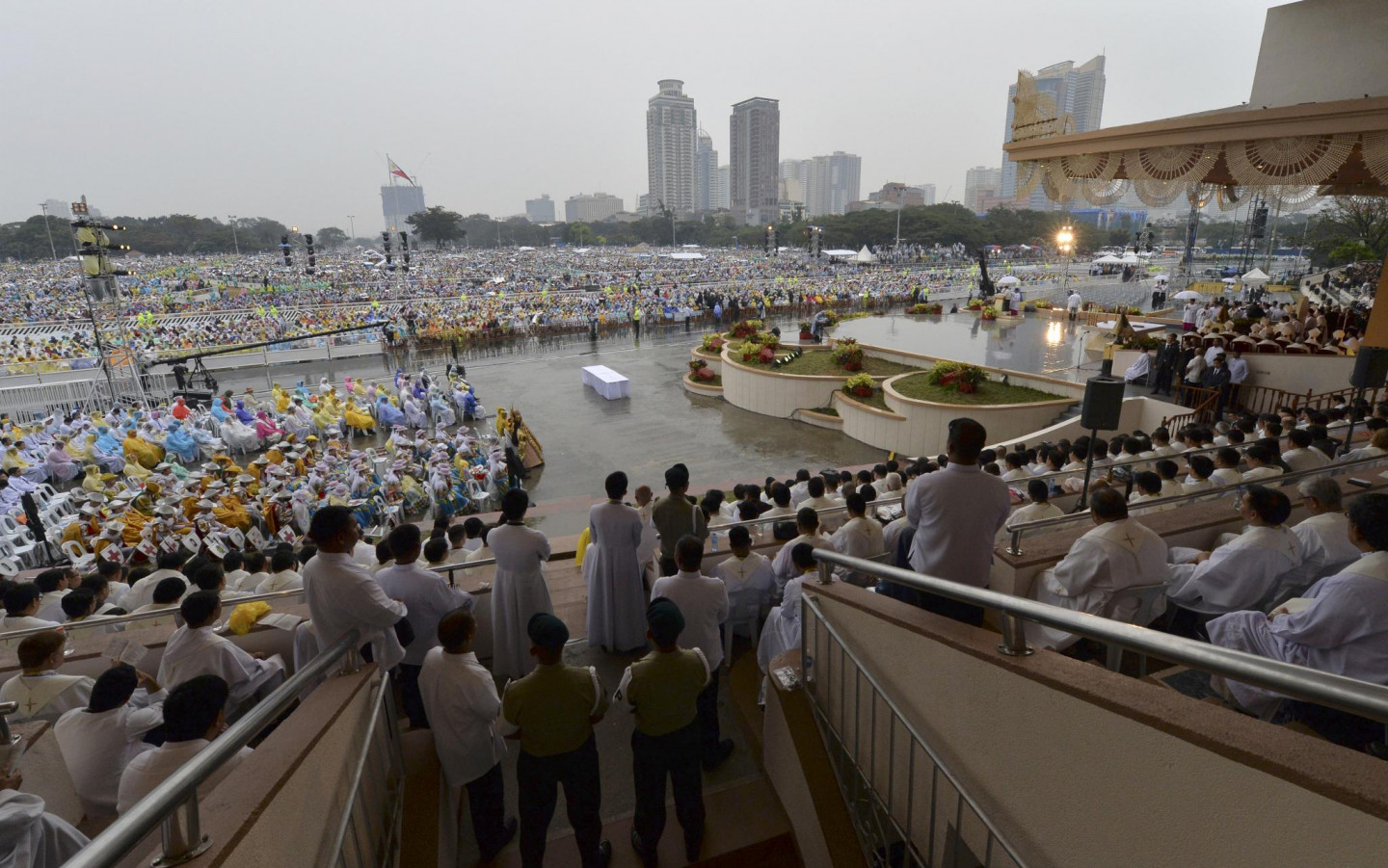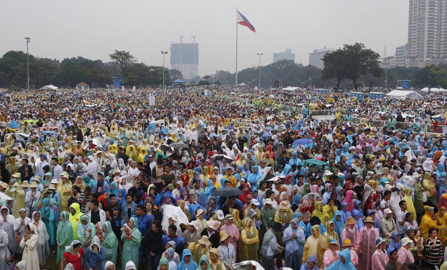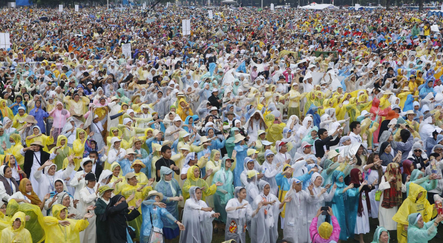 Vairāk miljoni filipīniešu svētdien pulcējušies uz pāvesta Franciska vadītu brīvdabas misi galvaspilsētā Manilā, kas acīmredzot būs viens no visu laiku plašākajiem brīvdabas dievkalpojumiem. Neraugoties uz lietaino un vējaino laiku, saviļņotie cilvēki sagaidījuši pāvestu ar dziesmām un gavilēm. Lēsts, ka jau divas stundas pirms mises sākuma Rizalas parkā bija sanākuši trīs miljoni cilvēku. Tika lēsts, ka kopumā mises dalībnieku skaits varētu sasniegt sešus miljonus, bet šobrīd nav zināms, vai šīs prognozes piepildījušās.