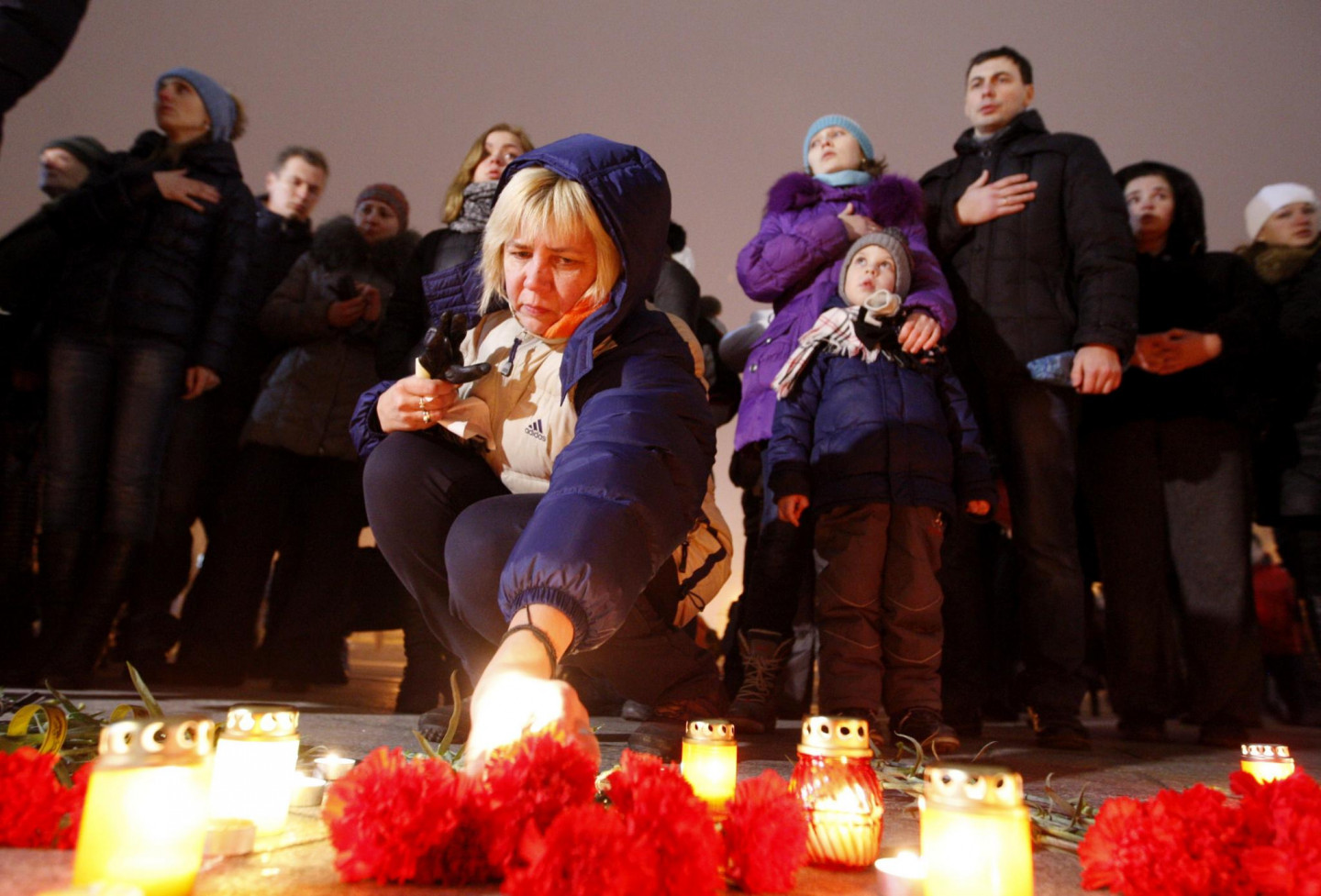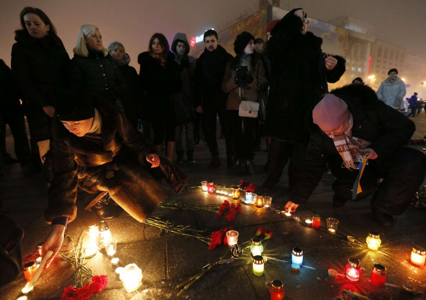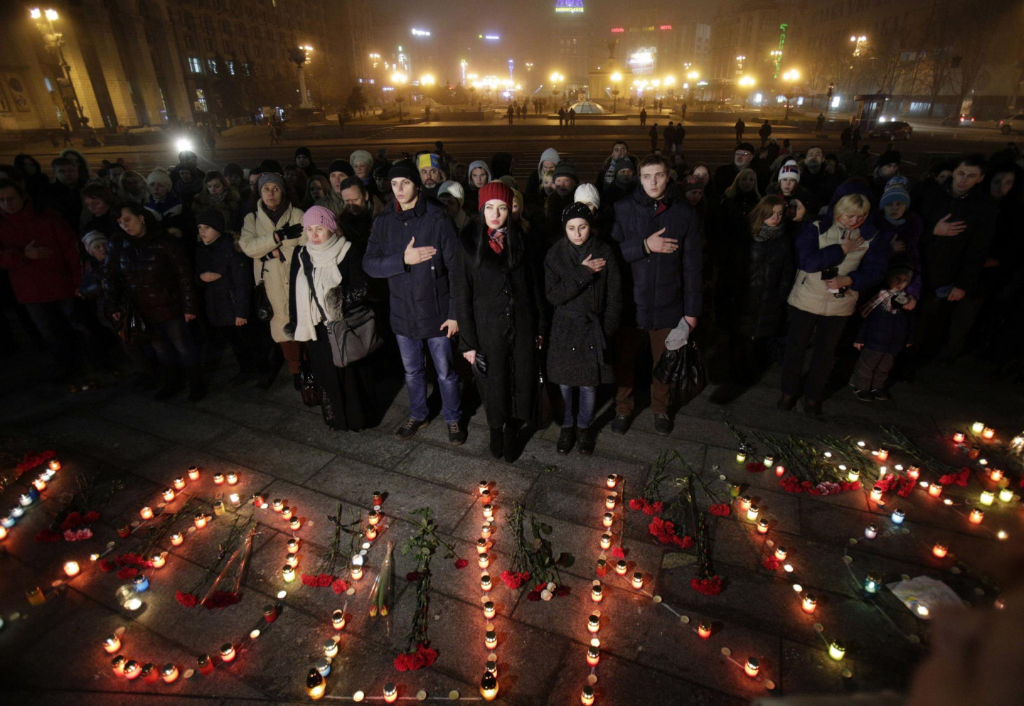 Maidanā, Neatkatrības laukumā Kijevā, godāta Mariupolē bojāgājošo piemiņa. Mariupoles apšaudē ar reaktīvajām mīnmetēju iekārtām "Grad", ko sestdien veica Krievijas finansētās un apbruņotās teroristu bandas, tika nogalināti 30 cilvēki, bet vairāk nekā 90 - ievainoti. Teroristu šāviņi sestdien Mariupolē trāpīja 53 daudzstāvu namiem, 14 privātmājām, četrām skolām un trim bērnudārziem. Krievija februārī okupēja Ukrainai piederošo Krimas pussalu. Kopš aprīļa Maskavas atbalstītie un apbruņotie kaujinieki, diversanti un Krievijas regulāro vienību karavīri ieņēmuši plašus apvidus Luhanskas un Doņeckas apgabalos, Ukrainas austrumos.