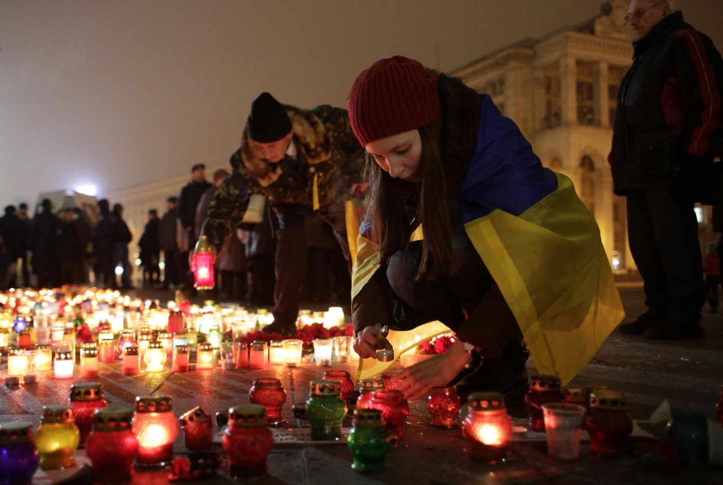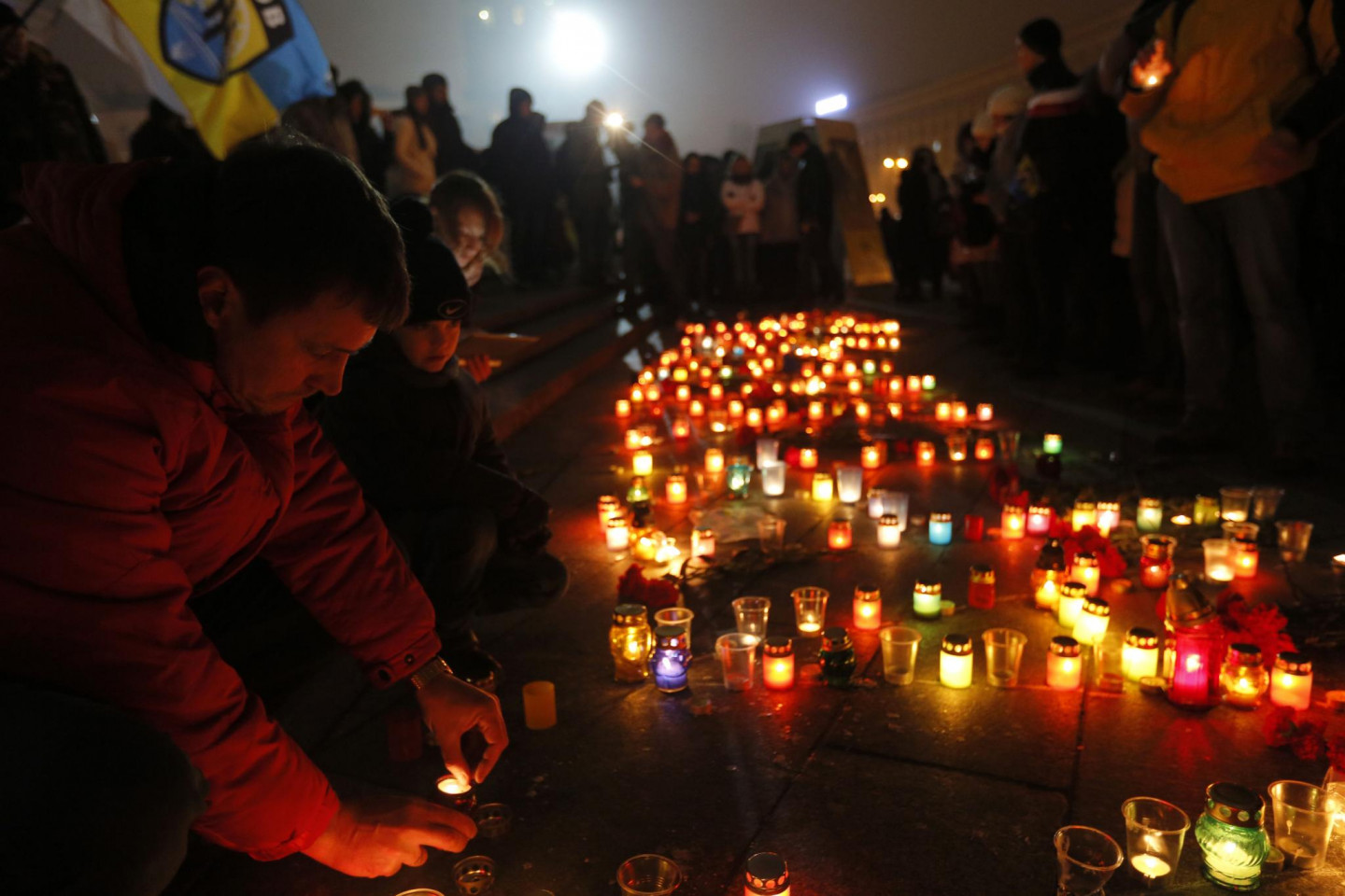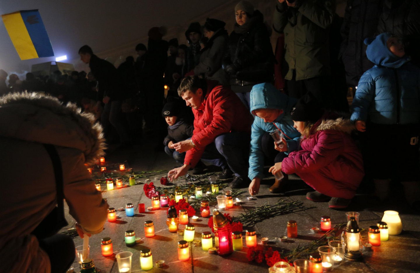 Maidanā, Neatkatrības laukumā Kijevā, godāta Mariupolē bojāgājošo piemiņa. Mariupoles apšaudē ar reaktīvajām mīnmetēju iekārtām "Grad", ko sestdien veica Krievijas finansētās un apbruņotās teroristu bandas, tika nogalināti 30 cilvēki, bet vairāk nekā 90 - ievainoti. Teroristu šāviņi sestdien Mariupolē trāpīja 53 daudzstāvu namiem, 14 privātmājām, četrām skolām un trim bērnudārziem. Krievija februārī okupēja Ukrainai piederošo Krimas pussalu. Kopš aprīļa Maskavas atbalstītie un apbruņotie kaujinieki, diversanti un Krievijas regulāro vienību karavīri ieņēmuši plašus apvidus Luhanskas un Doņeckas apgabalos, Ukrainas austrumos.