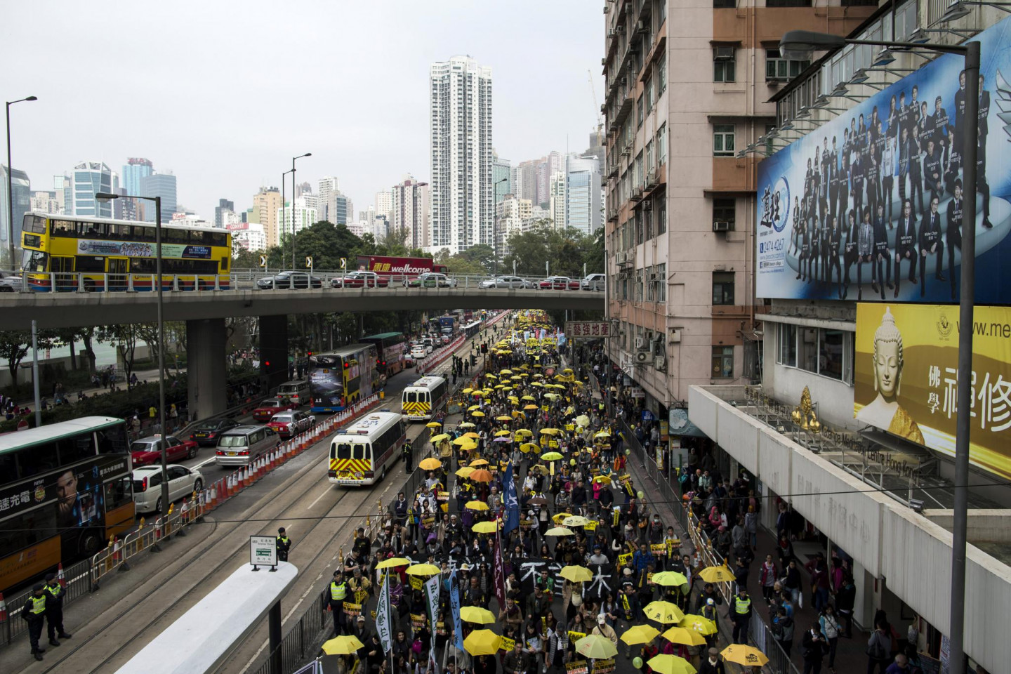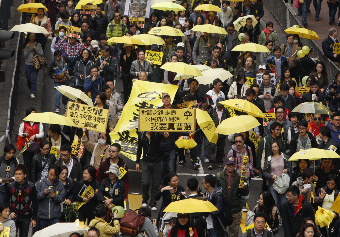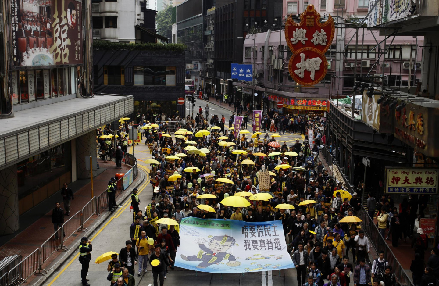 Honkongā tūkstošiem cilvēku svētdien bija sapulcējušies uz mītņu demokrātijas atbalstam. Policija demonstrantu skaitu aplēsusi uz 6000, bet mītiņa organizētāji ziņoja, ka ieradušies aptuveni 13 000 cilvēku. Pagājušajā gadā protestētāji gandrīz trīs mēnešus bija okupējuši trīs galvenos pilsētas rajonus, tostarp biznesa un tirdzniecības centrus. Viņi vēlējās panākt, lai Honkongas iedzīvotājiem pašiem būtu ļauts 2017.gada vēlēšanās izvēlēties savus līderus bez Pekinas iejaukšanās. Tomēr, laikam ritot, protesta kustība sāka zaudēt savu sparu. Šī ir pirmā demonstrācija šogad. Līdzīgi kā iepriekš, arī šajā reizē demonstranti pieprasa demokrātiskas Honkongas līdera vēlēšanas.