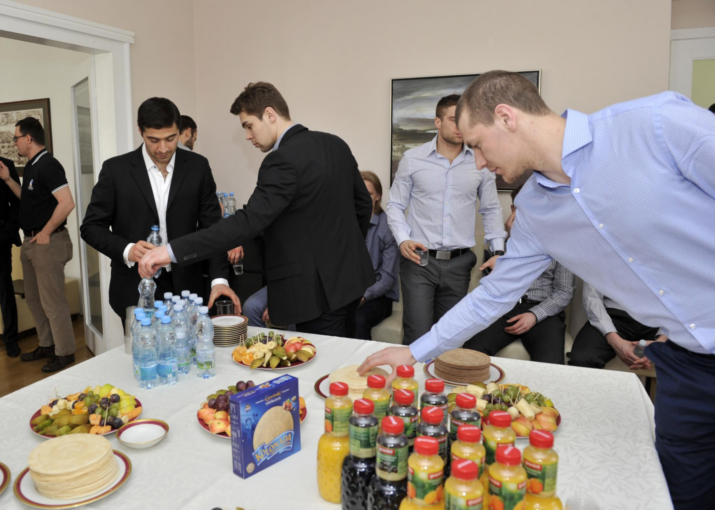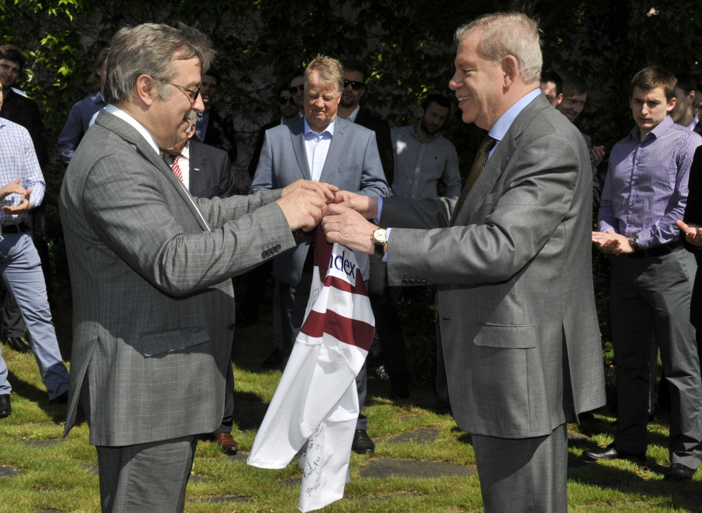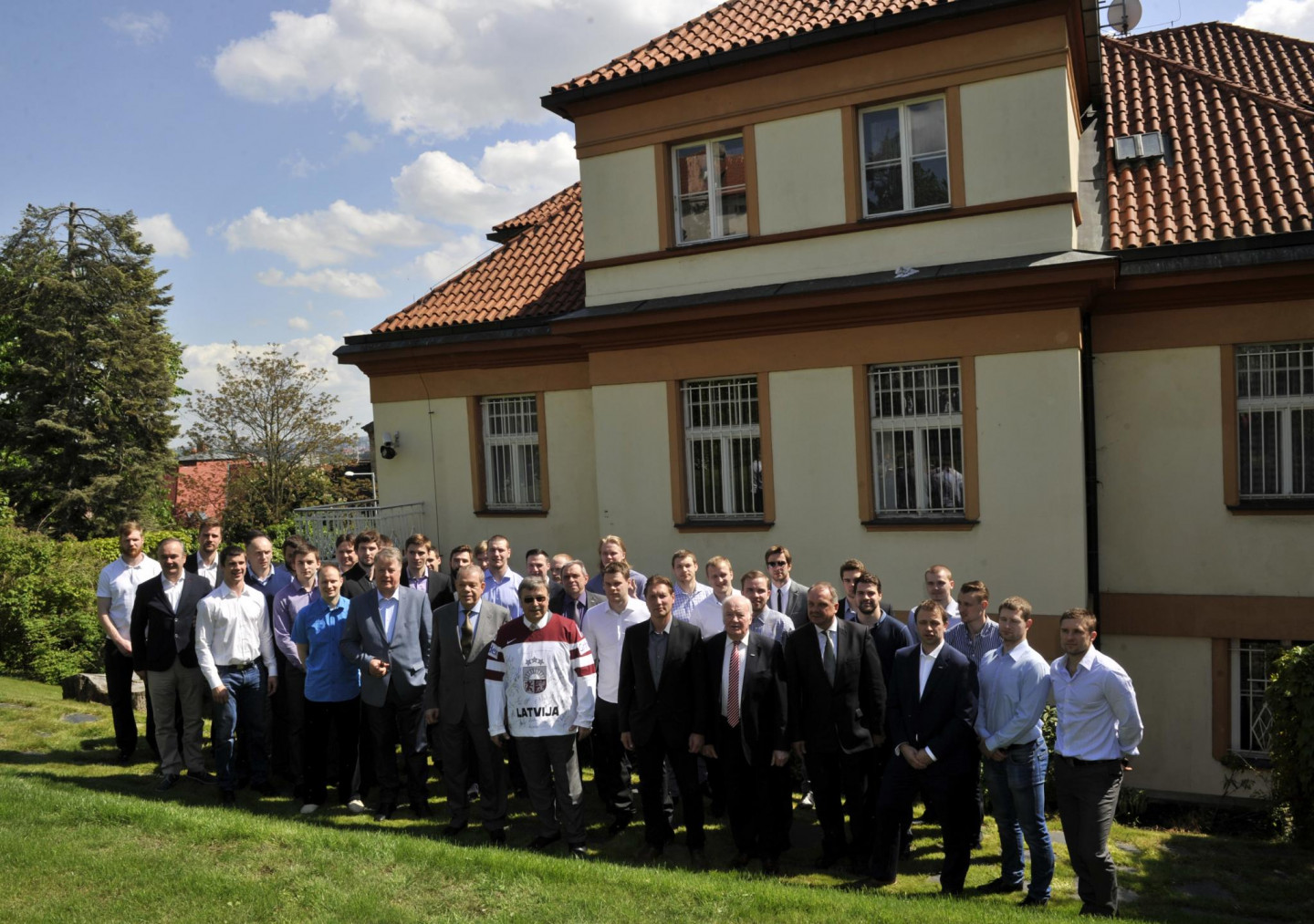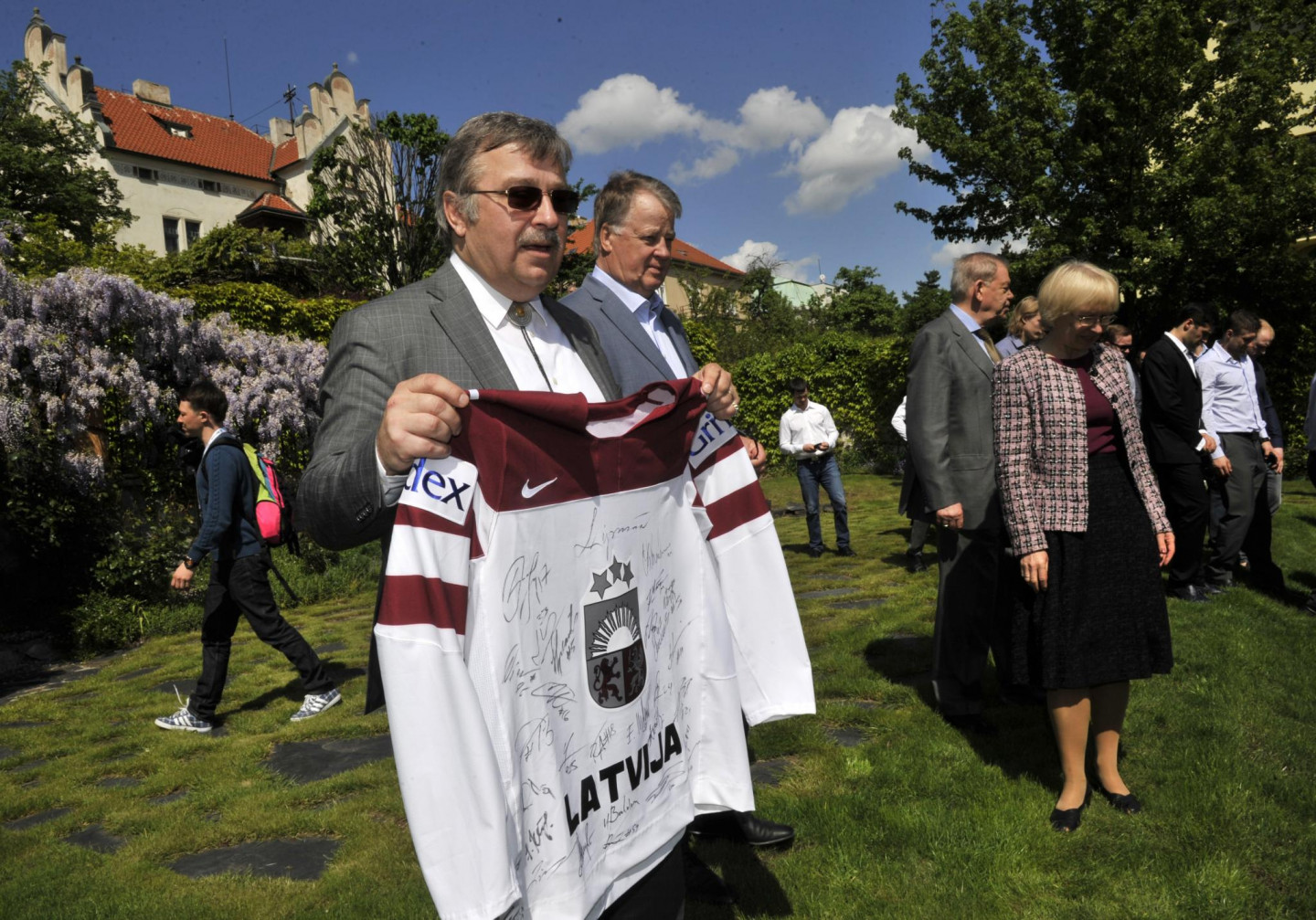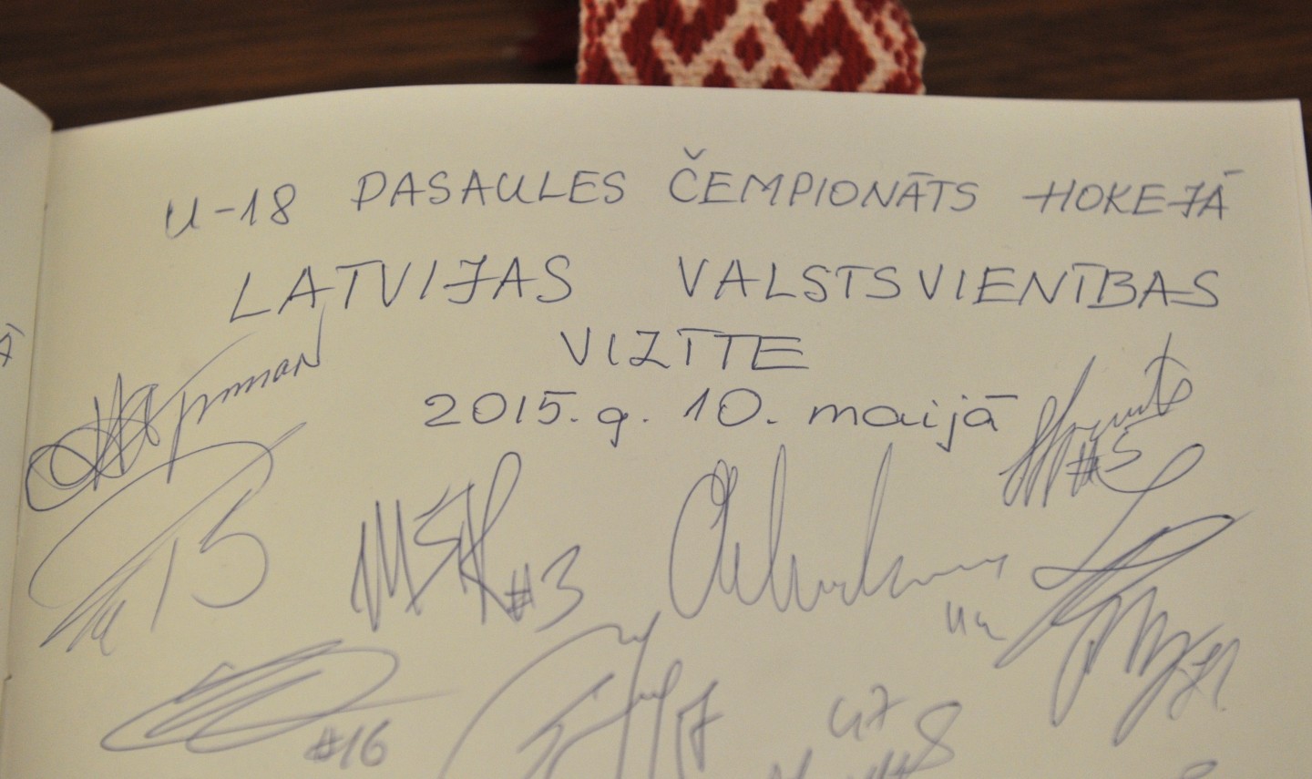 Latvija hokeja izlase svētdien, 10.maijā, viesojās Latvijas vēstniecībā Prāgā IIHF 2015. gada Pasaules čempionāta hokejā(PČH) laikā.