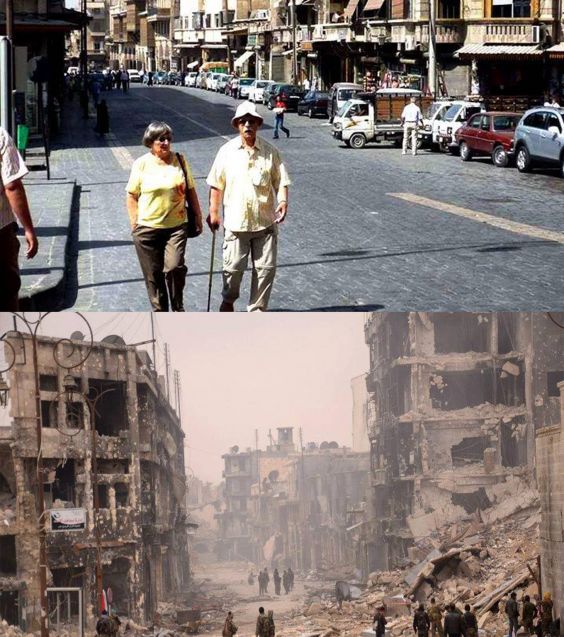 Sīrijas pilsēta Alepo, kur aktīvi noris kaujas pret teroristisko grupējumu "Islāma valsts", ir praktiski izpostīta. No senās pilsētas skaistuma un mierīgās dzīves ir palikušas pāri tikai drupas.