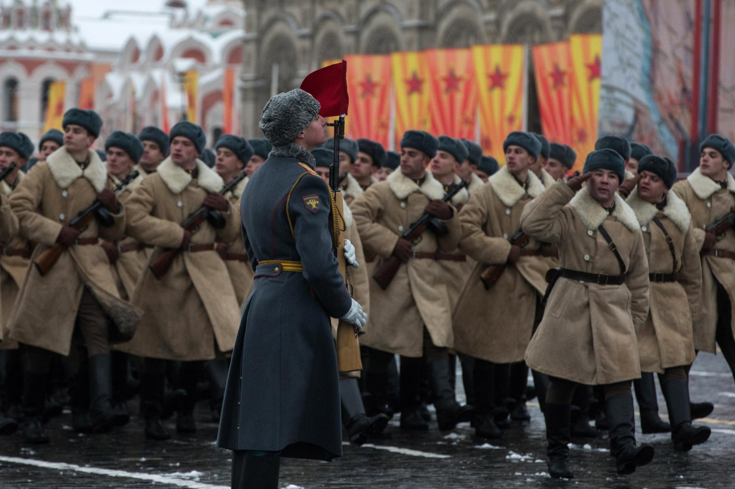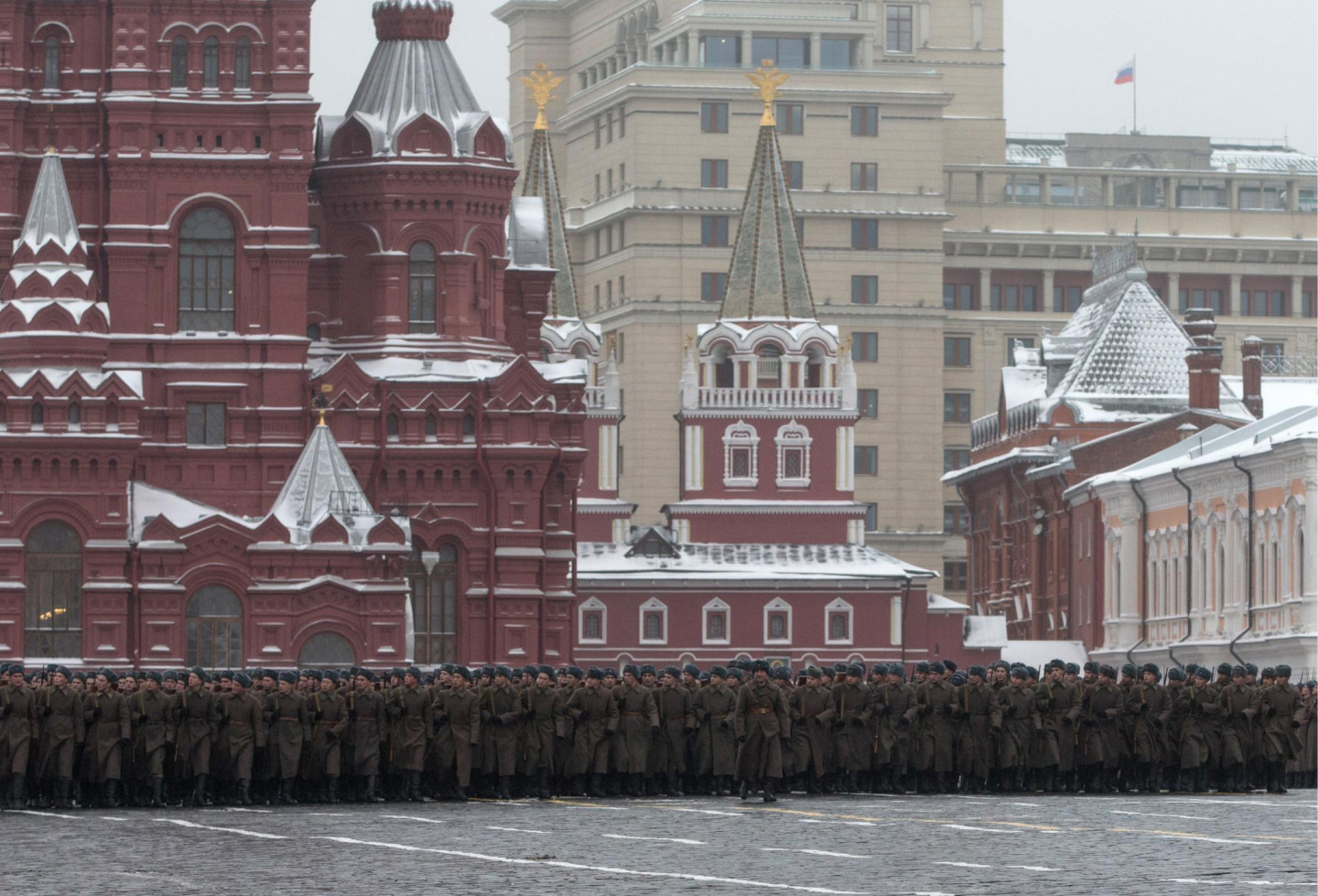 Pirmdien, 7. novembrī, Maskavā, Krievijā, noticis piemiņas maršs par godu Oktobra revolūcijas 99. gadadienai, bet armijas spēki organizēja parādi atzīmējot 75 gadus kopš Sarkanās armijas karavīri 1941. gadā Otrā pasaules kara laikā devās cīnīties pret nacistisko Vāciju, lai aizsargātu Maskavu.