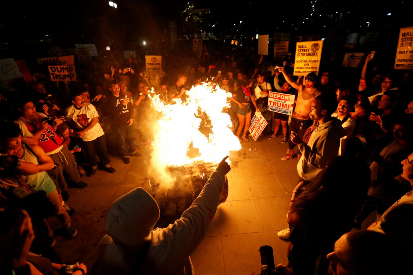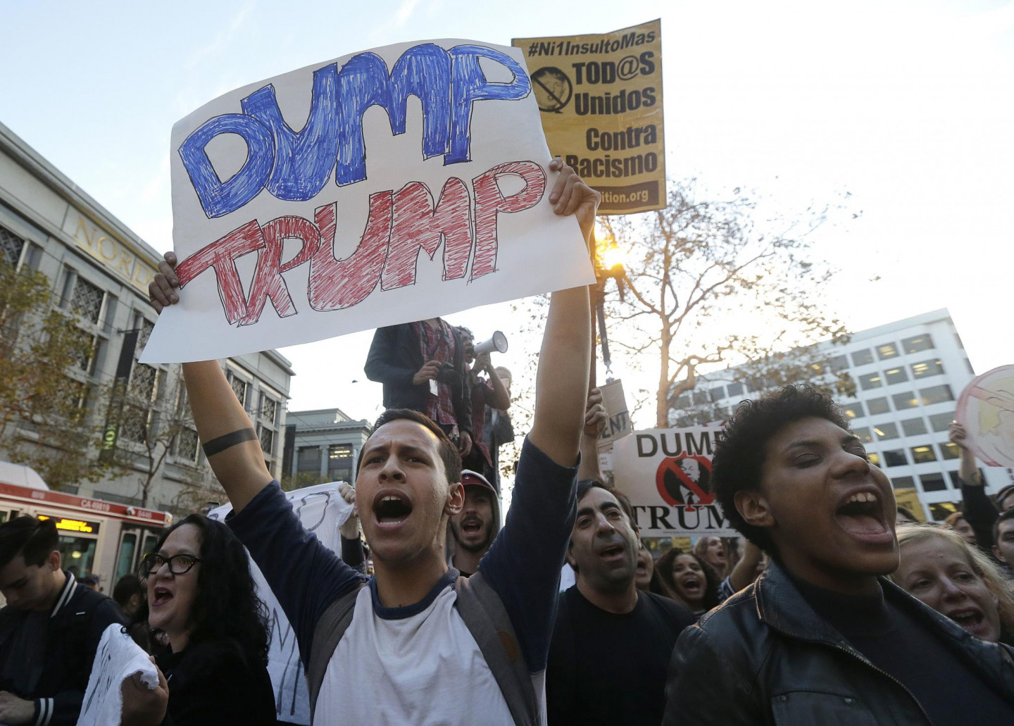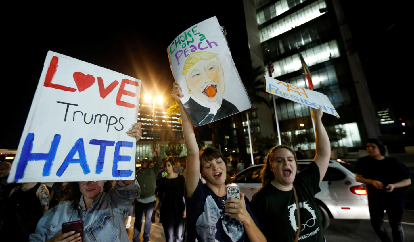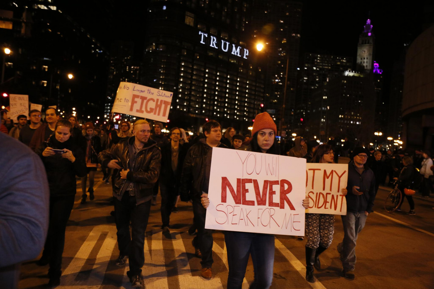 Vairākās ASV lielpilsētās, kā Ņujorkā, Sietlā, Losandželosā, Čikāgā un citās, tūkstošiem cilvēki ar plakātiem pagājušajā naktī izgāja ielās, lai paustu savu neapmierinātību ar ASV prezidenta vēlēšanām, kurās uzvarēja republikānis Donalds Tramps.
