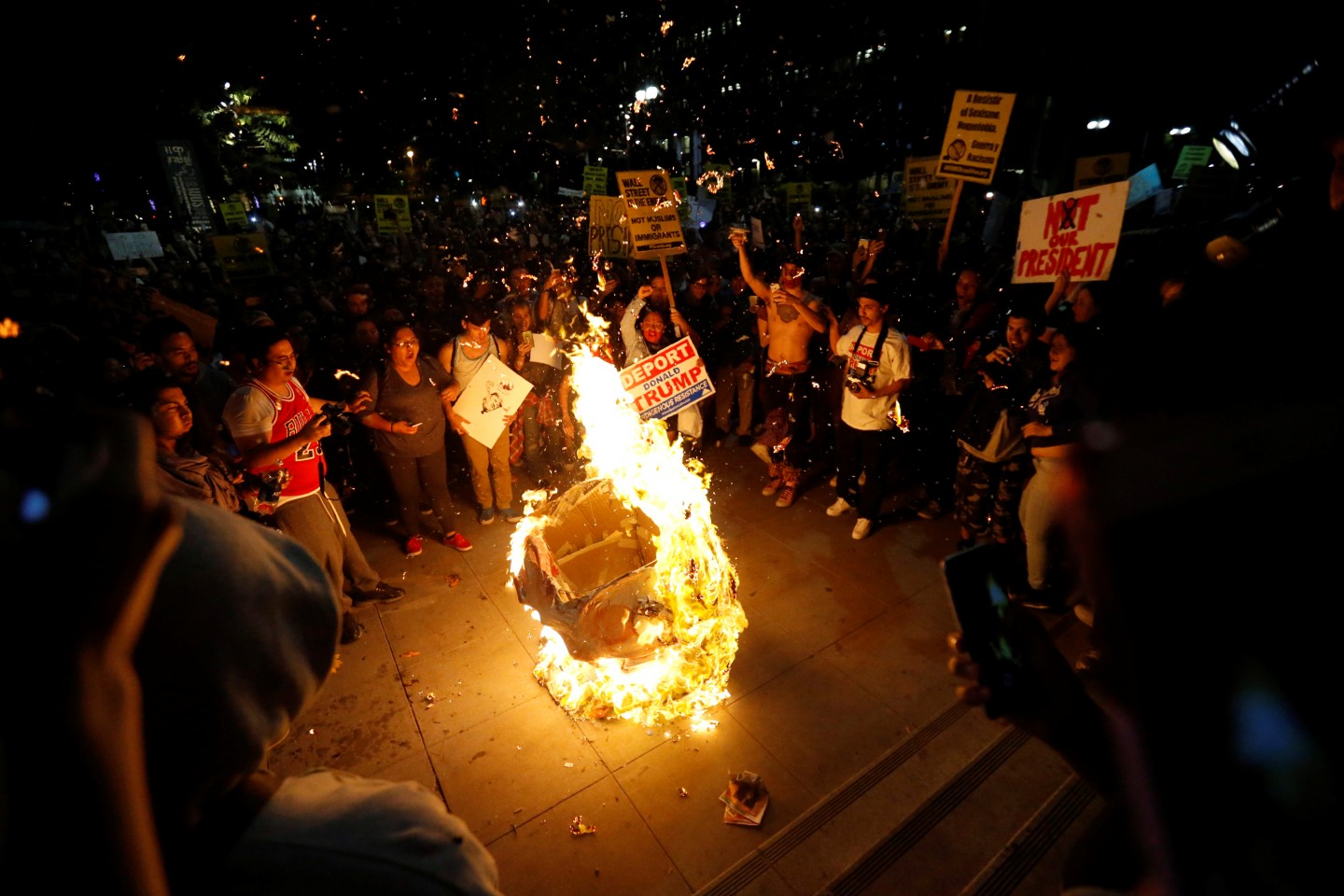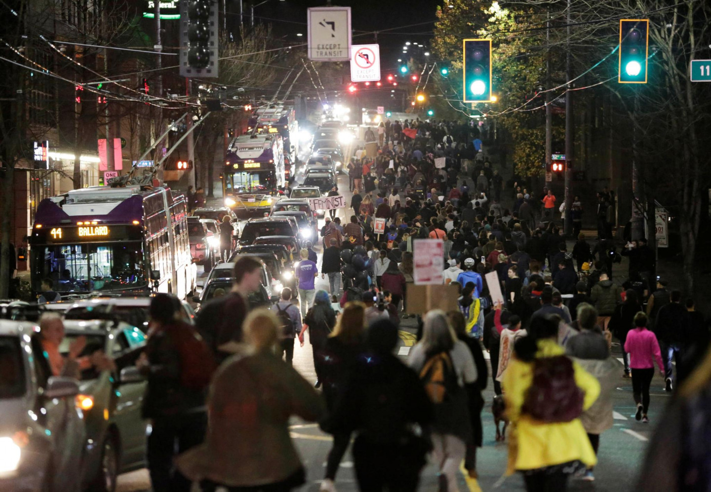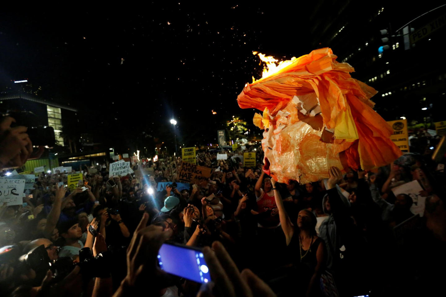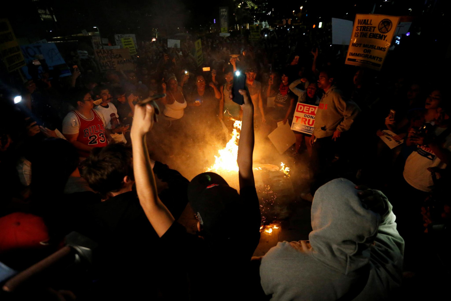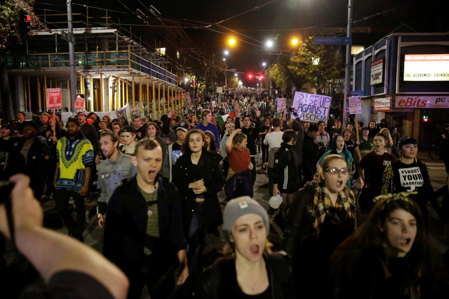 Vairākās ASV lielpilsētās, kā Ņujorkā, Sietlā, Losandželosā, Čikāgā un citās, tūkstošiem cilvēki ar plakātiem pagājušajā naktī izgāja ielās, lai paustu savu neapmierinātību ar ASV prezidenta vēlēšanām, kurās uzvarēja republikānis Donalds Tramps.