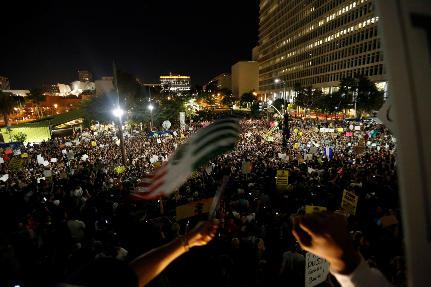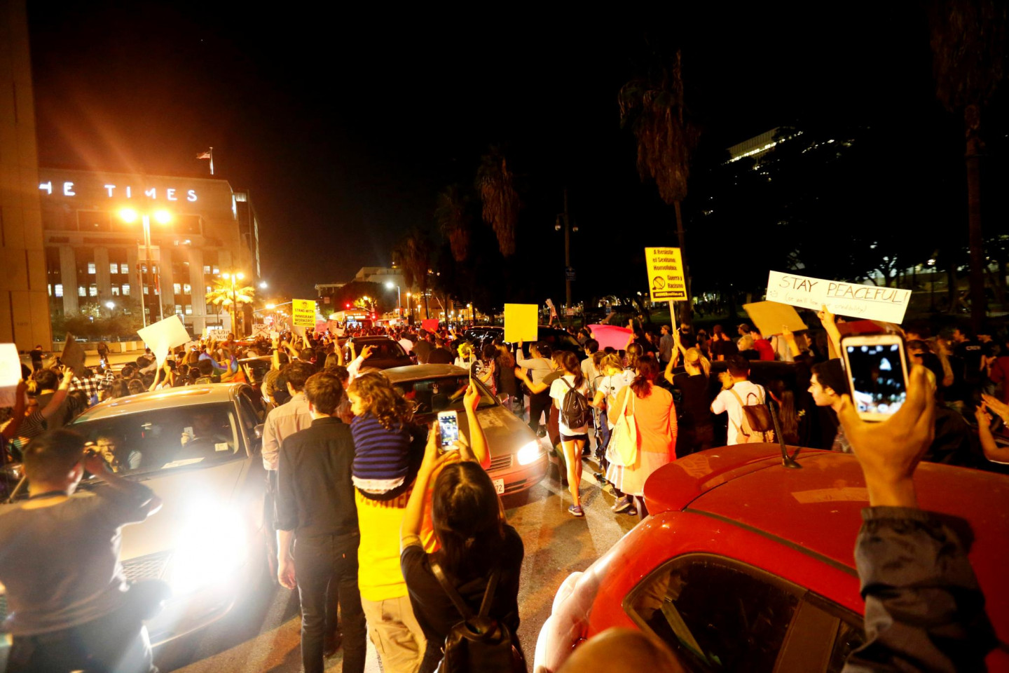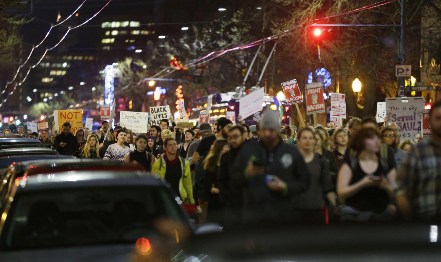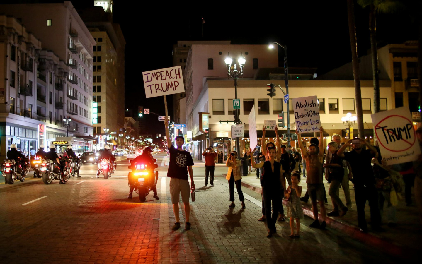 Vairākās ASV lielpilsētās, kā Ņujorkā, Sietlā, Losandželosā, Čikāgā un citās, tūkstošiem cilvēki ar plakātiem pagājušajā naktī izgāja ielās, lai paustu savu neapmierinātību ar ASV prezidenta vēlēšanām, kurās uzvarēja republikānis Donalds Tramps.