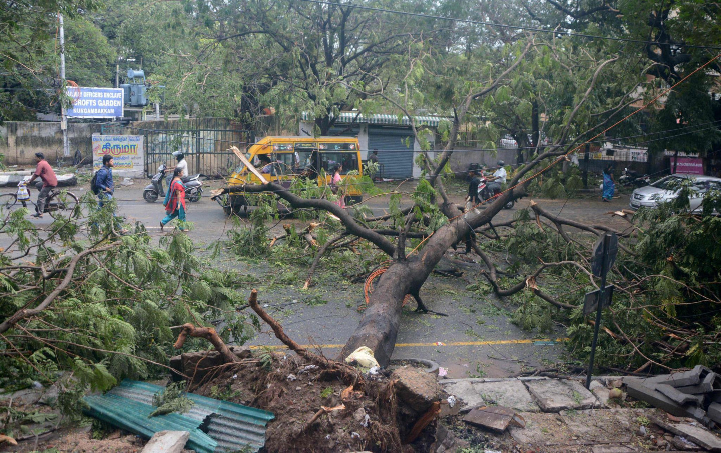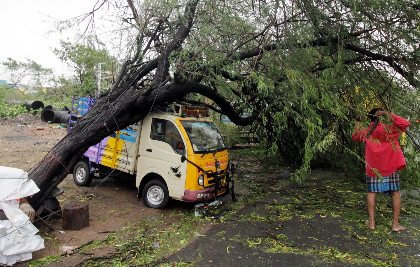 Čennaijas pilsētā Indijā vētra nodarījusi milzu postījumus. Milzīgi koki sagāzti, bloķējot satiksmi un sabojājot automašīnas. Bojā gājuši vismaz 10 cilvēki.