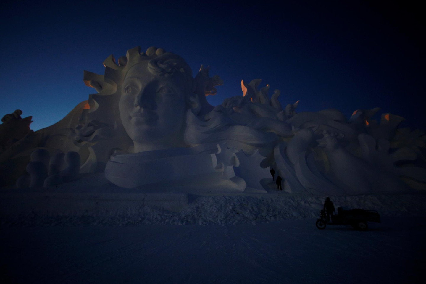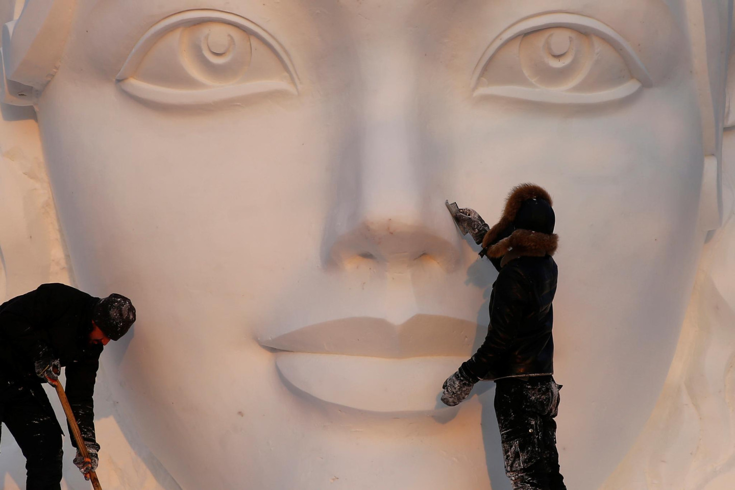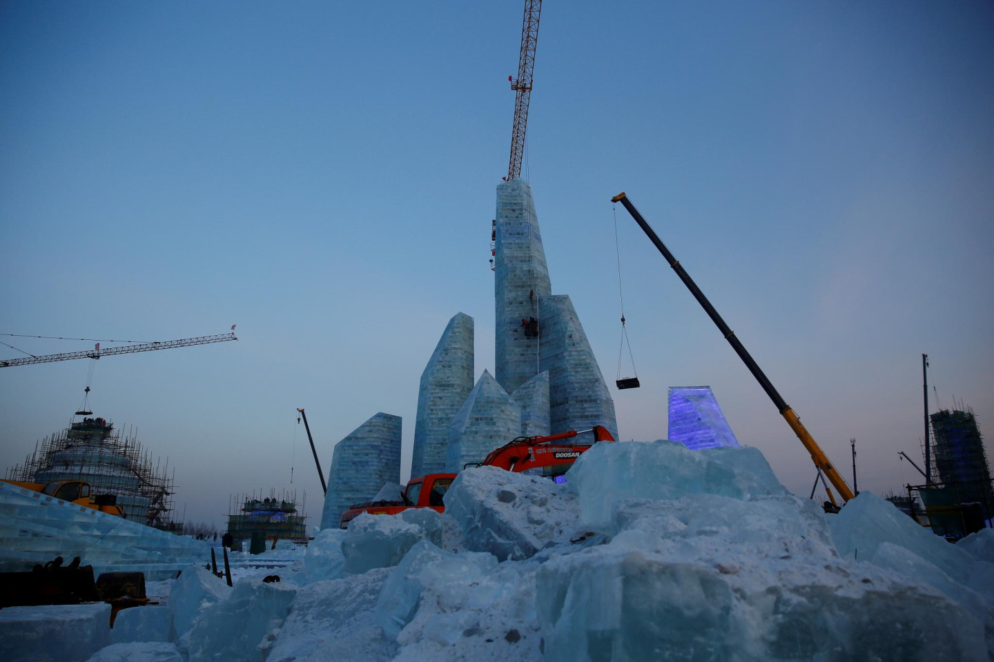 Ķīnas pilsētā Habinā notiek rosība - mākslinieki veido ledus un sniega skulptūras, kuras prezentēs Starptautiskajā sniega un ledus skulptūru festivālā.