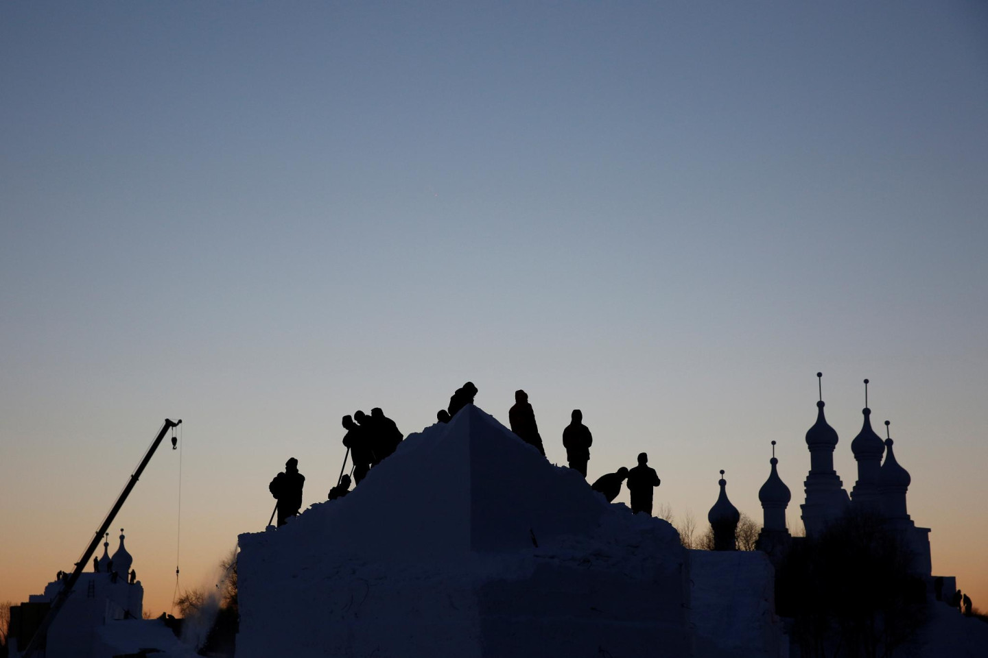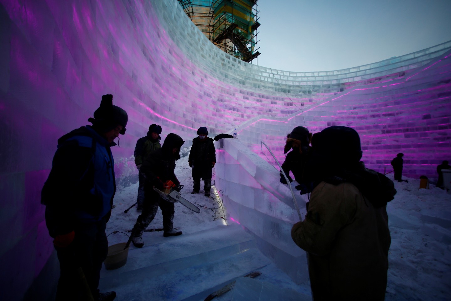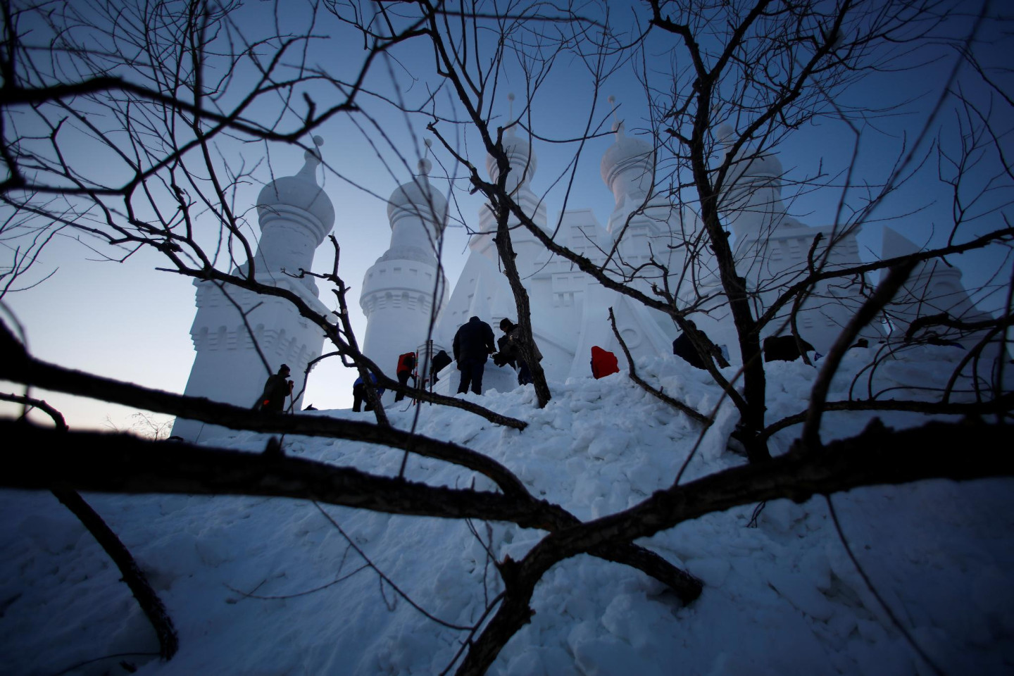 Ķīnas pilsētā Habinā notiek rosība - mākslinieki veido ledus un sniega skulptūras, kuras prezentēs Starptautiskajā sniega un ledus skulptūru festivālā.
