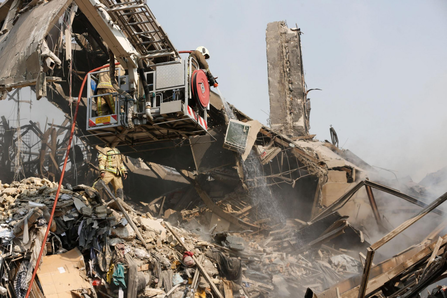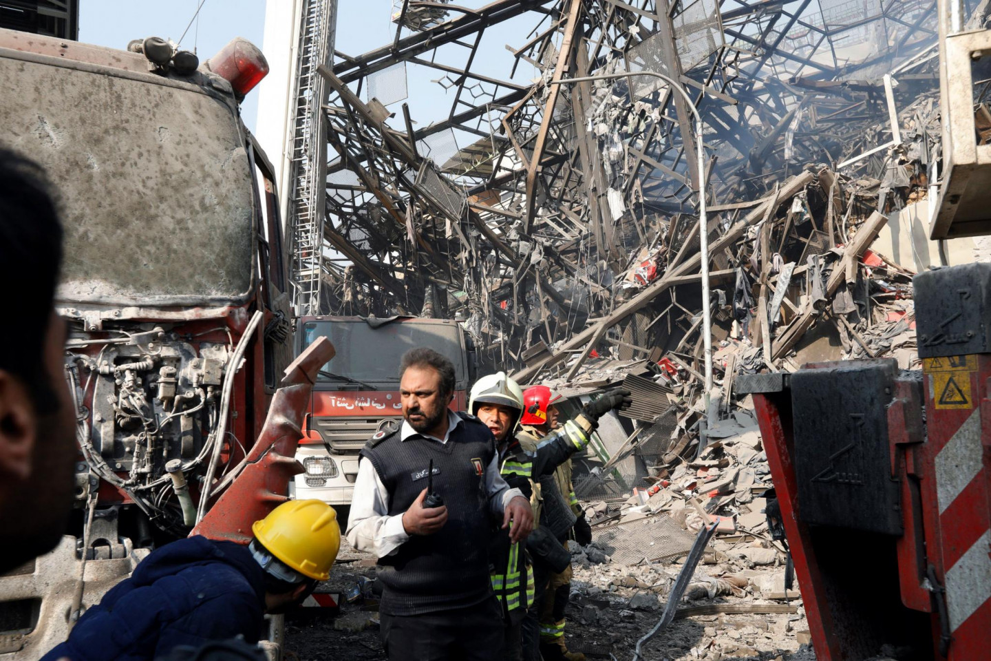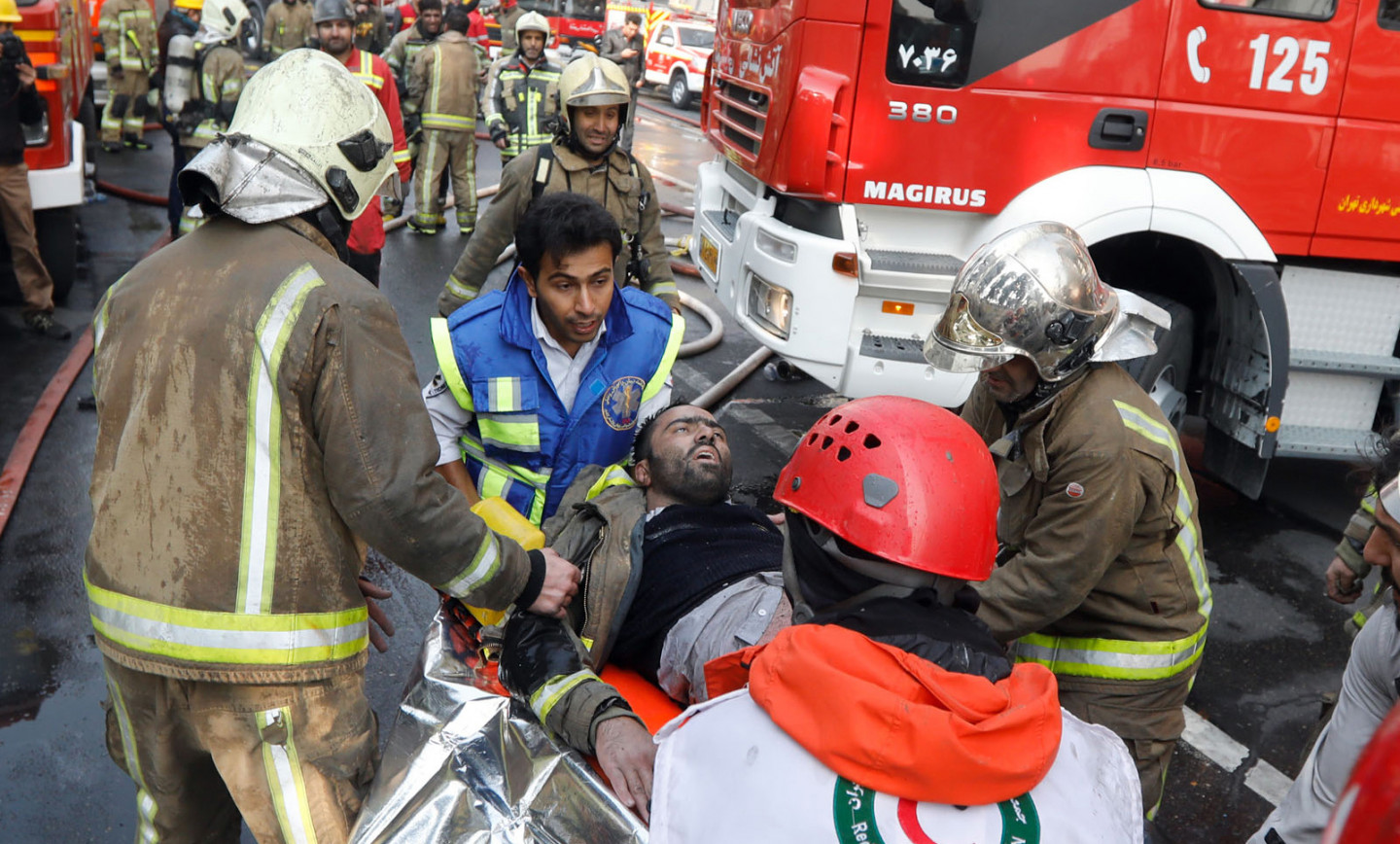 Kā jau ziņojām, ceturtdien Irānas galvaspilsētā Teherānā aizdegās 17. stāvu augstais tirdzniecības centrs. Liesmas dzēsa vairāk nekā 200 ugunsdzēsēju. Vienā mirklī ēka sagruva, aprokot vairākus ugunsdzēsējus. Tiek lēsts, ka zem drupām atrodas aptuveni 25 ugunsdzēsēji.