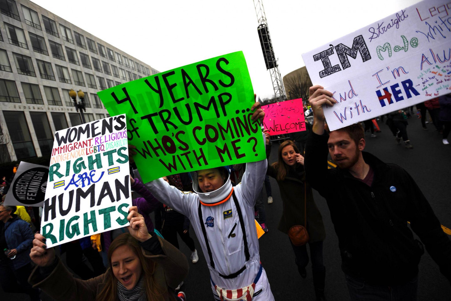 Vašingtonā un citās ASV pilsētās sestdien vairāk nekā divi miljoni cilvēku izgāja sieviešu gājienos, paužot savus iebildumus pret jaunā ASV prezidenta Donalda Trampa idejām dienu pēc viņa inaugurācijas, un līdzīgas demonstrācijas notika arī citu valstu lielpilsētās. Daudzas no demonstrantēm bija uzvilkušas sārtas cepures ar kaķa ausīm, lai izsmietu Trampu. Gājienos piedalījās arī neparasti daudz vīriešu. Gājieni notika Vašingtonā, Ņujorkā, Losandželosā un citās ASV pilsētās, kā arī Mehiko, Parīzē, Berlīnē, Londonā, Prāgā, Sidnejā un citur. Galvenais no tiem bija "Sieviešu gājiens uz Vašingtonu" ASV galvaspilsētā, kurā saskaņā ar organizatoru aplēsēm piedalījies viens miljons cilvēku. Šo skaitli nevarēja pārbaudīt pēc neatkarīgiem avotiem, tomēr tas acīmredzot bija lielāks nekā interesentu skaits piektdien Trampa inaugurācijas laikā. Pasākuma organizatori sākotnēji prognozēja 200 tūkstošu cilvēku piedalīšanos, bet negaidīti lielais dalībnieku skaits piepildīja gājiena maršrutu un gājiena vietā notika mītiņš, ziņo LETA.