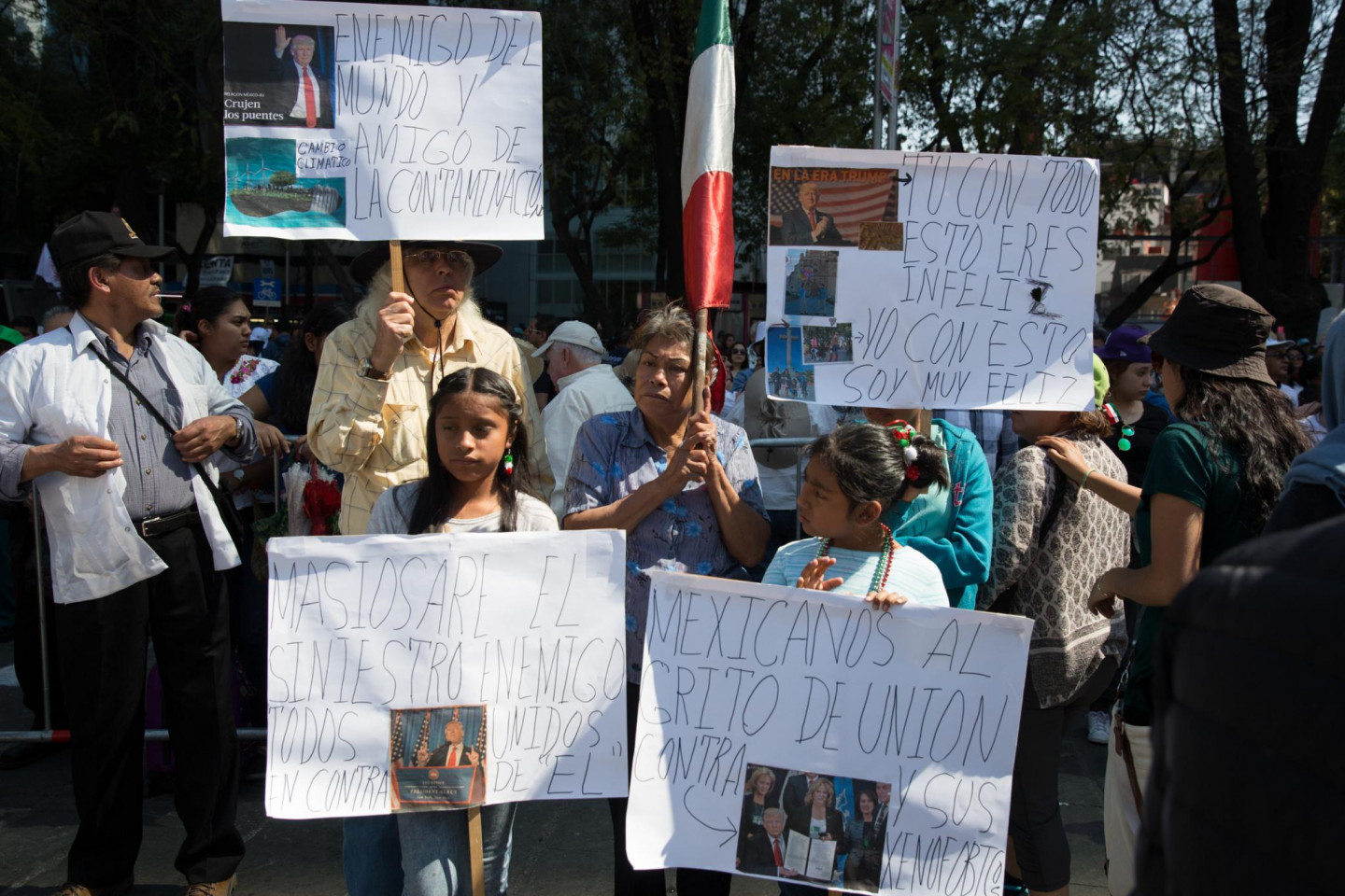Vairākās Meksikas pilsētās vairāki desmiti cilvēku izgāja ielās, lai paustu savas dusmas pret jaunā ASV prezidenta Donalda Trampa plāniem būvēt sienu starp Meksiku un ASV, kā arī nodomiem ierobežot imigrāciju.