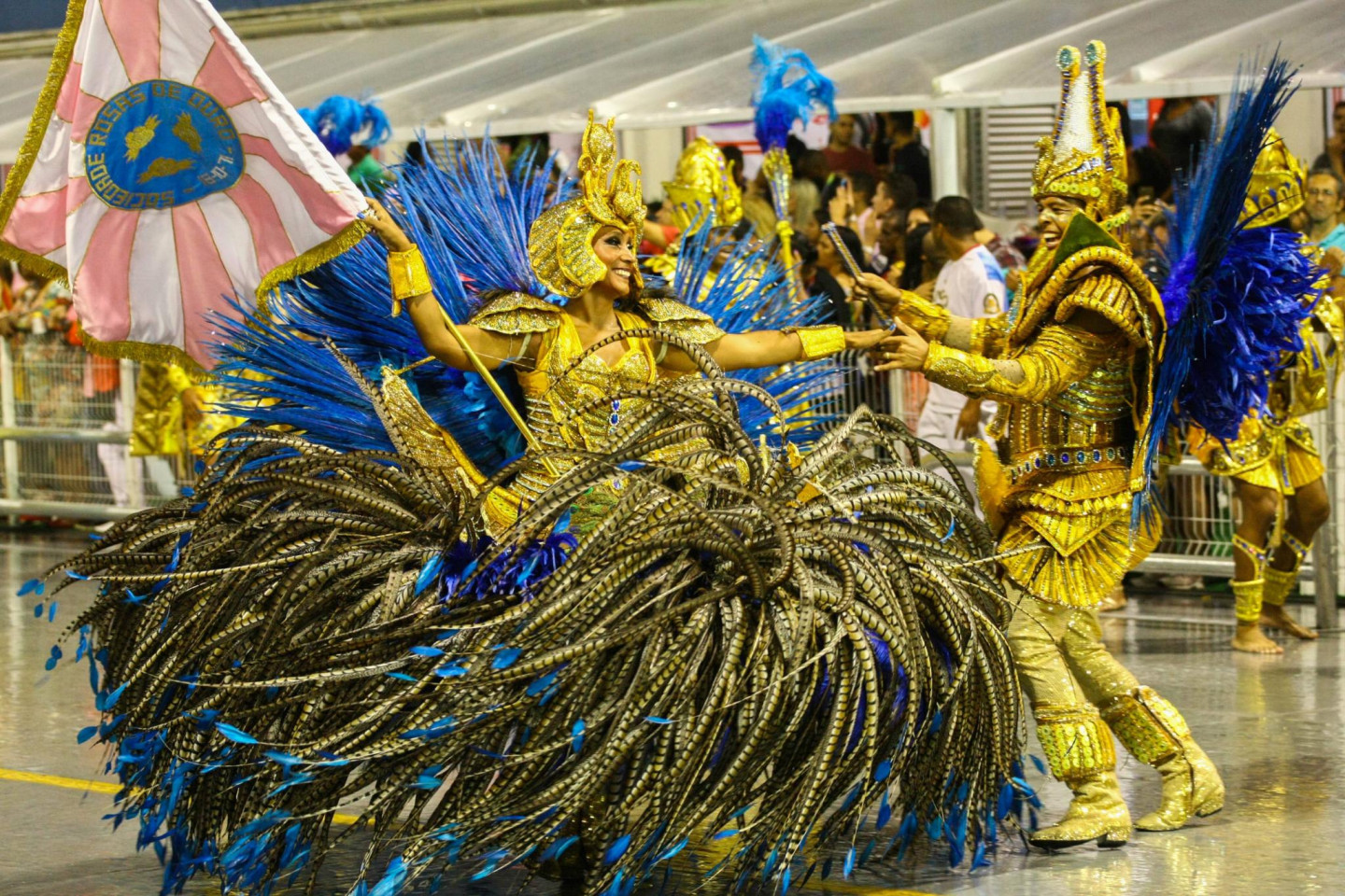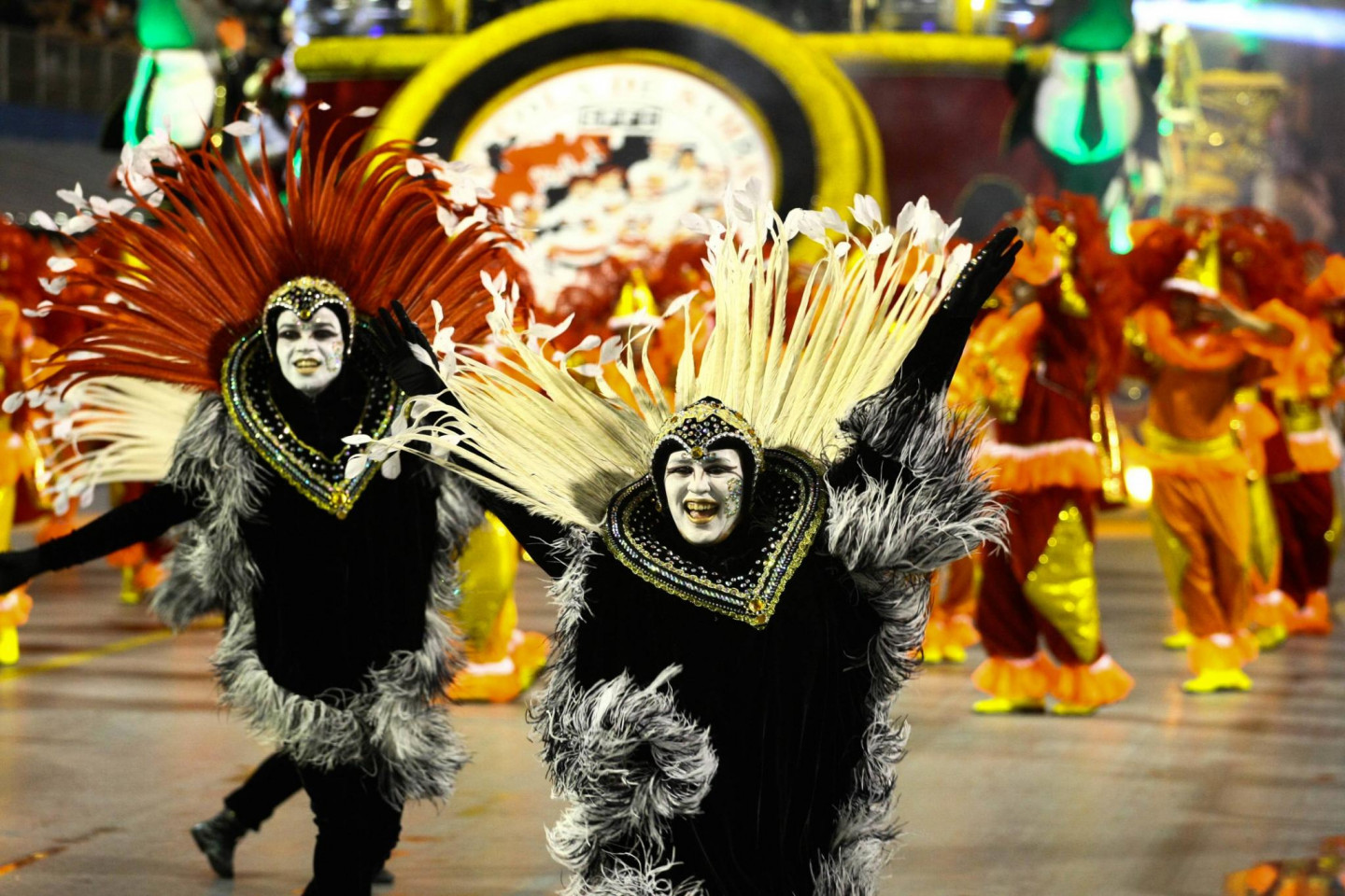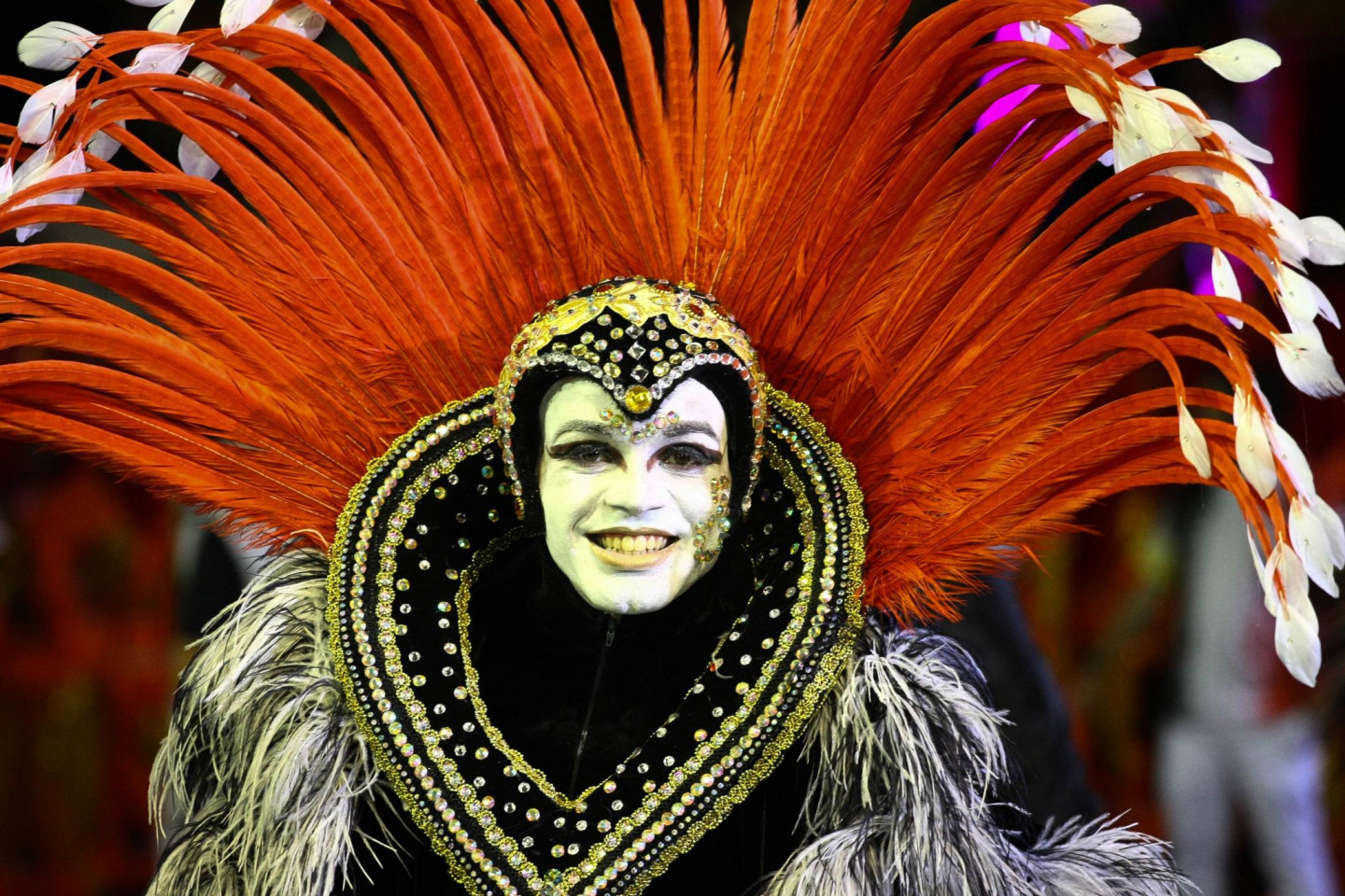 Šonedēļ Brazīlijas pilsētā Sanpaulu turpinās krāšņs karnevāls, kura dalībnieki pārsteidz ar drosmīgu tērpu izvēli.