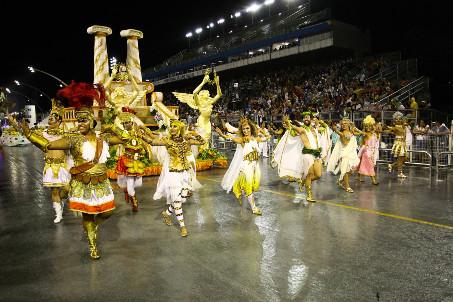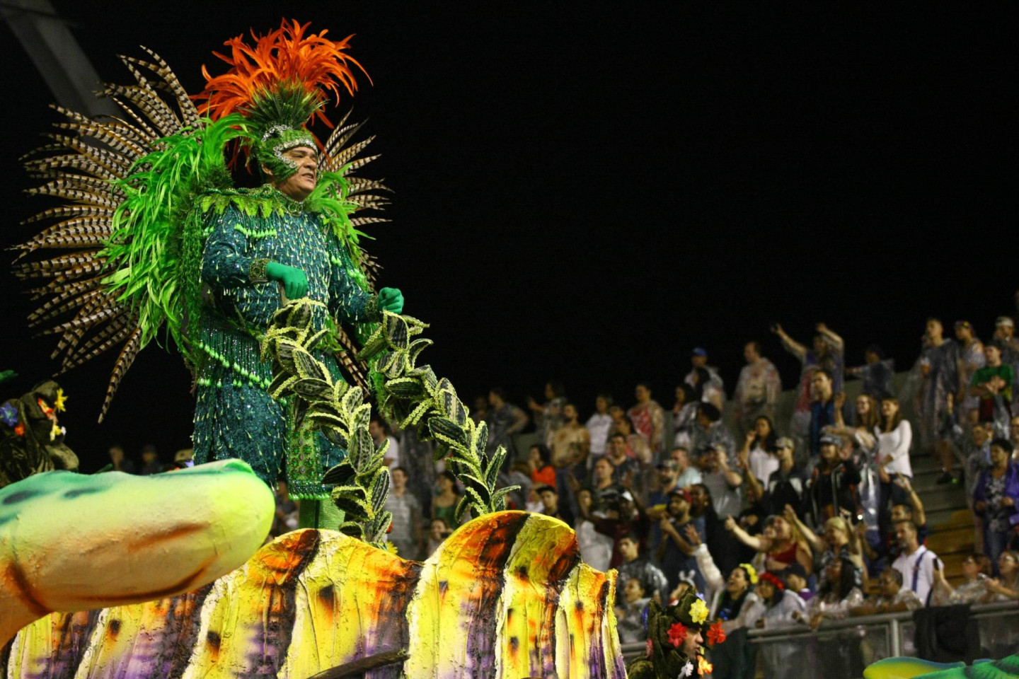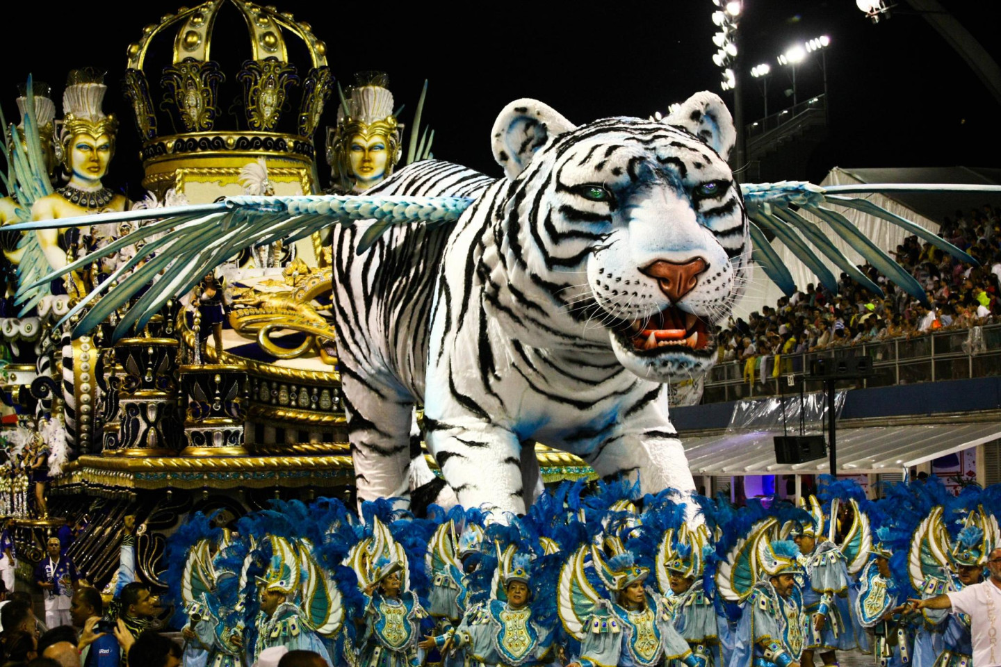 Šonedēļ Brazīlijas pilsētā Sanpaulu turpinās krāšņs karnevāls, kura dalībnieki pārsteidz ar drosmīgu tērpu izvēli.