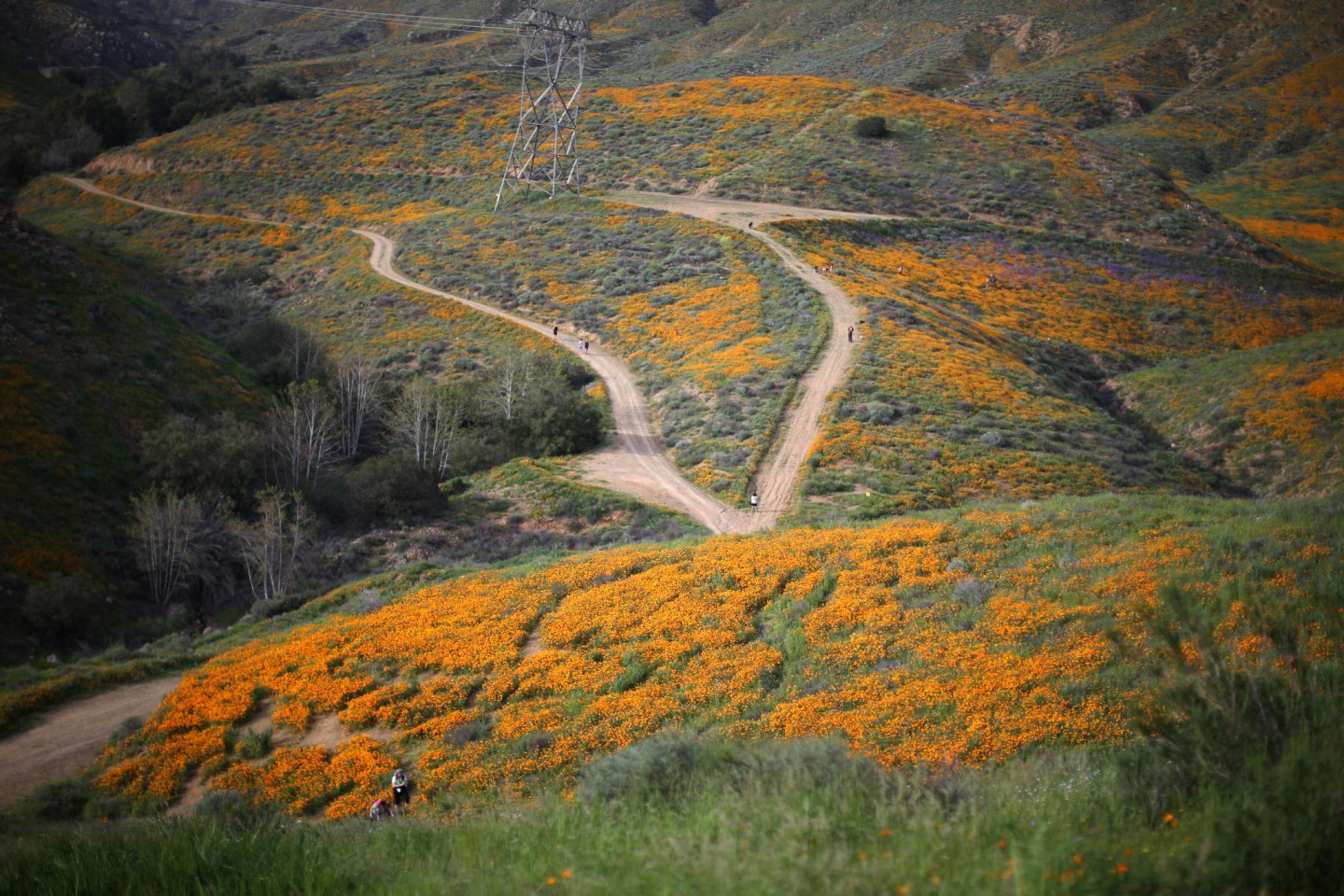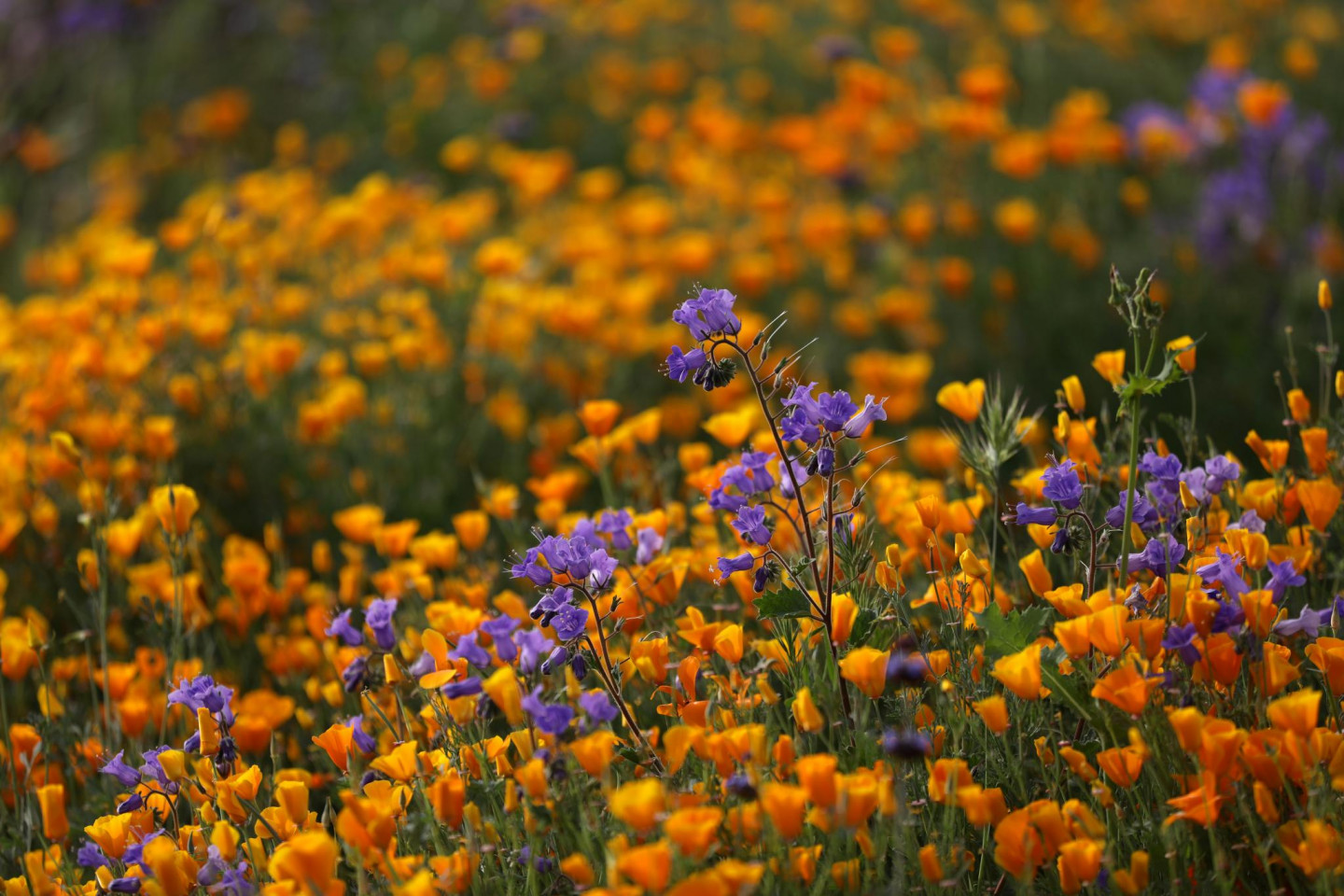 Sākoties pavasarim, simtiem krāsainu savvaļas ziedu uzziedējuši dabas parkā Kalifornijā.