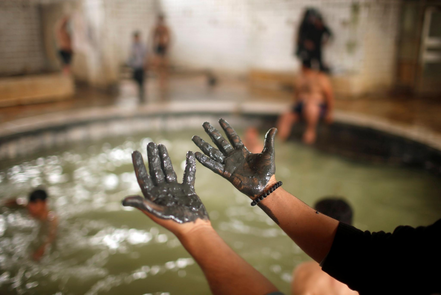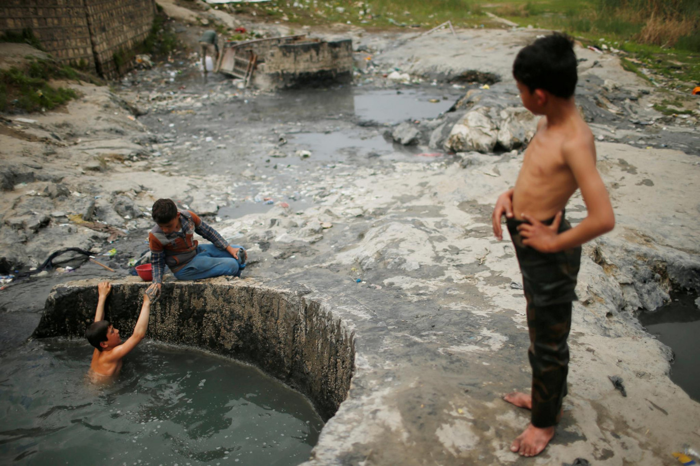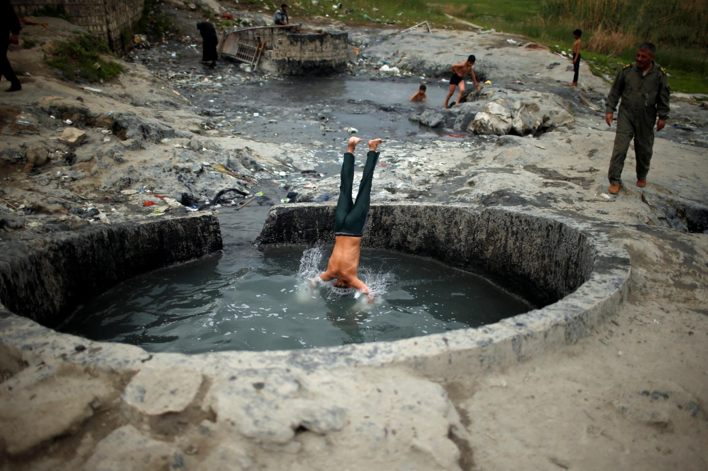 Irākieši vannojas sēra dīķos
