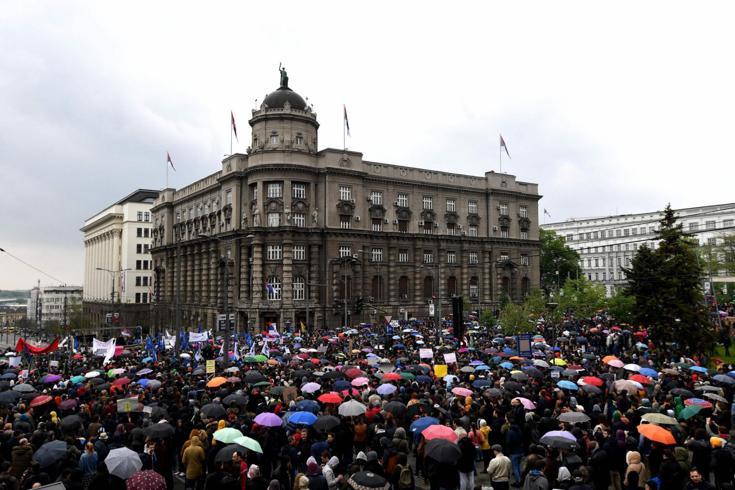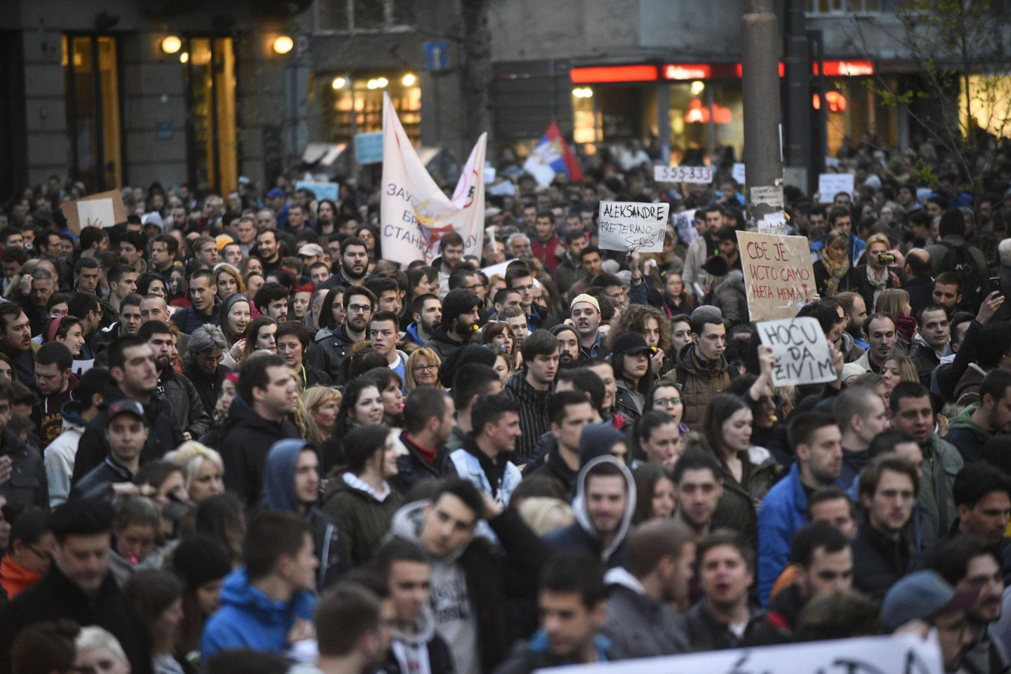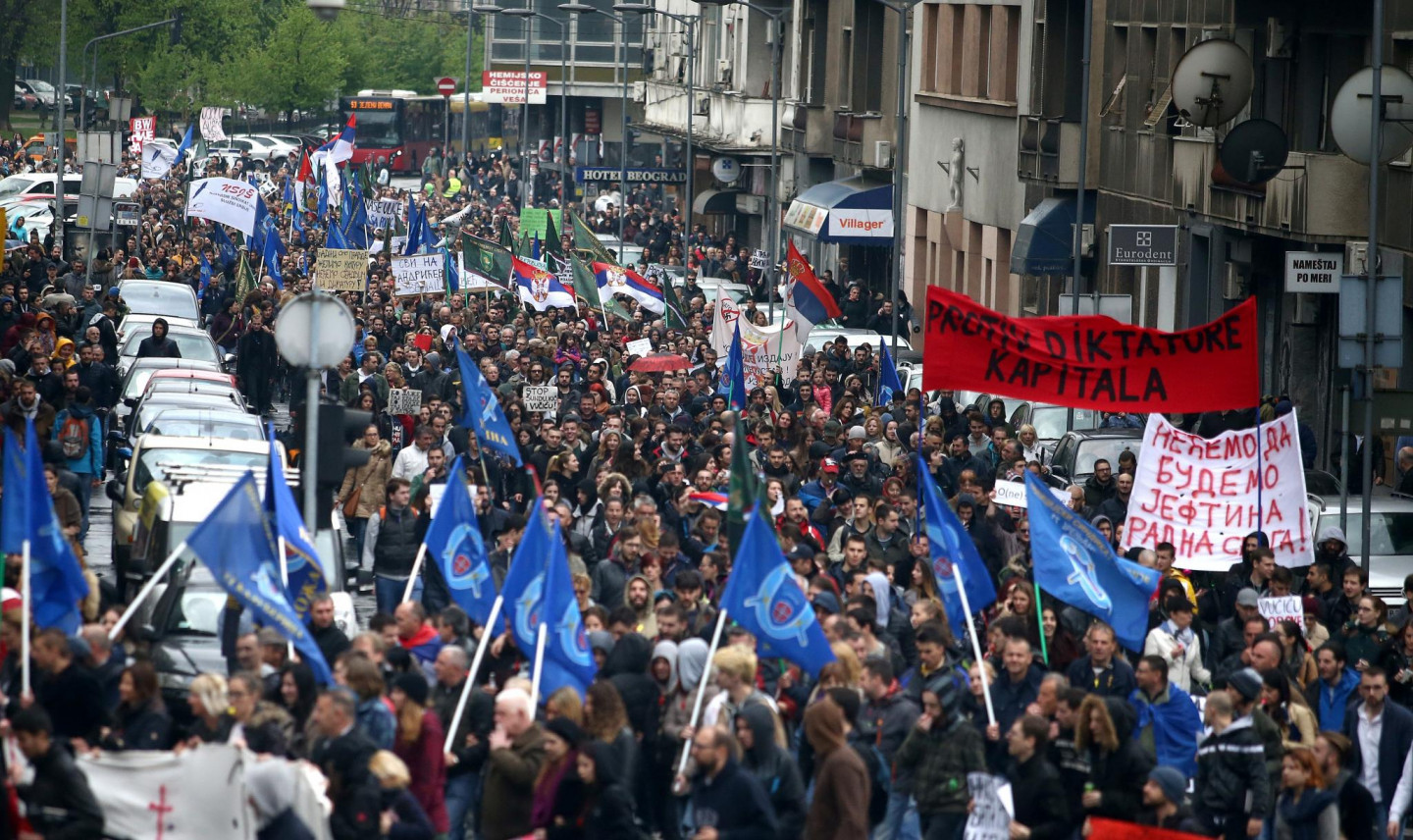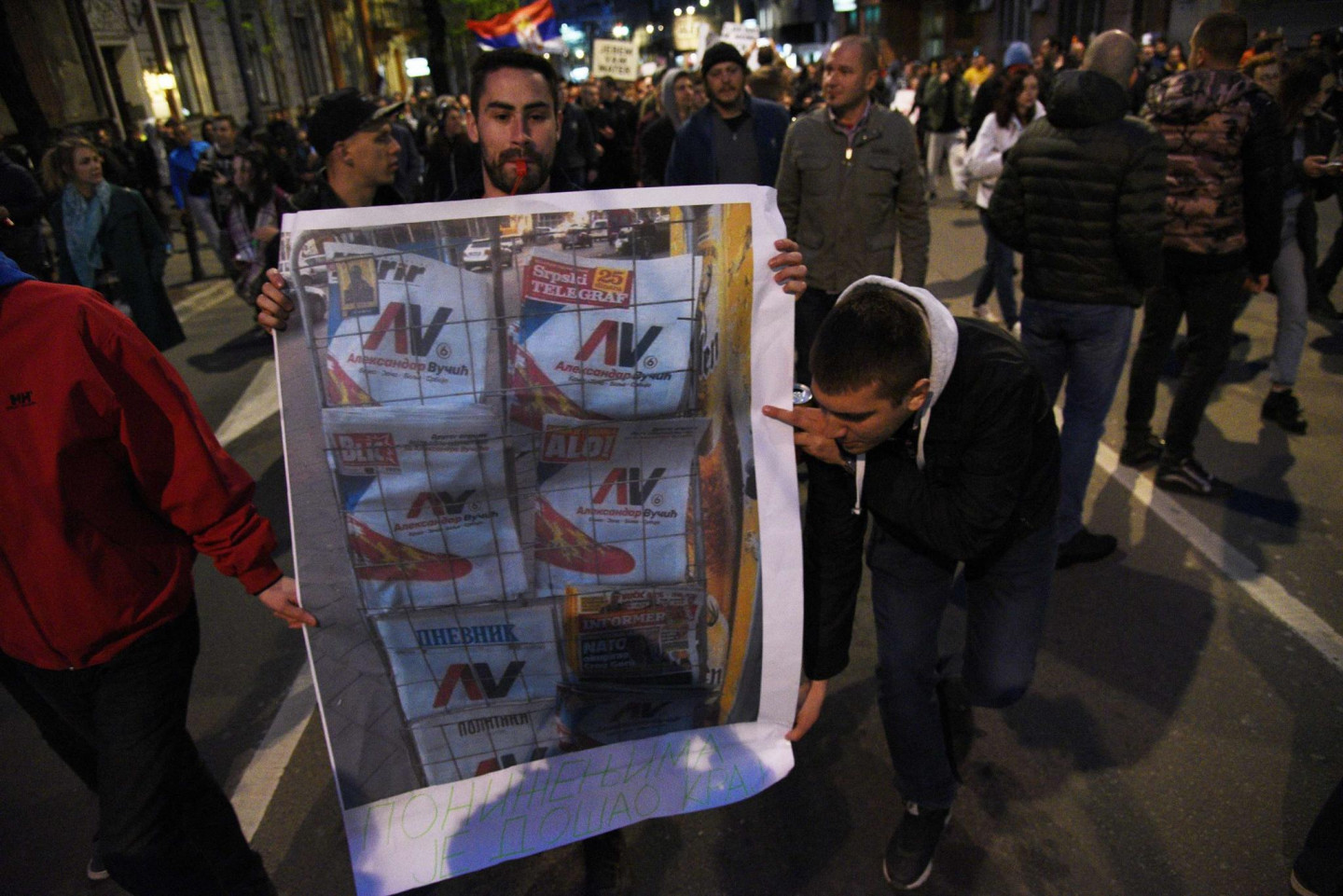 Belgradā sestdien ielās izgājuši vairāki tūkstoši cilvēku, turpinoties protestiem pret līdzšinējo premjerministru Aleksandru Vučiču, kurš pagājušajā nedēļā uzvarēja prezidenta vēlēšanās. Protesti pēc 2.aprīlī notikušajām vēlēšanām turpinās jau sesto dienu pēc kārtas. Opozīcija apgalvo, ka vēlēšanās pieļauts milzums pārkāpumu, tostarp mediju ietekmēšana, vēlētāju iebiedēšana un balsu pirkšana. Demonstrantiem Belgradā pievienojušies arī vairāki simti policistu un karavīru, kas pauž neapmierinātību ar zemajām algām un zemo dzīves līmeni. Kā ziņots, Vučičs jau pirmajā vēlēšanu kārtā ieguva 55% balsu, un tādējādi atkrita vajadzība rīkot otro balsošanas kārtu.