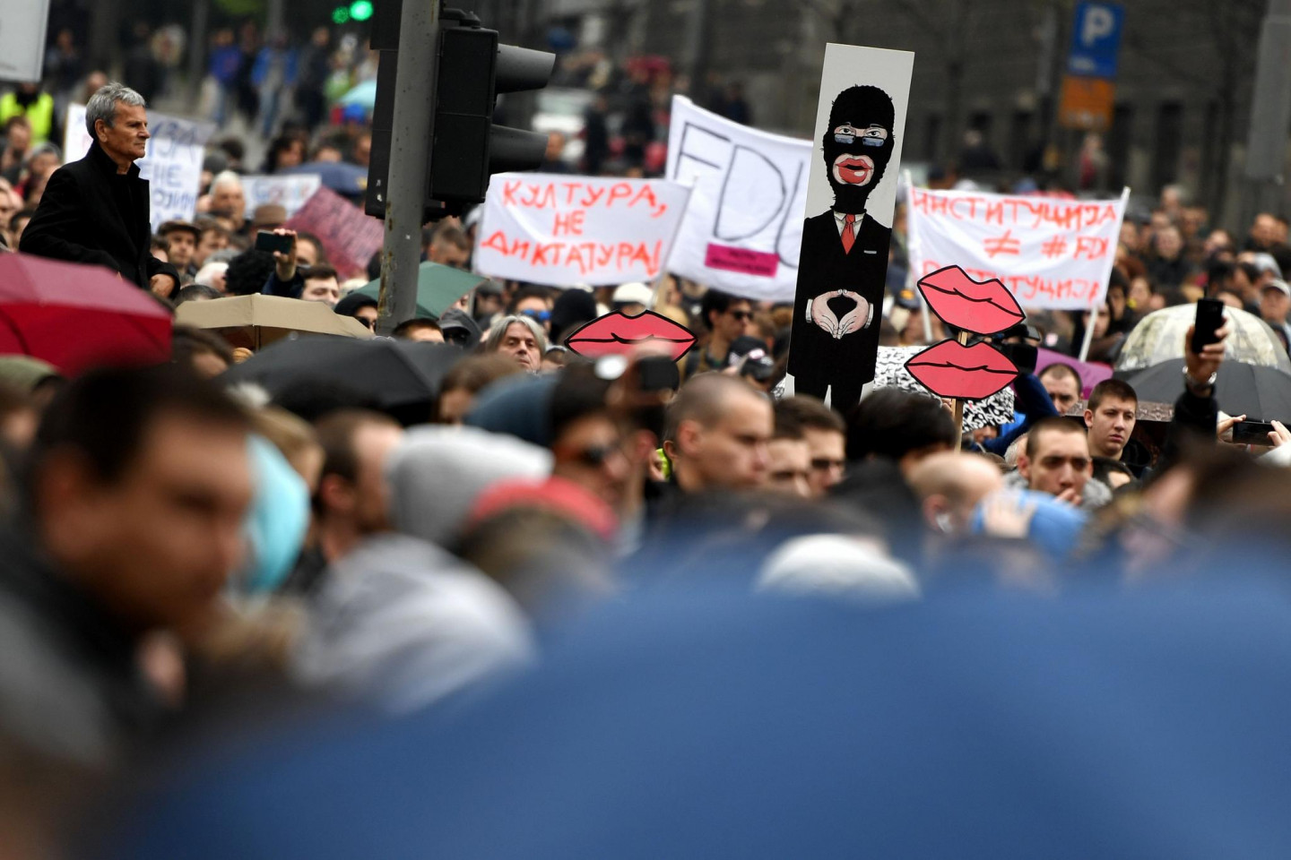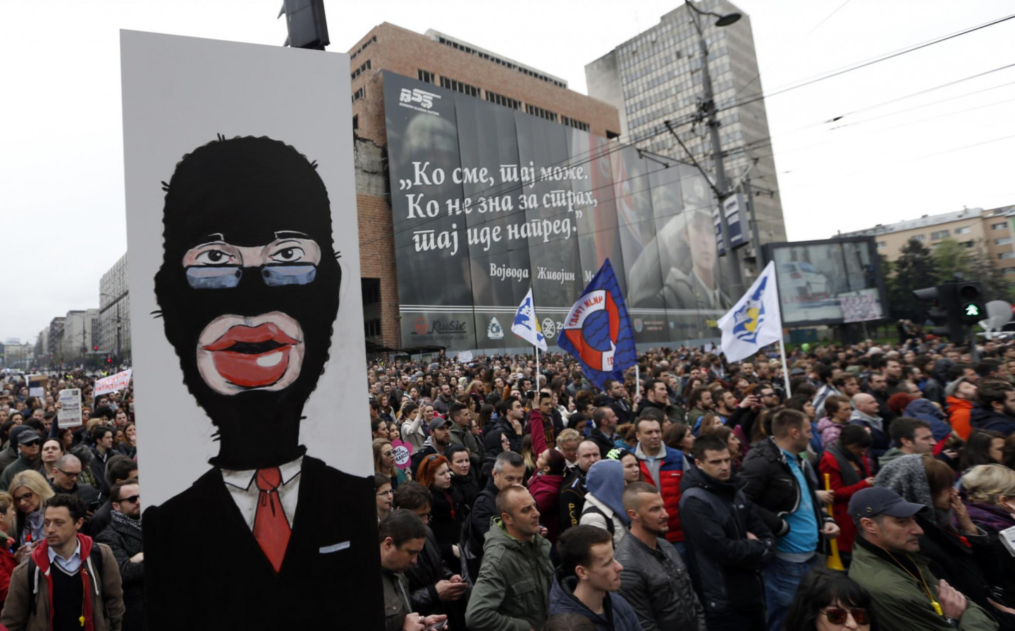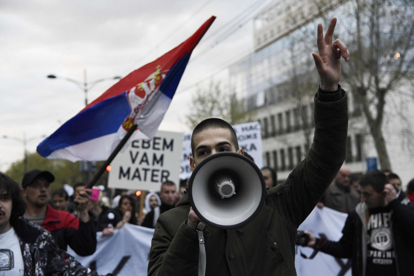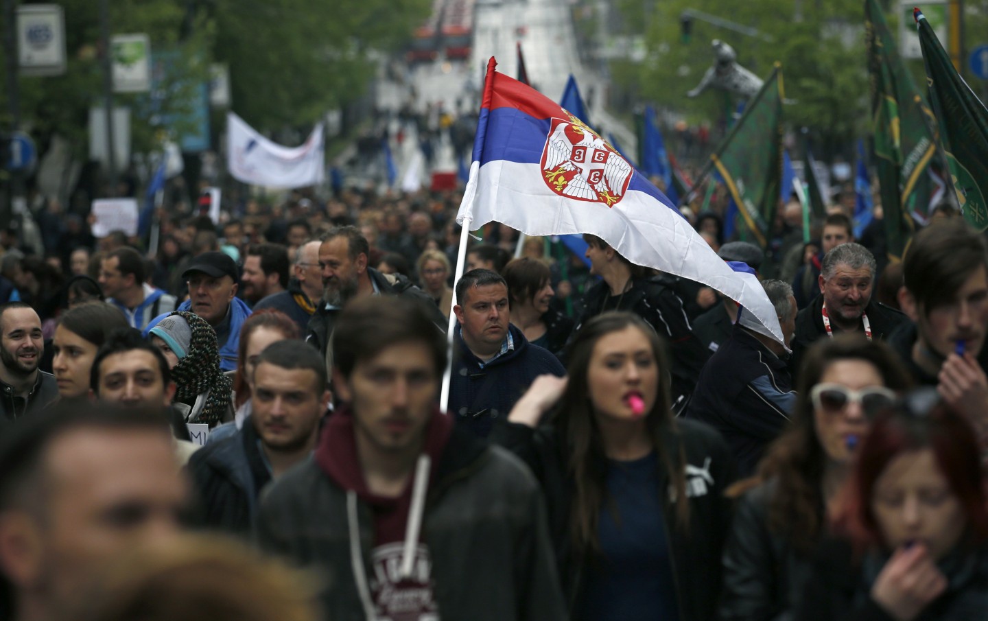 Belgradā sestdien ielās izgājuši vairāki tūkstoši cilvēku, turpinoties protestiem pret līdzšinējo premjerministru Aleksandru Vučiču, kurš pagājušajā nedēļā uzvarēja prezidenta vēlēšanās. Protesti pēc 2.aprīlī notikušajām vēlēšanām turpinās jau sesto dienu pēc kārtas. Opozīcija apgalvo, ka vēlēšanās pieļauts milzums pārkāpumu, tostarp mediju ietekmēšana, vēlētāju iebiedēšana un balsu pirkšana. Demonstrantiem Belgradā pievienojušies arī vairāki simti policistu un karavīru, kas pauž neapmierinātību ar zemajām algām un zemo dzīves līmeni. Kā ziņots, Vučičs jau pirmajā vēlēšanu kārtā ieguva 55% balsu, un tādējādi atkrita vajadzība rīkot otro balsošanas kārtu.