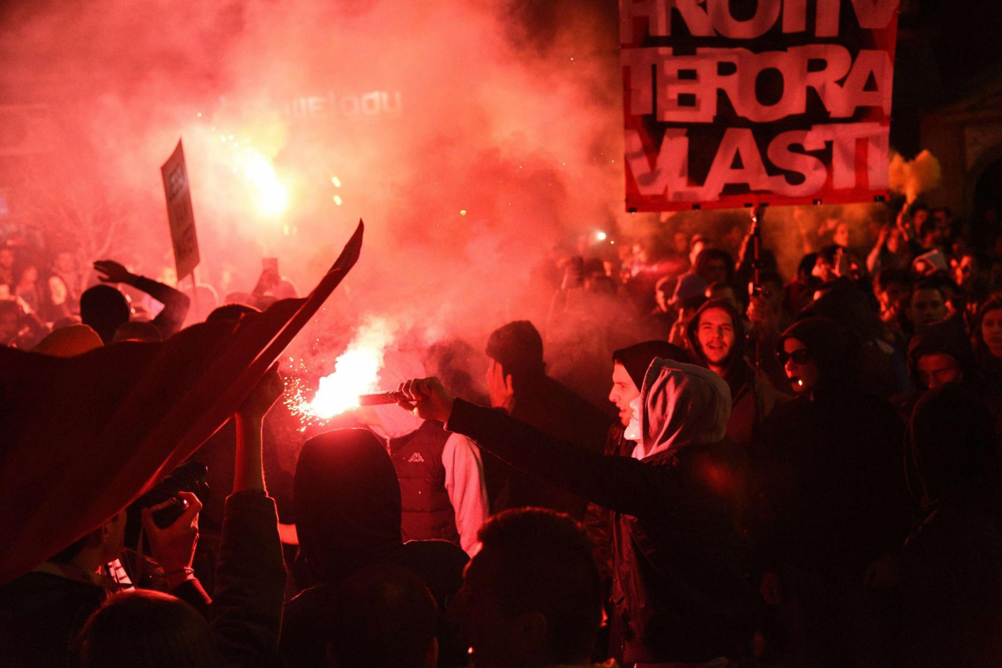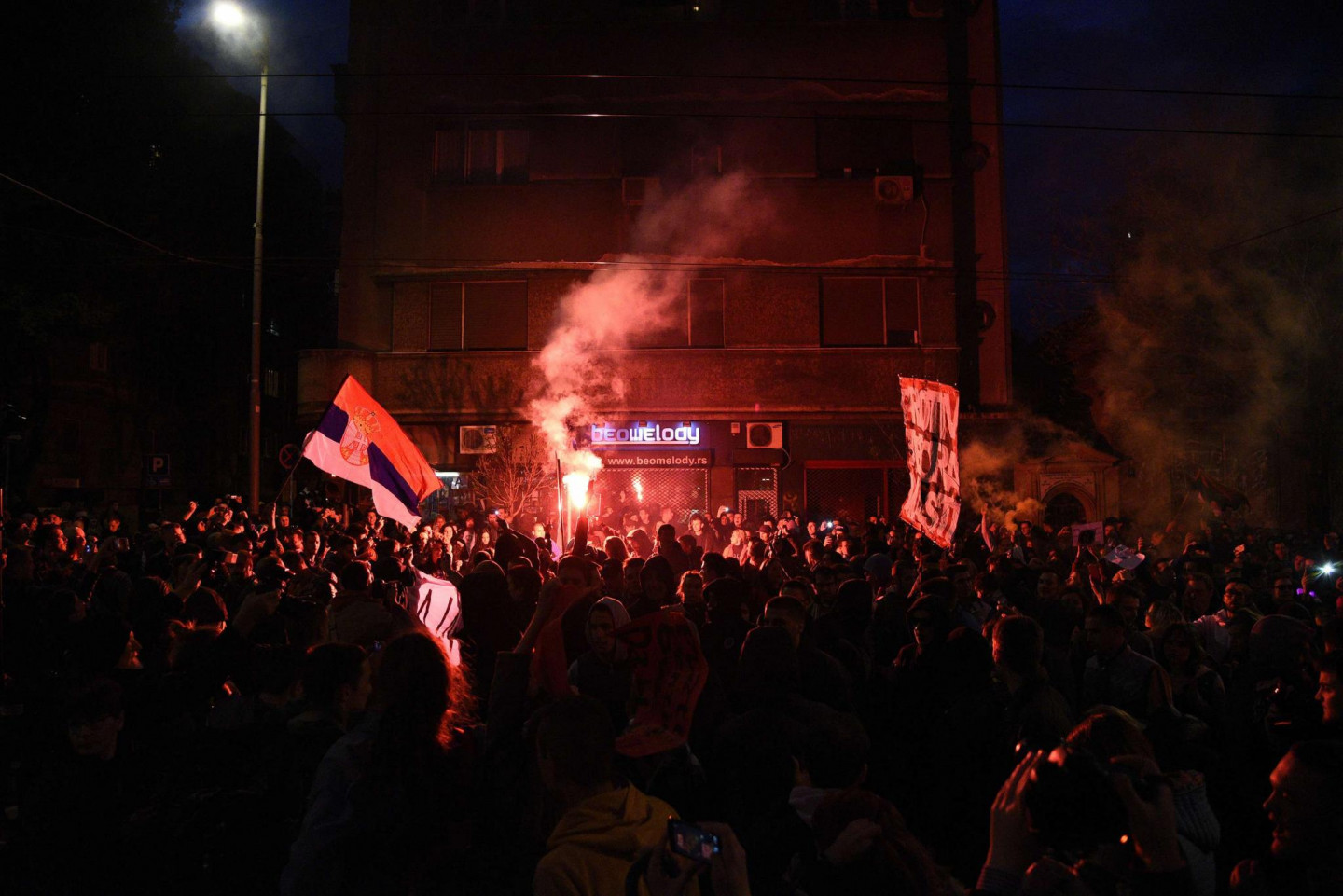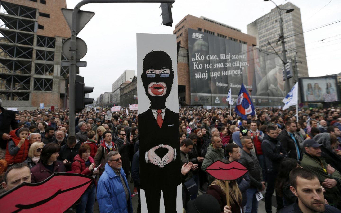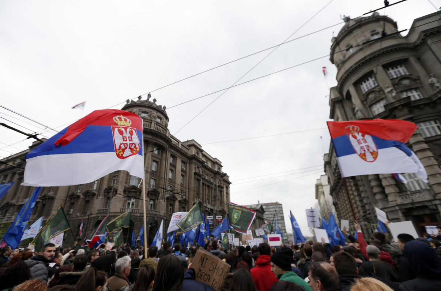 Belgradā sestdien ielās izgājuši vairāki tūkstoši cilvēku, turpinoties protestiem pret līdzšinējo premjerministru Aleksandru Vučiču, kurš pagājušajā nedēļā uzvarēja prezidenta vēlēšanās. Protesti pēc 2.aprīlī notikušajām vēlēšanām turpinās jau sesto dienu pēc kārtas. Opozīcija apgalvo, ka vēlēšanās pieļauts milzums pārkāpumu, tostarp mediju ietekmēšana, vēlētāju iebiedēšana un balsu pirkšana. Demonstrantiem Belgradā pievienojušies arī vairāki simti policistu un karavīru, kas pauž neapmierinātību ar zemajām algām un zemo dzīves līmeni. Kā ziņots, Vučičs jau pirmajā vēlēšanu kārtā ieguva 55% balsu, un tādējādi atkrita vajadzība rīkot otro balsošanas kārtu.