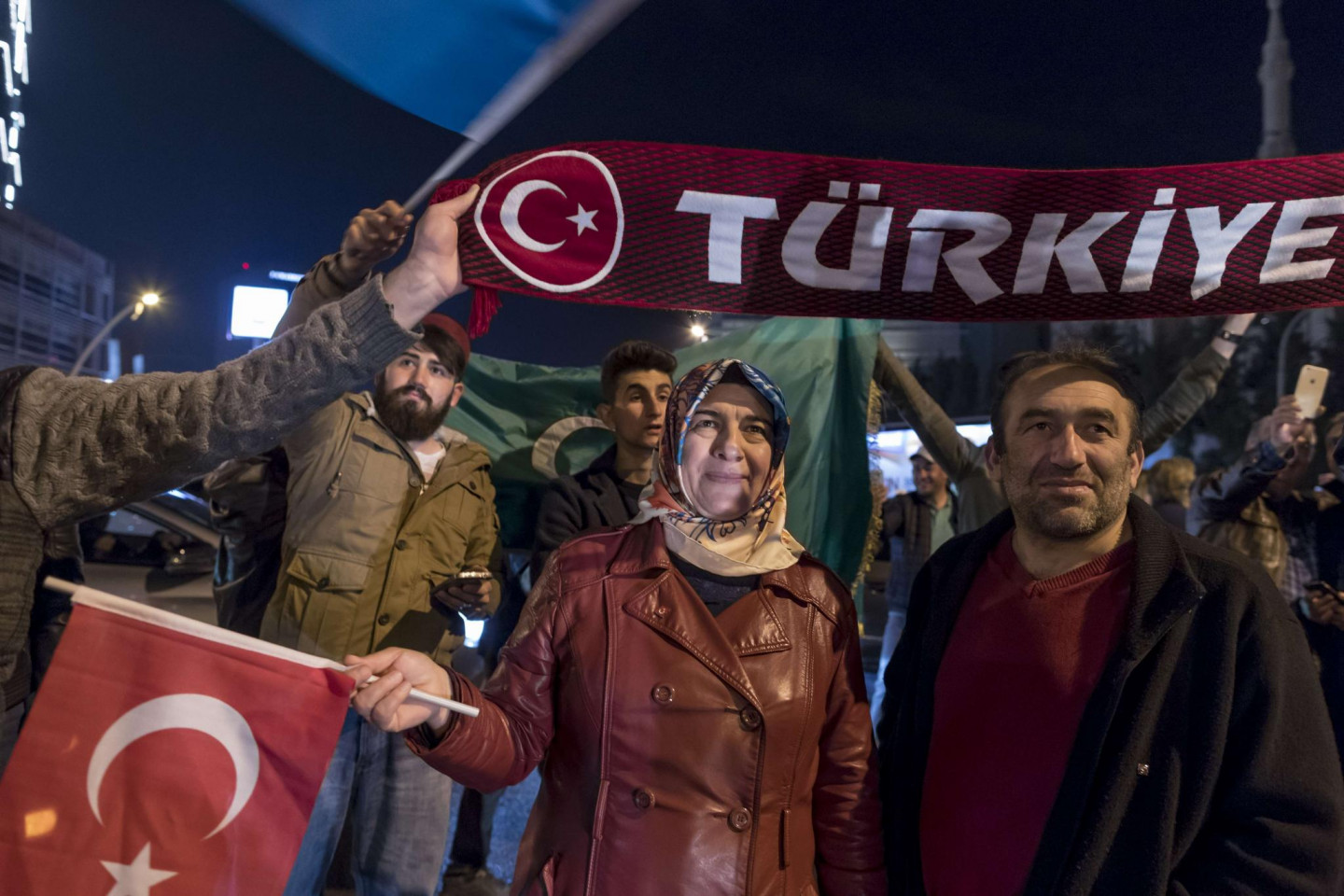 Turcijas Centrālā vēlēšanu komisija apstiprinājusi, ka atbilstoši provizoriskajiem rezultātiem svētdien notikušajā referendumā uzvarējuši prezidenta Redžepa Tajipa Erdogana pilnvaru paplašināšanas atbalstītāji. Vēlā svētdienas vakarā prezidenta atbalstītāji ielās iznāca ar valsts karogiem, lai svinētu referenduma iznākumu, savukārt citi ar skaļiem saukļiem ir neapmierināti ar prezidenta pilnvaru pastiprināšanos.