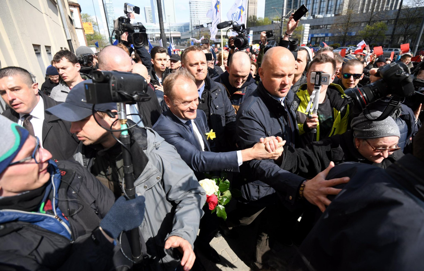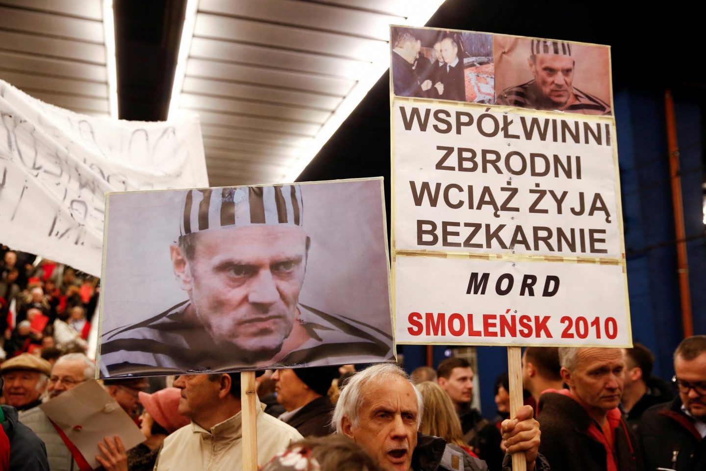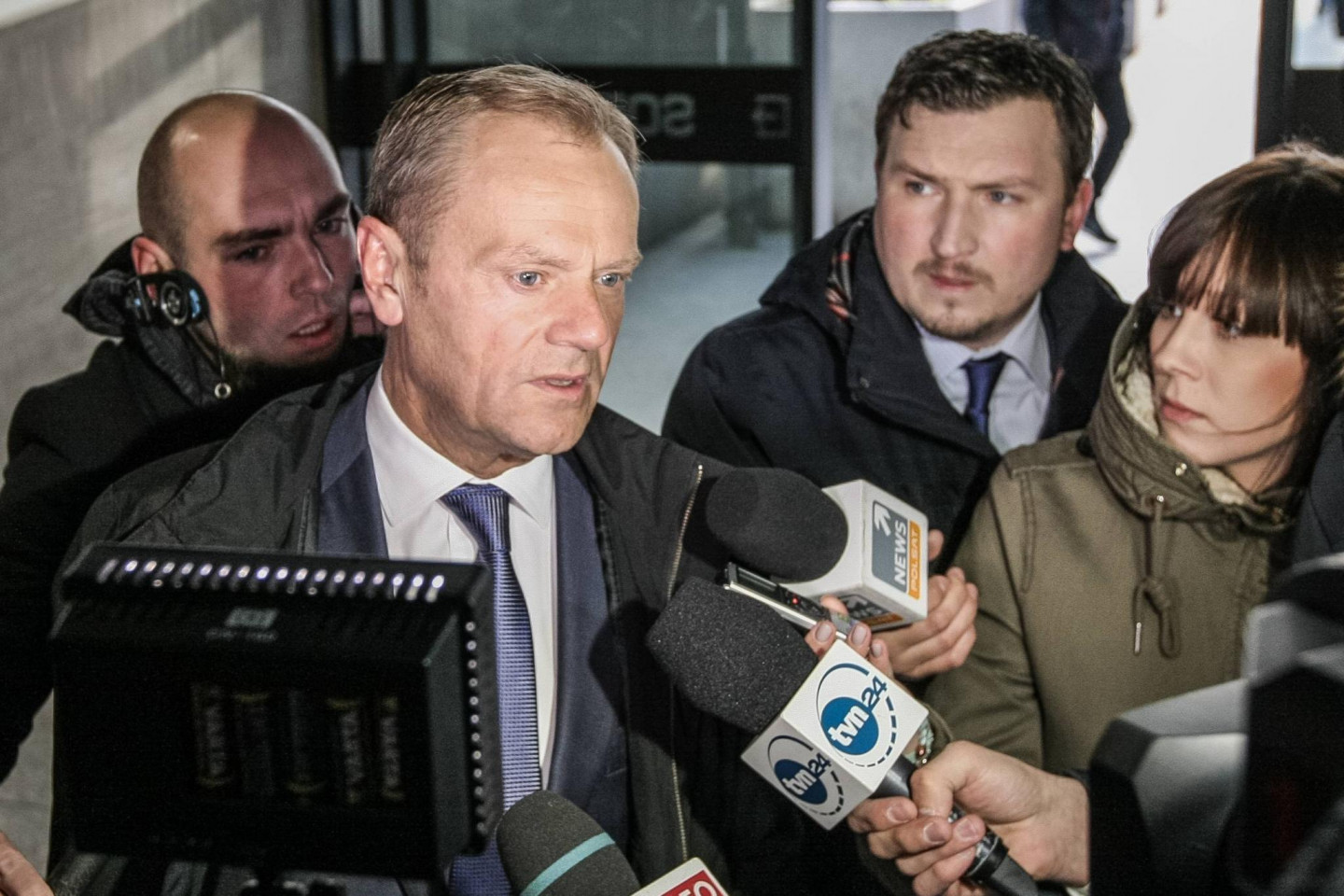 Dzelzceļa stacijā Varšavā trešdien sapulcējušies simtiem cilvēku, lai sagaidītu Eiropadomes prezidentu Donaldu Tusku, kuram būs jāliecina izmeklēšanā par vienošanos, kas tika noslēgta ar Krievijas Federālo drošības dienestu (FDD) neilgi pēc 2010.gada aviokatastrofas Smoļenskā, kurā gāja bojā toreizējais Polijas prezidents Lehs Kačiņskis un desmitiem citu augsta ranga Polijas politiķu. Tusks tolaik bija Polijas premjerministrs. Mediji vēsta, ka uz perona sapulcējušies gan Tuska atbalstītāji, kuriem rokās ir Eiropas Savienības (ES) karogi, gan pretinieki, un atmosfēra ir saspringta. Polijas prokuratūra otrdien paziņoja, ka saņēmusi informāciju no Polijas militārās pretizlūkošanas (SKW) par darbībām saistībā ar prezidenta Leha Kačiņska traģiskā avioreisa organizēšanu.