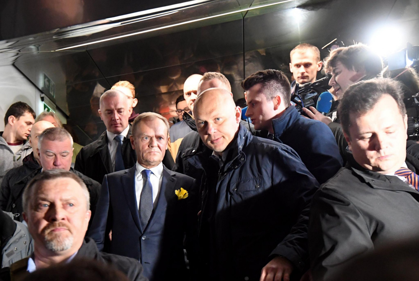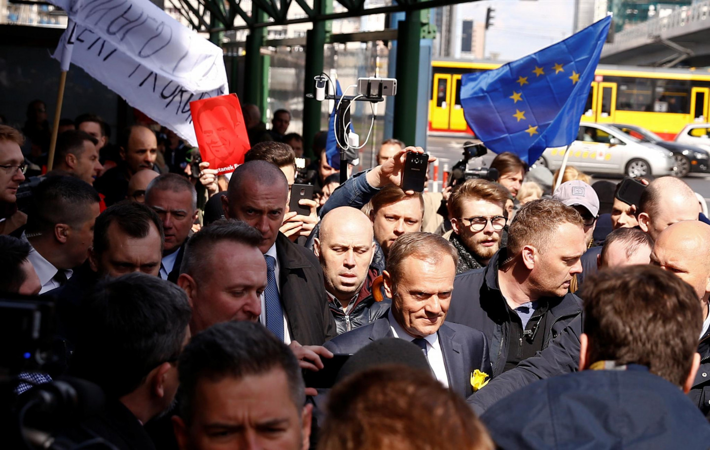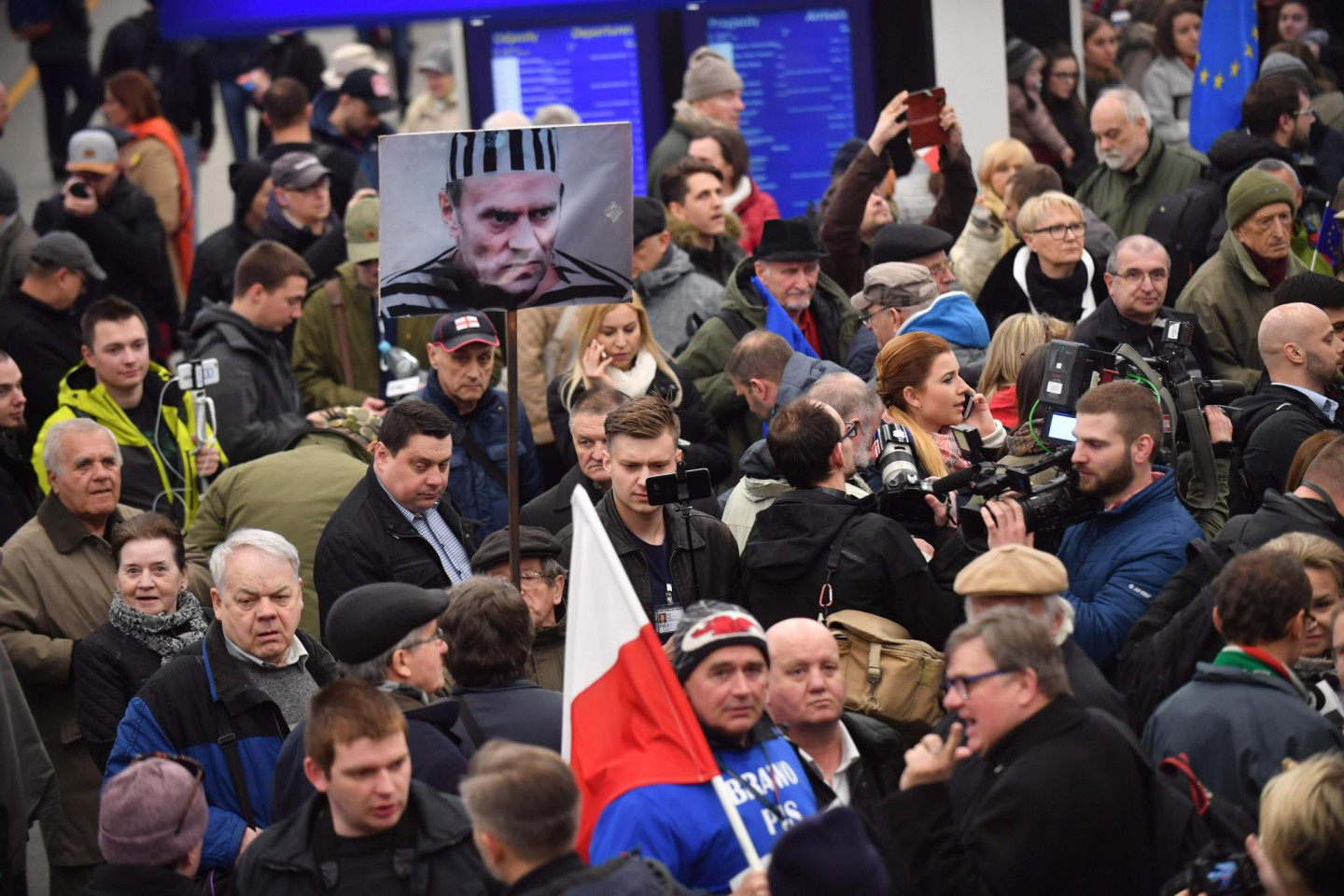 Dzelzceļa stacijā Varšavā trešdien sapulcējušies simtiem cilvēku, lai sagaidītu Eiropadomes prezidentu Donaldu Tusku, kuram būs jāliecina izmeklēšanā par vienošanos, kas tika noslēgta ar Krievijas Federālo drošības dienestu (FDD) neilgi pēc 2010.gada aviokatastrofas Smoļenskā, kurā gāja bojā toreizējais Polijas prezidents Lehs Kačiņskis un desmitiem citu augsta ranga Polijas politiķu. Tusks tolaik bija Polijas premjerministrs. Mediji vēsta, ka uz perona sapulcējušies gan Tuska atbalstītāji, kuriem rokās ir Eiropas Savienības (ES) karogi, gan pretinieki, un atmosfēra ir saspringta. Polijas prokuratūra otrdien paziņoja, ka saņēmusi informāciju no Polijas militārās pretizlūkošanas (SKW) par darbībām saistībā ar prezidenta Leha Kačiņska traģiskā avioreisa organizēšanu.