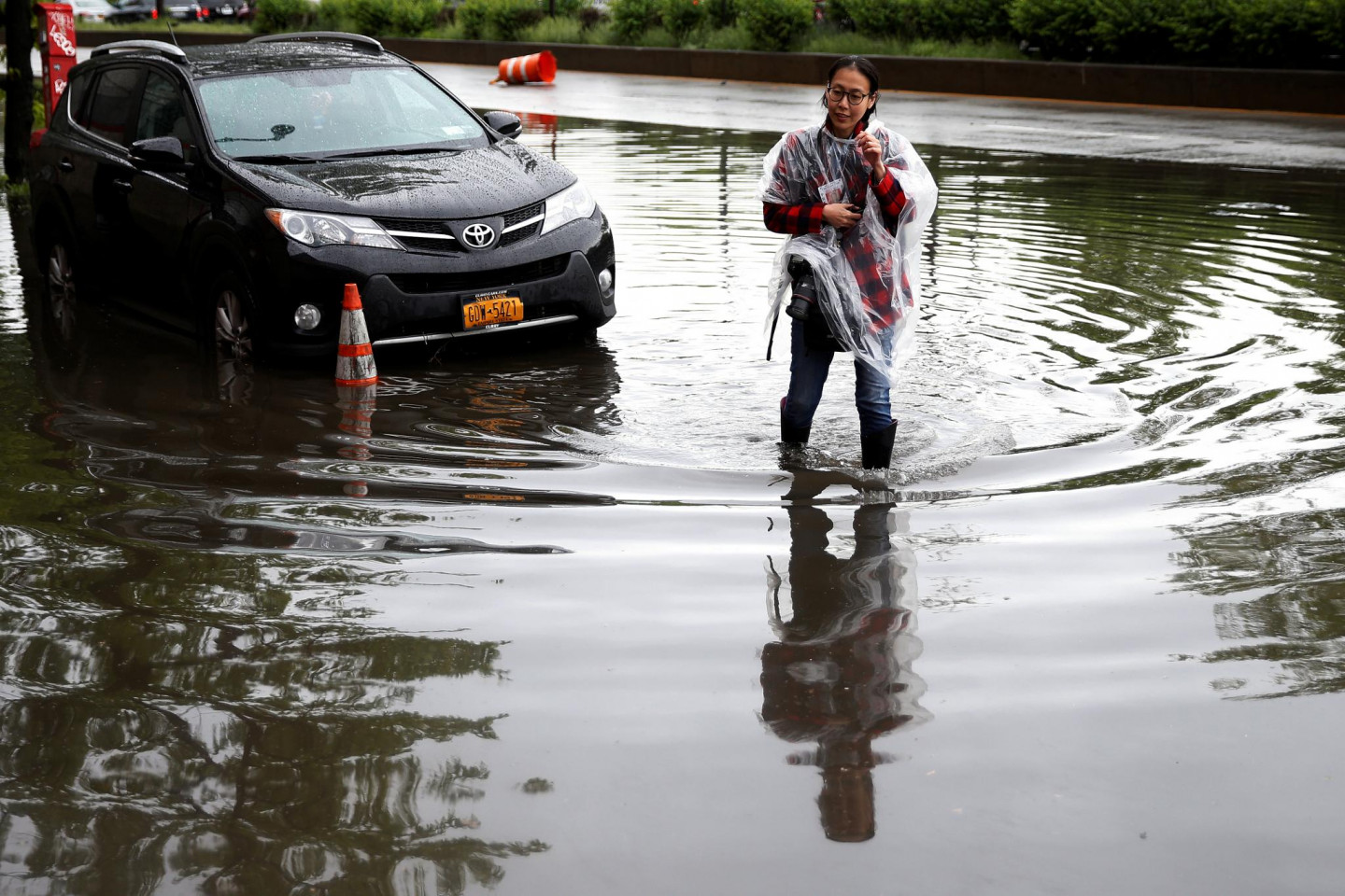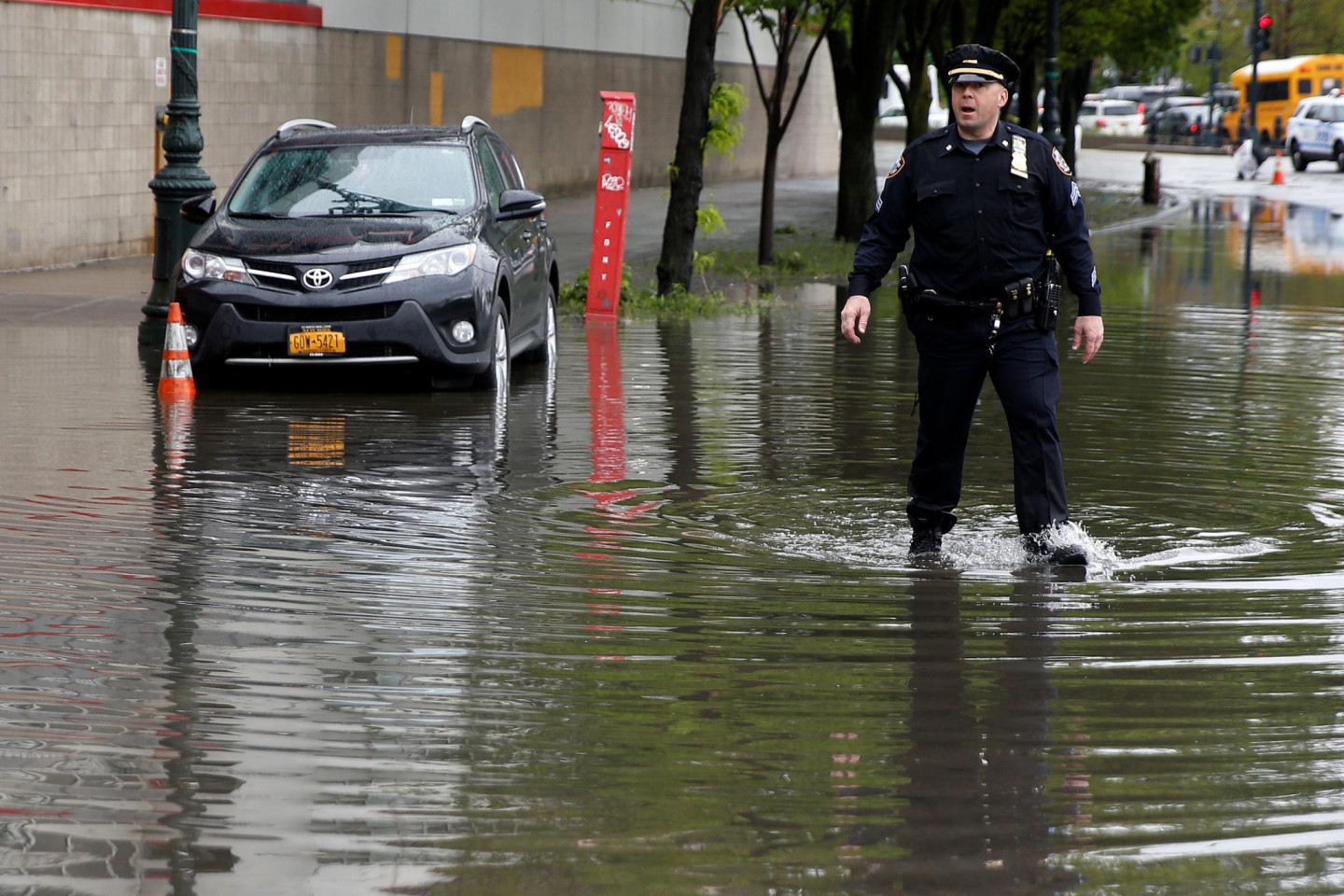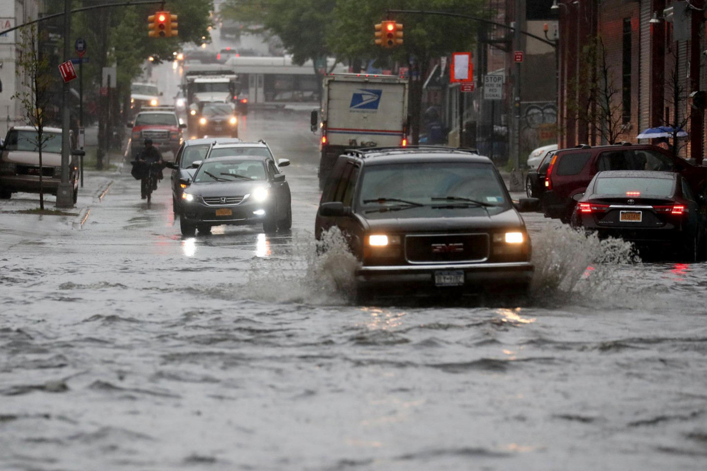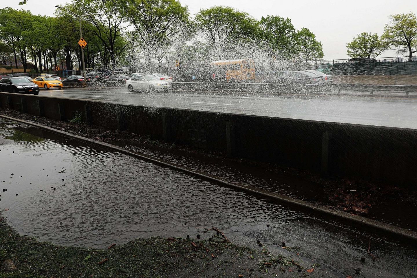 Stipras lietusgāzes Ņujorkā un tās apkārtnē ir izraisījušas plūdus un satiksmes traucējumus, tostarp avioreisu kavēšanos, piektdien paziņoja amatpersonas. Pensilvānijas stacijā, kas ir galvenā starppilsētu dzelzceļa stacija Ņujorkā, bija applūduši divi sliežu ceļi. Daži Vestsaidas automaģistrāles posmi pie Hudzonas upes bija slēgti abos virzienos. Taksometri un automobiļi, šķērsojot Centrālparku un dažas Stetenailendas daļas, brauca pa dziļu ūdeni. Ņūarkas starptautiskajā lidostā ienākošie reisi kavējās par apmēram trim stundām. Brīdinājums par pēkšņiem plūdiem bija spēkā Bruklinas, Kvīnsas un Stetenailendas rajonos, kā arī dažos Ņūdžersijas štata apgabalos.