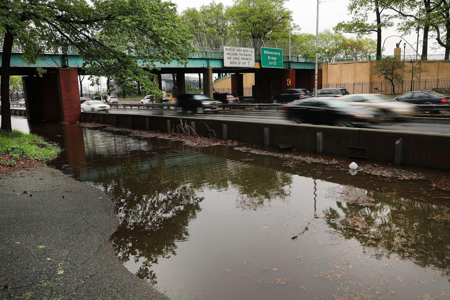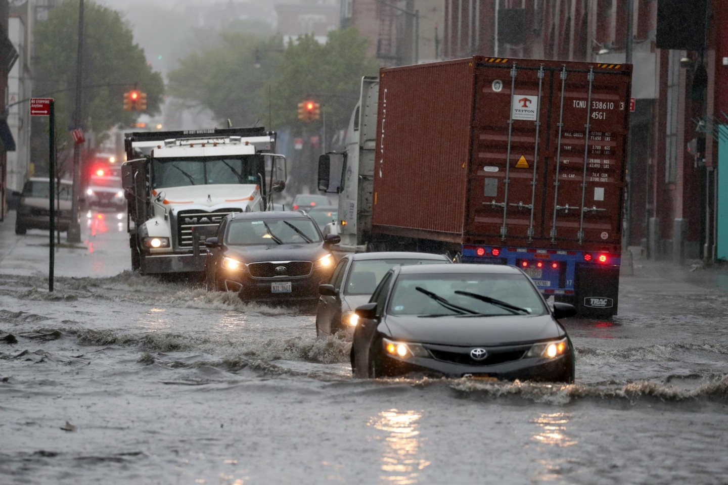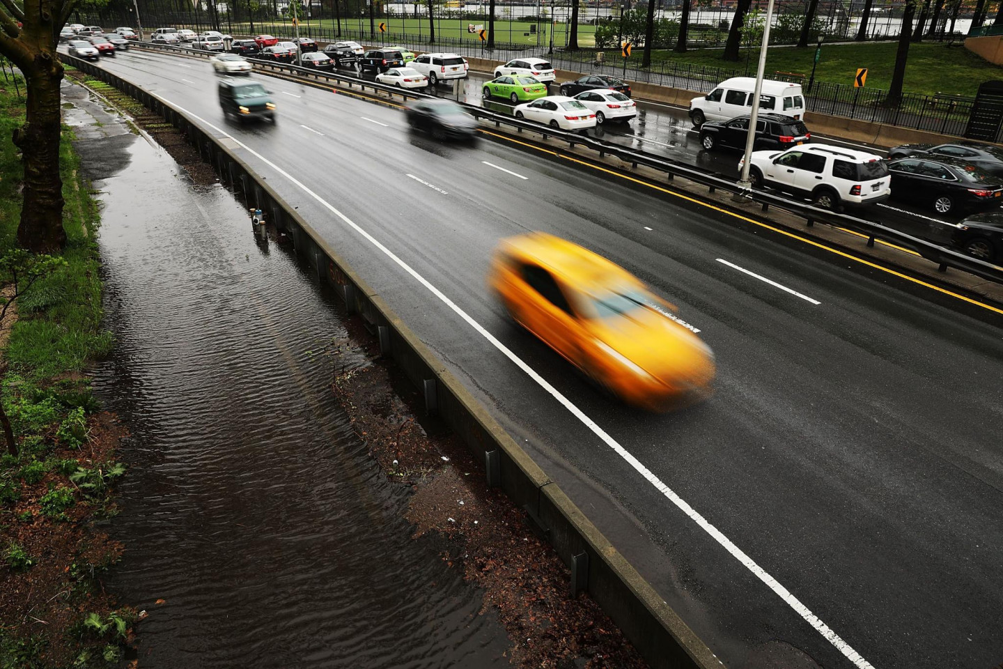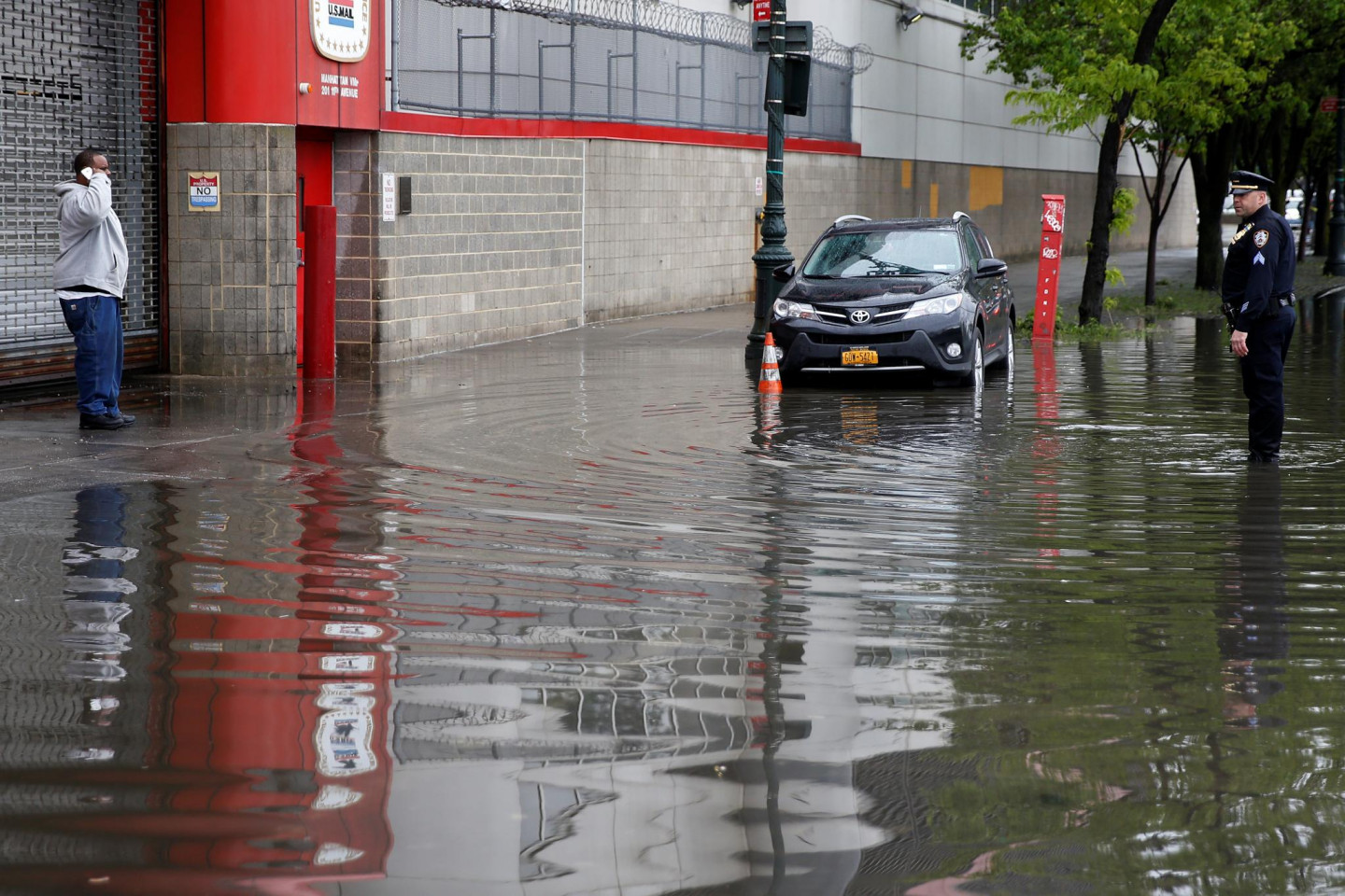 Stipras lietusgāzes Ņujorkā un tās apkārtnē ir izraisījušas plūdus un satiksmes traucējumus, tostarp avioreisu kavēšanos, piektdien paziņoja amatpersonas. Pensilvānijas stacijā, kas ir galvenā starppilsētu dzelzceļa stacija Ņujorkā, bija applūduši divi sliežu ceļi. Daži Vestsaidas automaģistrāles posmi pie Hudzonas upes bija slēgti abos virzienos. Taksometri un automobiļi, šķērsojot Centrālparku un dažas Stetenailendas daļas, brauca pa dziļu ūdeni. Ņūarkas starptautiskajā lidostā ienākošie reisi kavējās par apmēram trim stundām. Brīdinājums par pēkšņiem plūdiem bija spēkā Bruklinas, Kvīnsas un Stetenailendas rajonos, kā arī dažos Ņūdžersijas štata apgabalos.